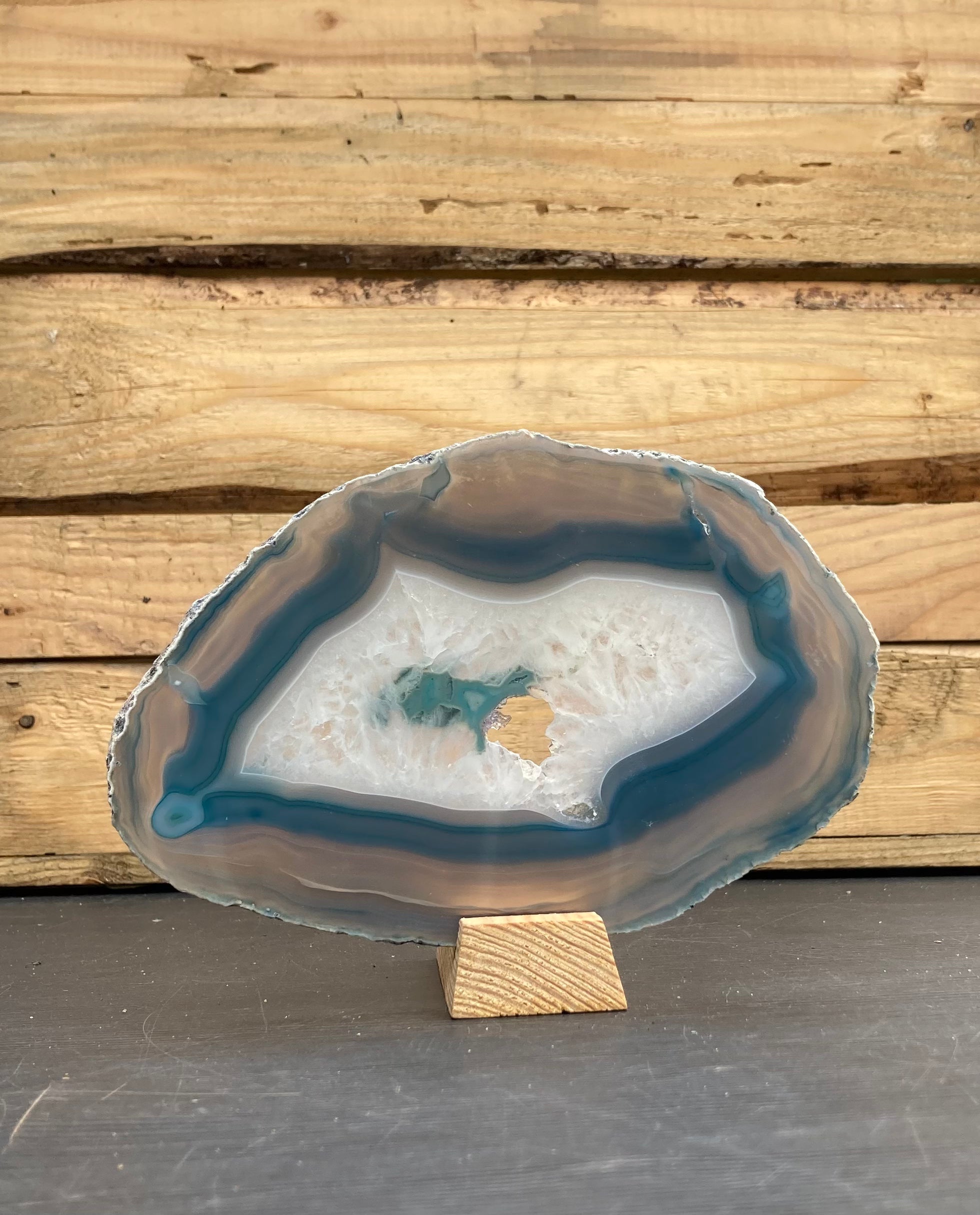 Agat er skabt af mikroskopiske kvartskrystaller der er lagt ned i bånd, derfra kommer de smukke mønstre agat ofte har.