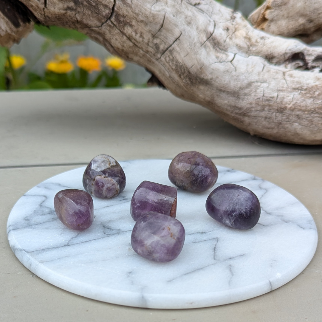 Det siges at Ametyst er en meget beroligende sten. Den virker rensende på krop og sind og beroliger et nervøst gemyt og dæmper et voldsomt temperament . Den ligger en dæmper på alle stress og affekttilstande. Den får os til at vende blikket indad og søge efter den egentlige årsag til vores uro. Netop fordi ametyst støtter os i at vende blikket indad, kan den også være en stor hjælp når man tumler med svære problemstillinger. Den vil i disse situationer give klarhed og hjælpe os med at træffe de rette beslutninger. Ametyst er skøn at meditere med fordi den bringer en dejlig ro. Ametysten er desuden en god sove sten netop fordi den skaber ro i sindet.