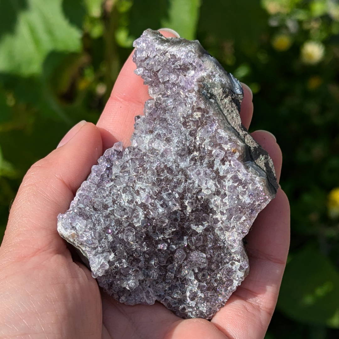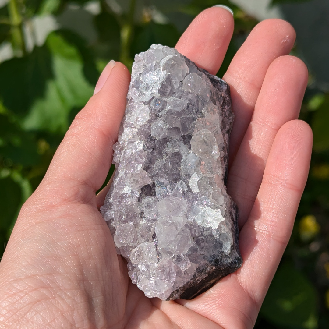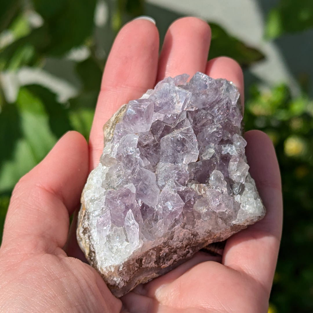 Ametyst er en meget beroligende sten. Den virker rensende på krop og sind og beroliger et nervøst gemyt og dæmper et voldsomt temperament . Den får os til at vende blikket indad og søge efter den egentlige årsag til vores uro. Derfor kan ametyst også være en stor hjælp når man tumler med svære problemstillinger.