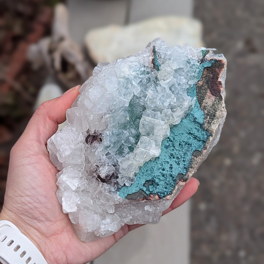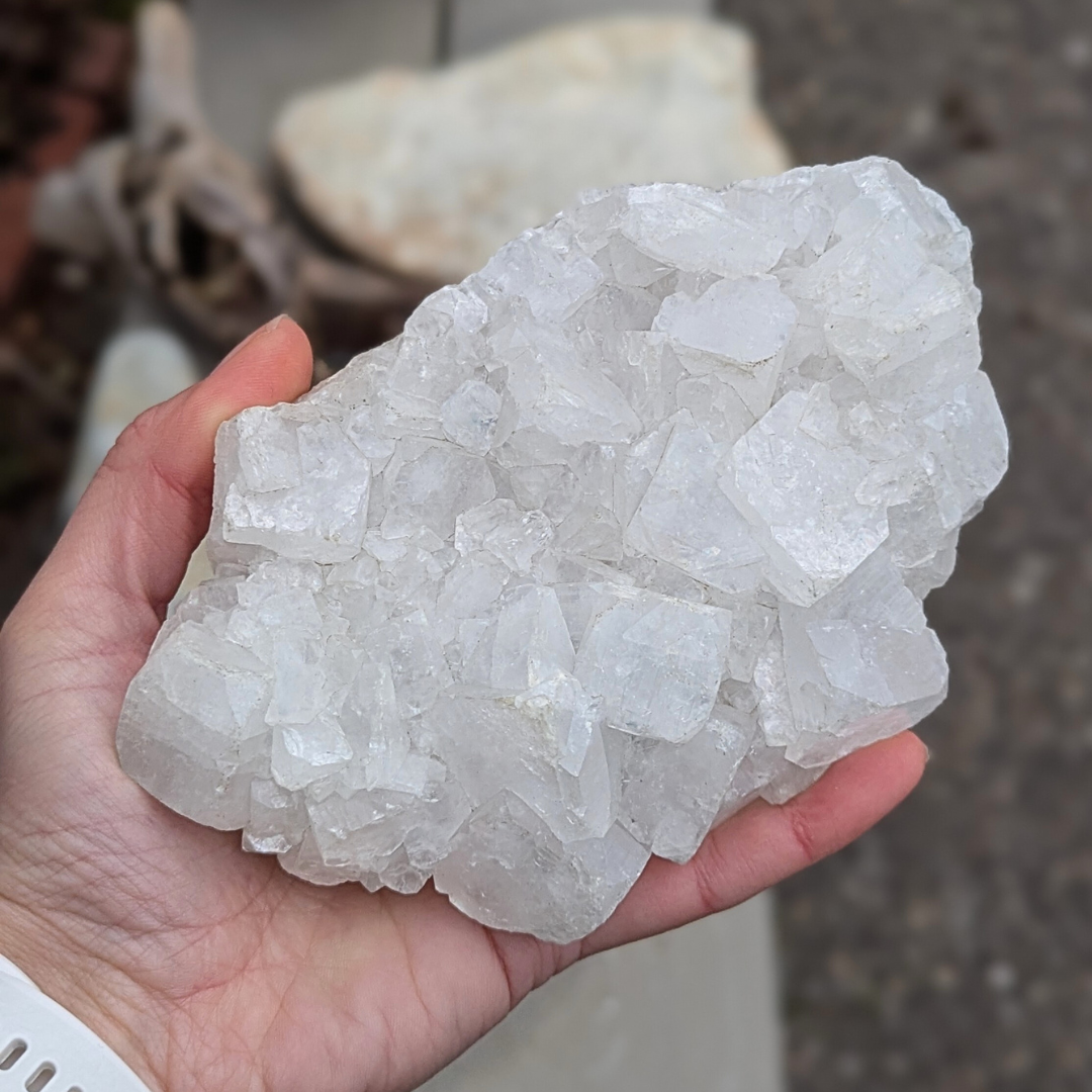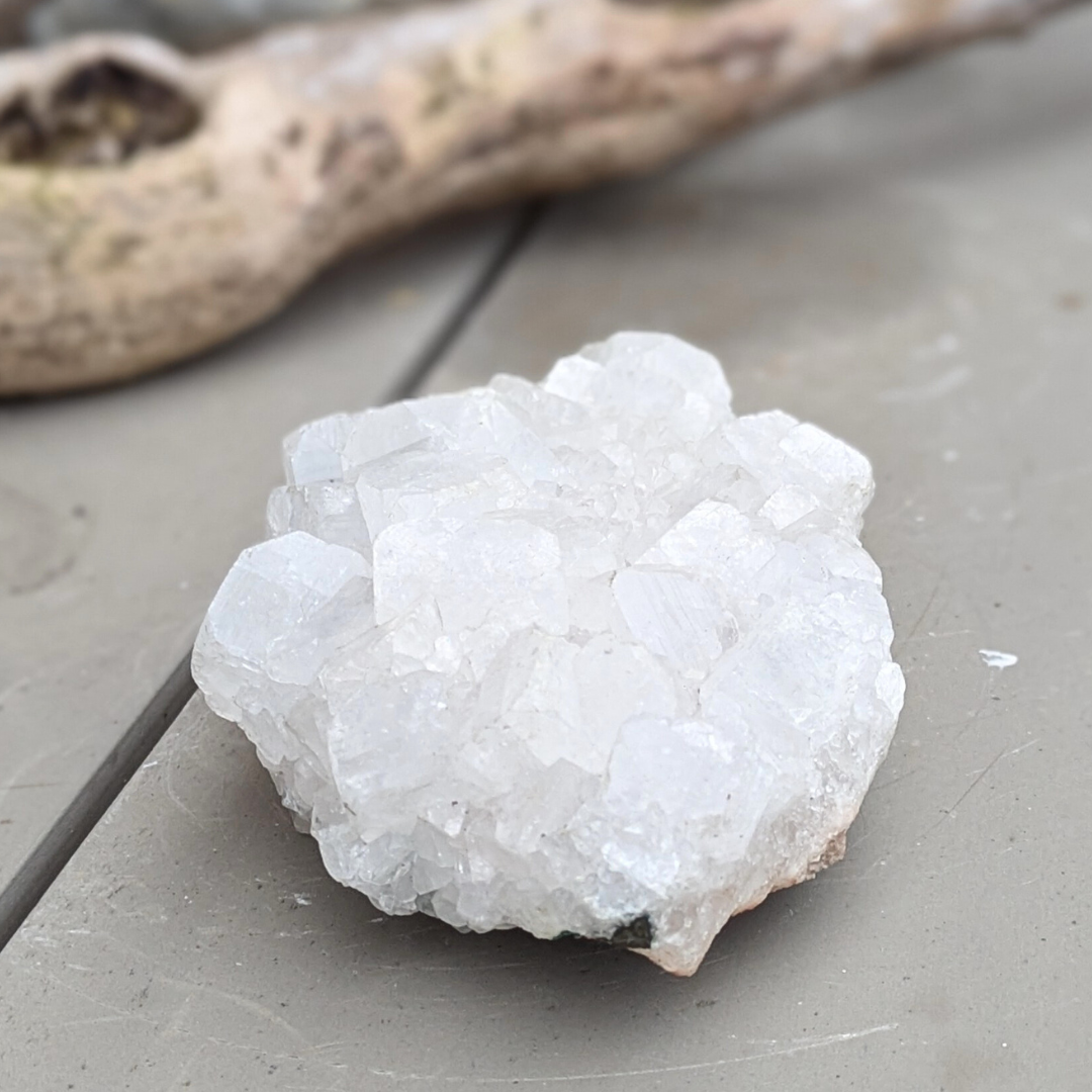 Det siges at: apophyllit har et højt indhold af vand og bevæger sig mellem fast og flydende materie i en meget høj vibration, det gør den eminent til arbejde med akasha arkiverne. Dens tilstedeværelse i et rum forstærker energierne. Apophyllit skaber en bevidst forbindelse mellem den fysiske og de spirituelle verdener. Under astral rejser holder den en stærk forbindelse med den fysiske krop og tillader informationer at blive transmitteret fra den åndelige verden ind i den fysiske. Den forstærker klarsyn og andre spirituelle evner. Den beroliger mentalt og derfor god hvis du mærker stress. Den frigør negative tanker og frygtbaseret adfærd, og giver derved plads til universel kærlighed og forbundethed. Selv om den har høj energi og trækker dig opad, så hjælper den dig til at føle dig godt tilpas i din krop.