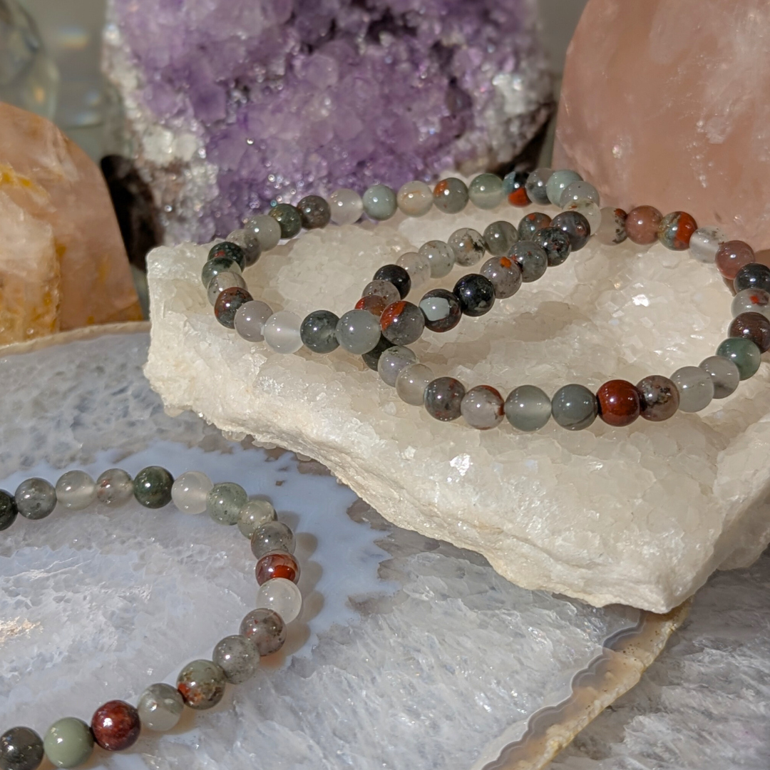 Heliotrop er en god healer. Det er god til at sætte dig i kontakt med din intuition og forøger din kreative side. Den er god til jordforbindelse og beskyttelse. Den støtter os i at være modig og udholdende i det kaos der ofte kan opstå når vi går igennem transformationer. Den beroliger sindet og styrker og støtter os i situationer hvor vi skal tage beslutninger. Den assistere når du skal tilpasse dig uvante situationer.