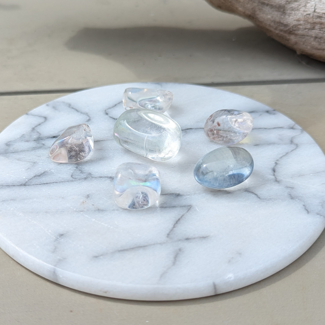 En fredfyldt og rolig sten, som er en fantastisk støtte i kommunikation med engle, dine spirituelle guider og andre lærere. De rene og høje vibrationer vil bringe bevidsthed om hvordan og hvorfor du holder på uønskede negativ ladet energi, så du kan rumme og forløse disse.