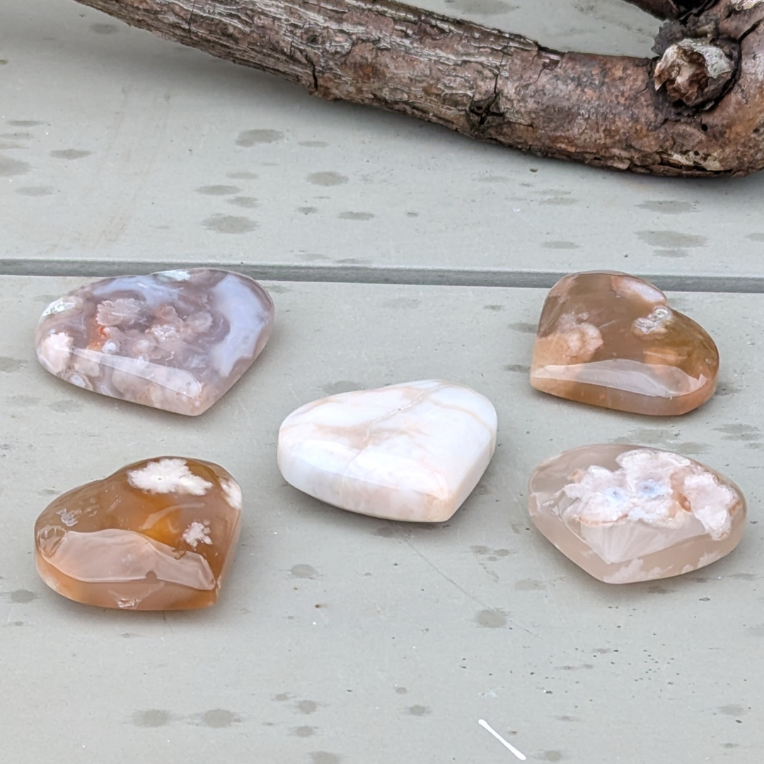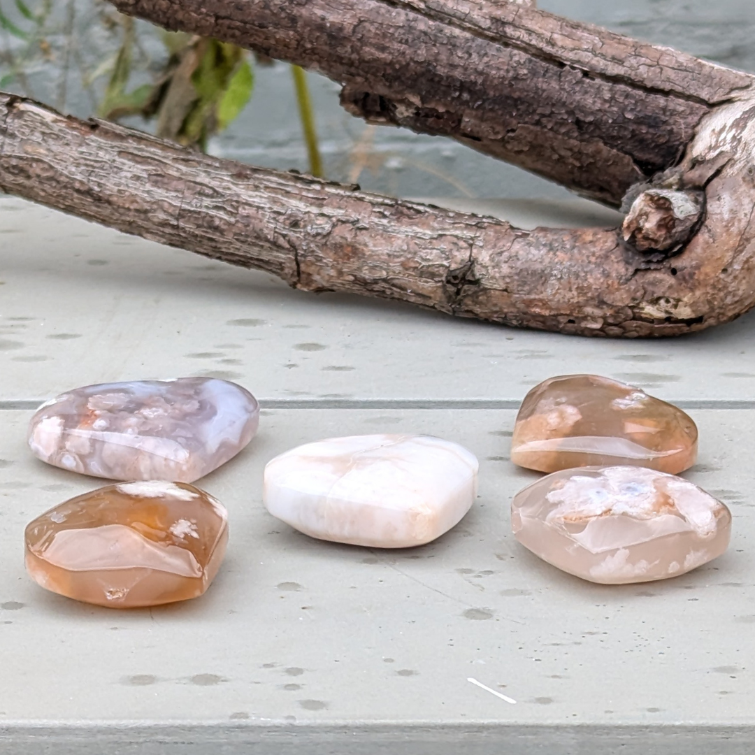 Se lige de smukke mønstre denne skønne agat har. Den vil minde dig om forår og sprøde knopper der springer ud og lader os vide at nu er sommeren på vej. Blomster agat er en forholdsvis ny fundet sten fra Madagaskar. Den vil bringe dig liv og glæde. Den vil minde dig om at spring ud og blomstre. Det er en god sten at bruge i arbejdet med dit selvværd. Symbolikken i “fra frø til blomst” er virkelig stærk for denne sten, da den vil hjælpe dig med at nå dit fulde potentiale. Når du gror vil andre/ andet også gro. Blomster agat hjælper dig med at blomstre og udnytte dit fulde potentiale. Brug den til at visualisere og manifestere dine drømme. Den har en rolig, feminin energi, men den holder også på store mængder af styrke og mod. Passion og viljestyrke er nøgleord. Den er god til at afbalancere din energi og hjælper dig til at finde din positiv tilgang til livet frem.