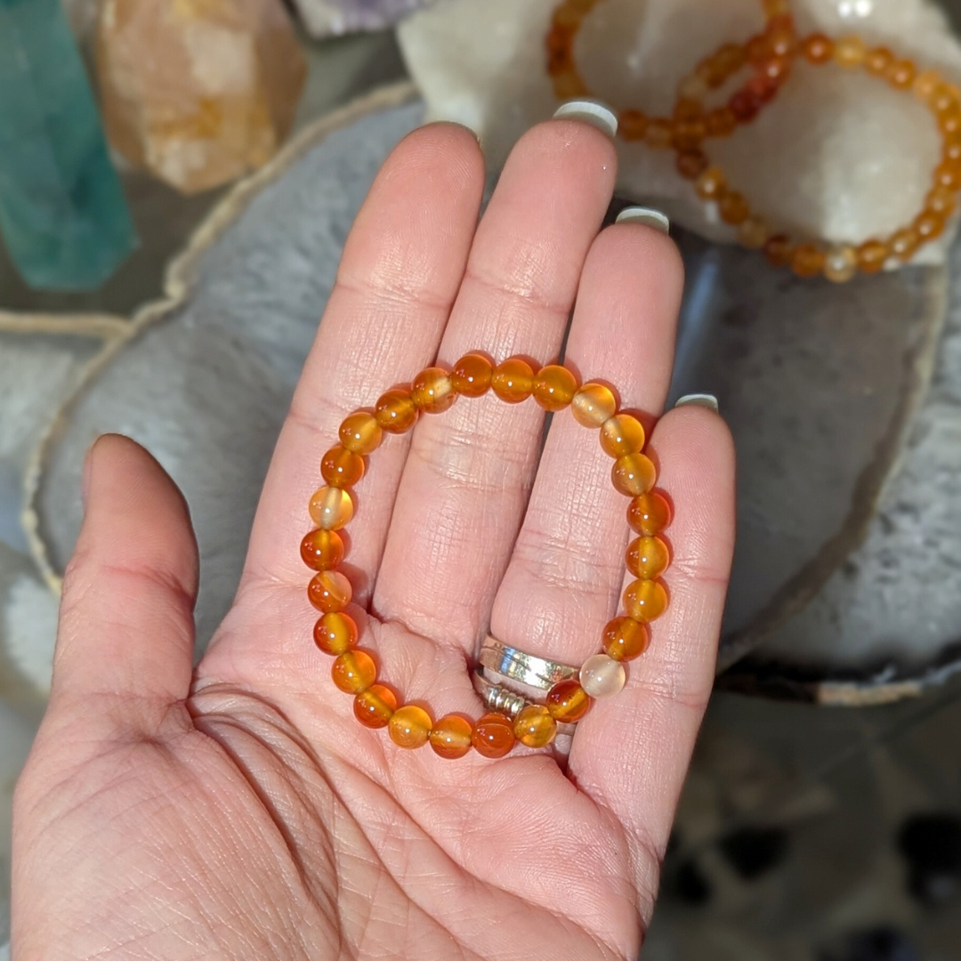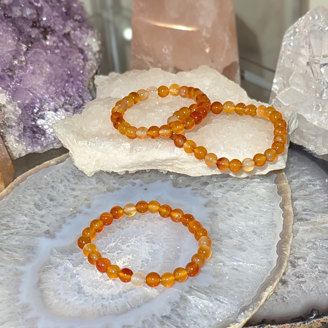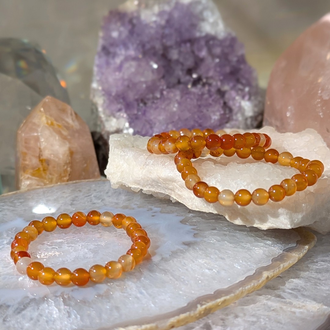 Karneol giver dig mod og fremmer positive valg i livet. Den motivere til succes i forretninger og andre steder. Karneol lader dig vide at du kan stole på dig selv og dine ideer. Den beroliger vrede og lader følelsesmæssigt negativitet forlade dig og erstatter den med kærlighed til livet. Karneol kan bruges til at rense andre sten. Den er en meget kraftfuld sten.