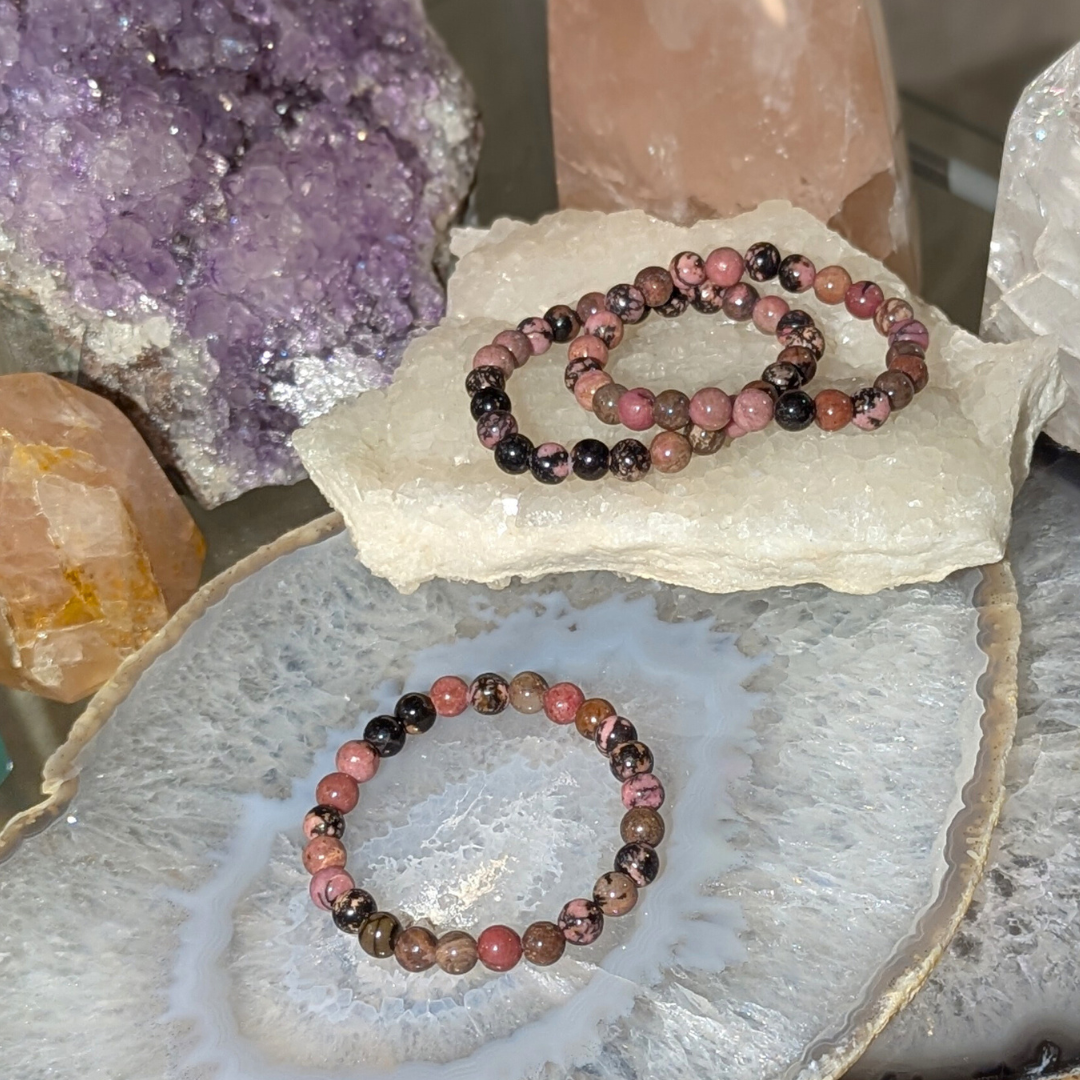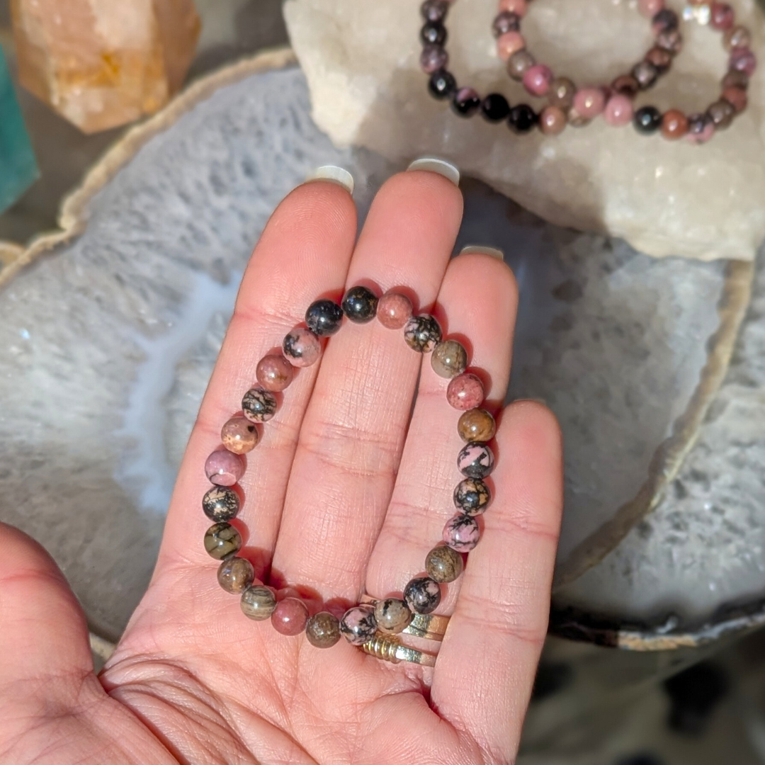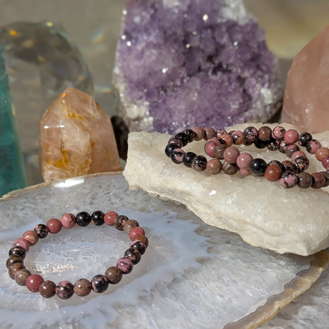 Rhodonit er en blid sten der er knyttet tæt med hjerte chakraet. Den vil lære dig at acceptere dine mørke sider som lige så givtige for din personlighed og udvikling som de lyse. Når vi har erkendt de mørke sider kan vi bedre arbejde med dem og erstatte de vrede og bange følelser med kærlighed. Rhodonit minder os om at lyset og kærligheden altid vil vinde over angsten, hadet, og mørket. Kærligheden overvinder alt. Den blide energi fra rhodonit dæmper ligeledes uro og nervøsitet. Den fortæller dig at du ikke behøver at være bange for at lukke kærligheden ind i dit liv. Du får mod på at gøre det du indtil nu har prøvet at undgå og opleve hvilken stor kærligheds erklæring det er til dig selv at gøre det.