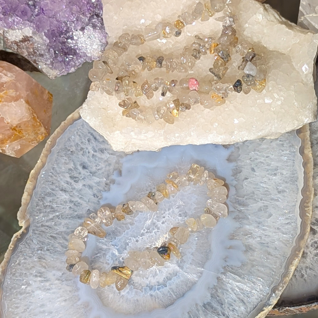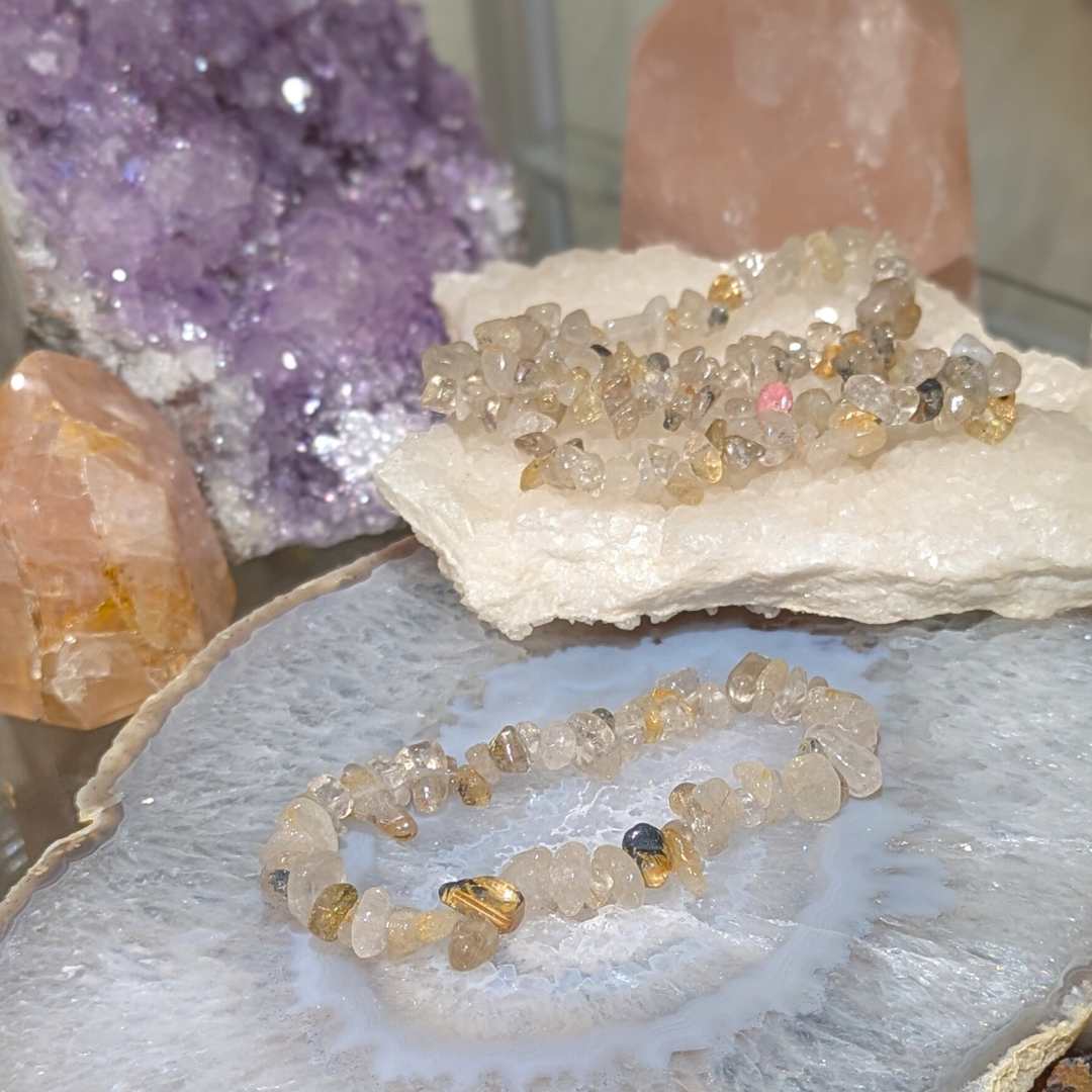 Rutilkvarts afbalancerer og beskytter mod negative påvirkninger. Den bringer fornyet energi til sind og krop. Styrker kærlighed i relationer og fremmer din personlige udvikling. Giver klarhed og ny inspiration i dine tanker.