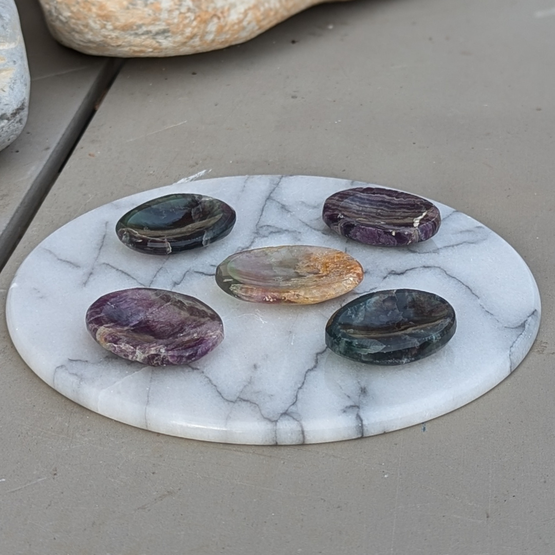 Fluorit har en groundende energi og er god til at integrere spirituelle energier. Den har en stabiliserende effekt på følelser og er en god hjælp for dig der har brug for at forstå sindets og følelsernes indflydelse på kroppen. Fluorit er en organiserings sten, både fysisk og følelsesmæssigt. Den hjælper med at overvinde kaos og reorganisere. Ligeledes er den god ved ny læring og øger din koncentration.