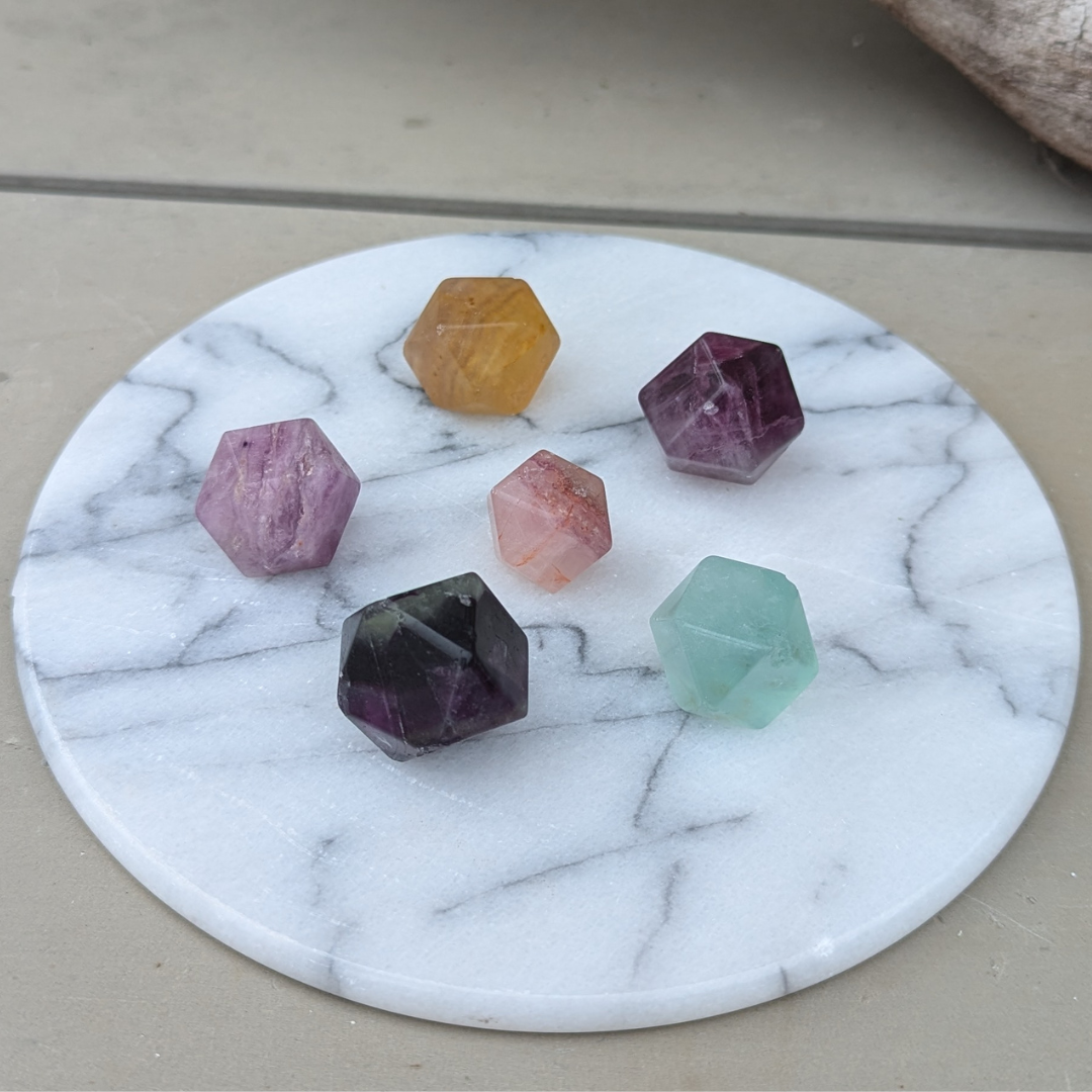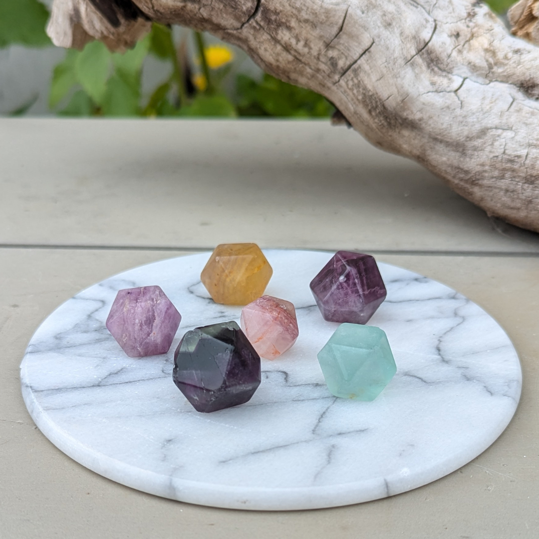 Om fluorit oktaeder: udover de egenskaber almindelig fluorit har, så giver oktaeder klarhed, fokus og hurtig opfattelsesevne, der øger koncentration og indlæringsevne.