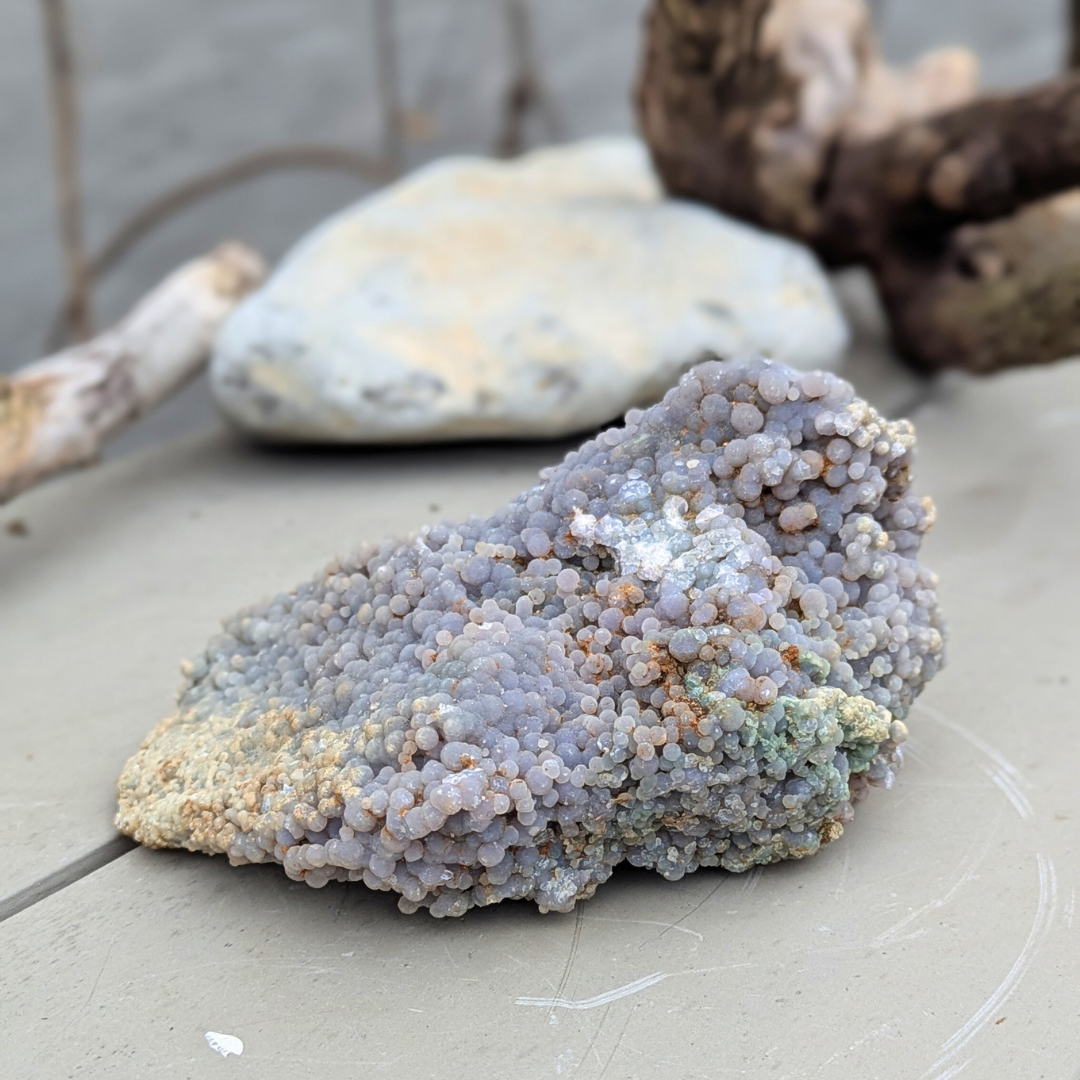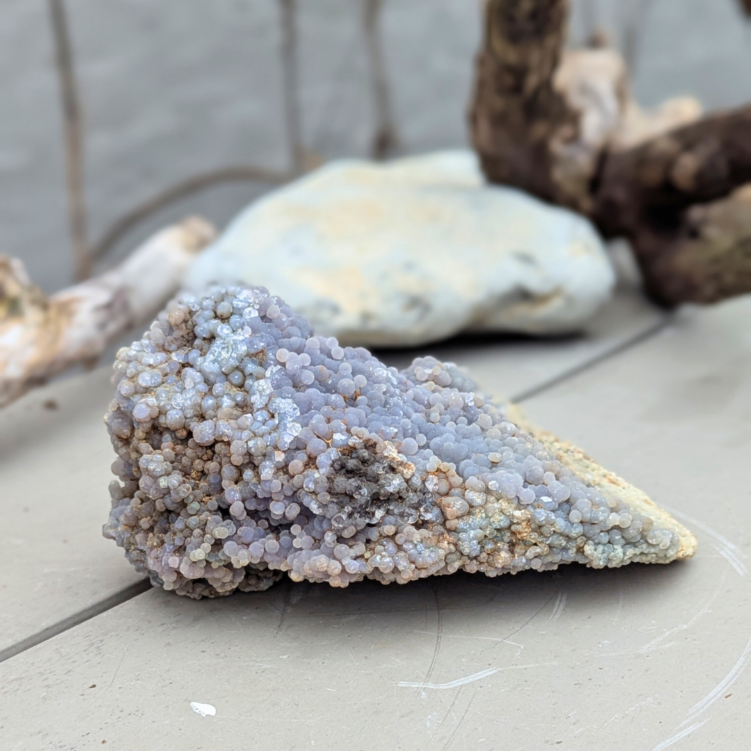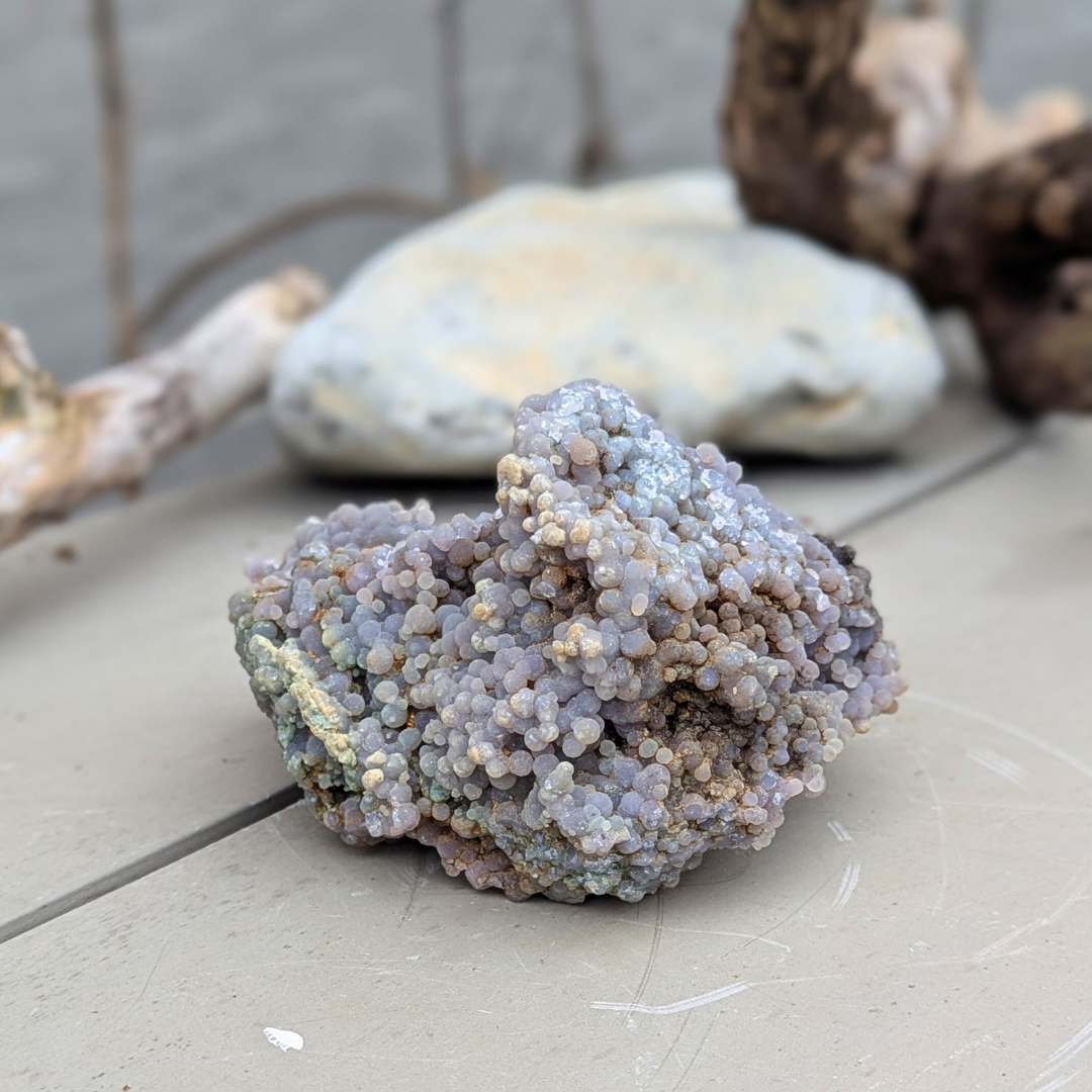 Grape Agat aktiverer og forbinder Krone og Tredje øje Chakra. Det er en kraftfuld intuitiv sten, der hjælper med at aktivere spirituelle evner og hjælper med at forstå dine drømme. Grape Agate har en rolig og blid energi. Den fremmer indre stabilitet, ro og objektivitet . Dens varme og beskyttende egenskaber giver en følelse sikkerhed og selvtillid. Dens energi kan hjælpe med at bringe dig ind dybe og intense niveauer under meditation.