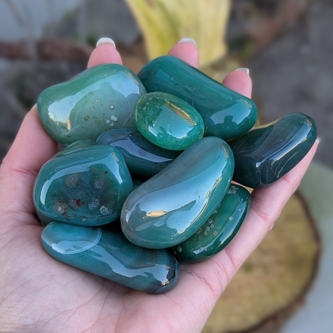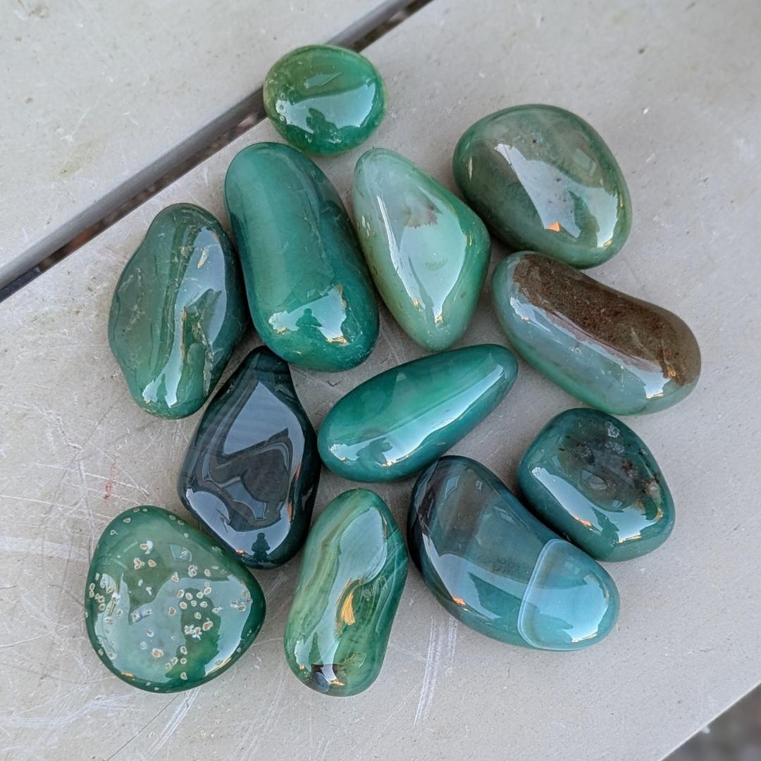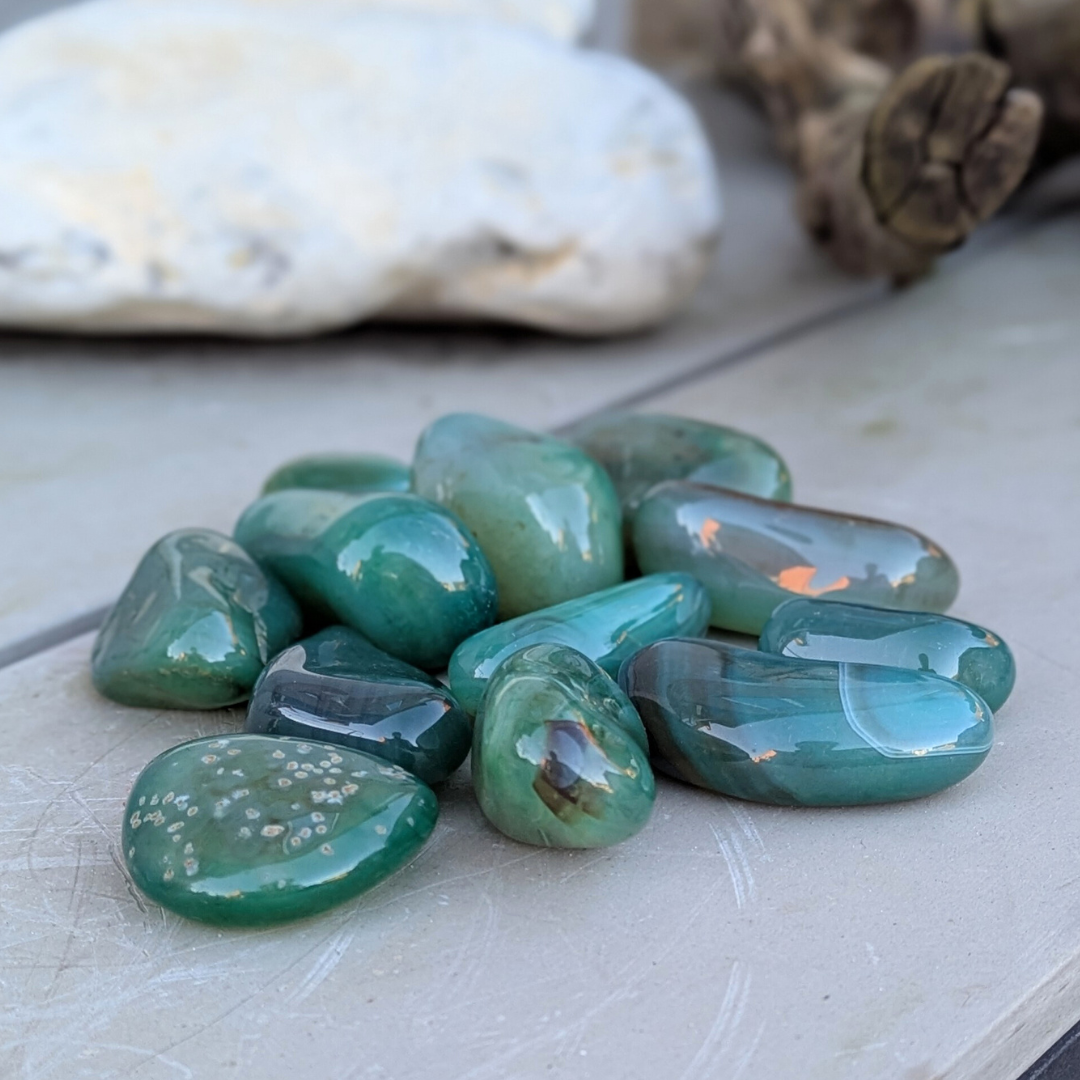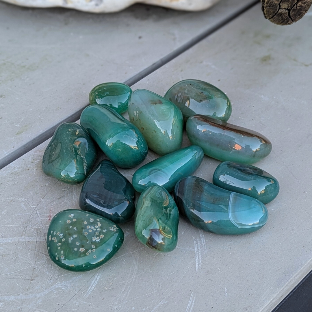 Det siges at agat er jordforbindende og er gode til at bringe følelsesmæssig,fysisk og intellektuel balance. Agat er en beroligende sten. Den har stor styrke,men arbejder langsomt. Den hjælper dig til selvaccept og giver dig ro.
