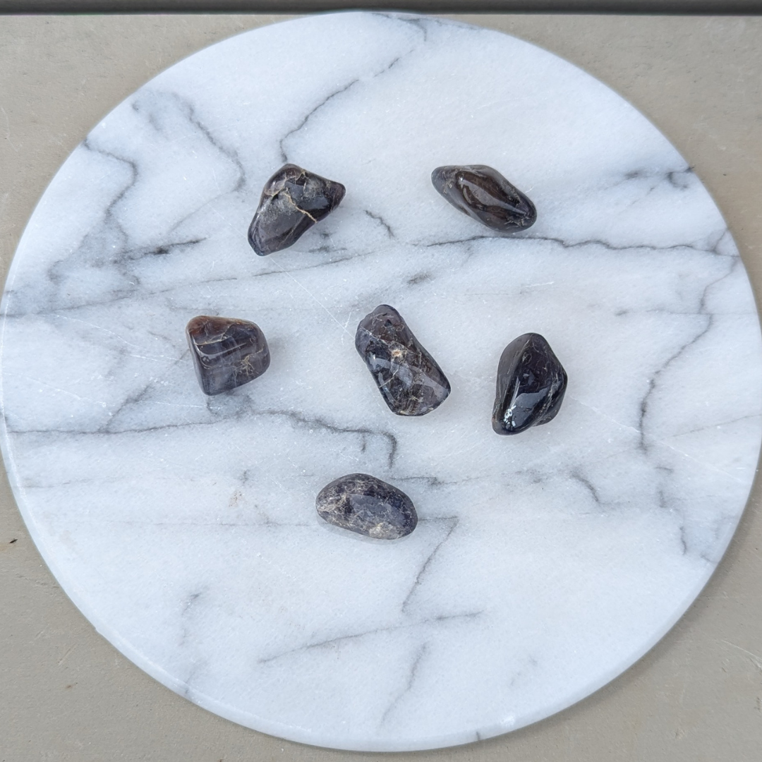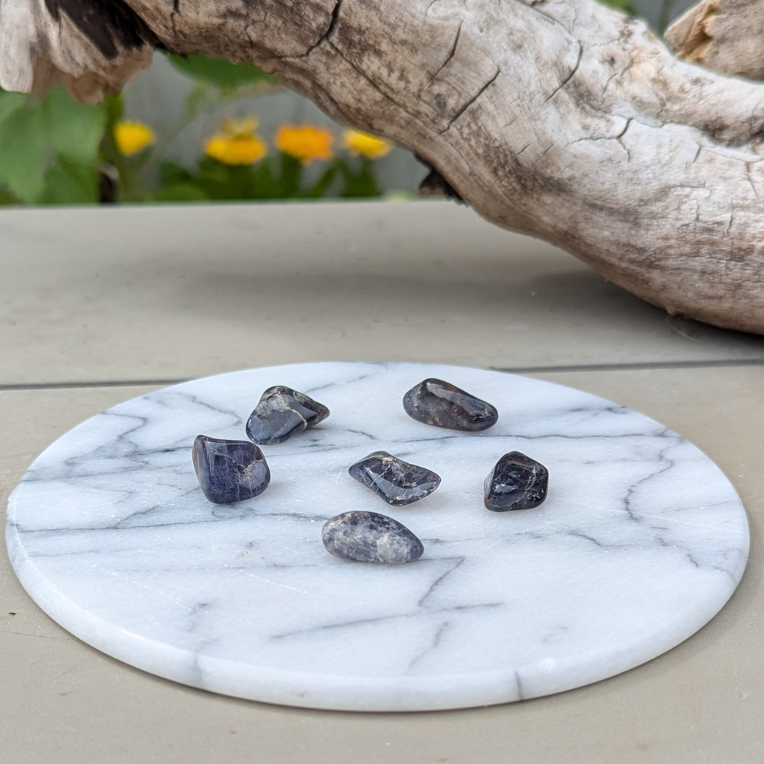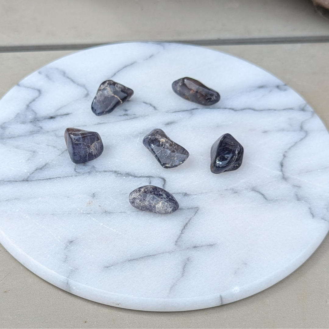 Iolit også kaldet vand-safir har en fin grå-lilla-blå farve. Iolit er en visionssten,der gør det lettere at lytte til dig selv. Den støtter ved visualisering og støtter dig i at lytte til din intuition. Den aktivere det tredje øje. Den er god ved shamanceremonier og hjælper til rejser ud af kroppen. Iolit hjælper dig med at udtrykke dit sande jeg og tage ansvar for dig selv.