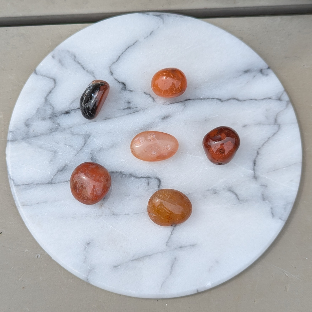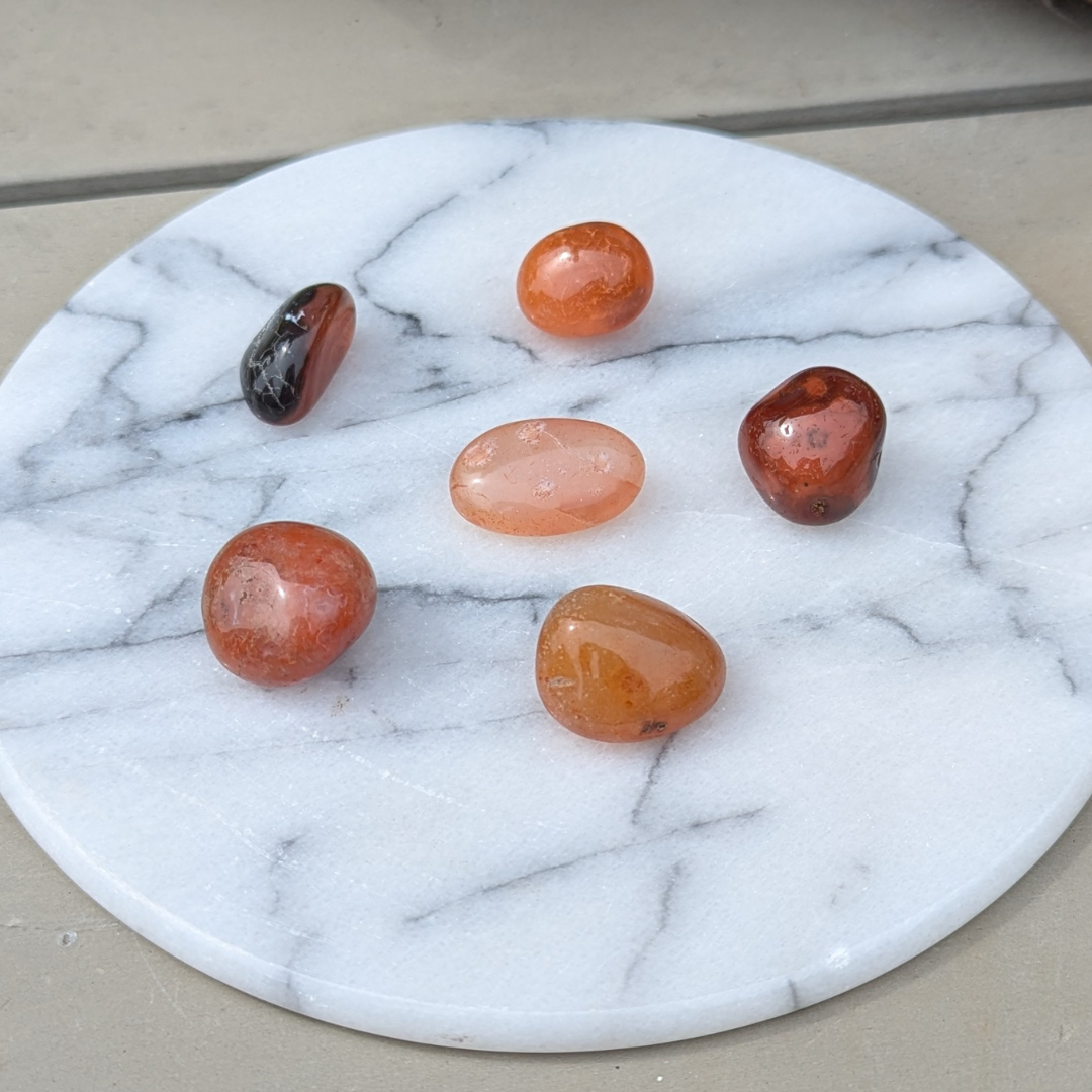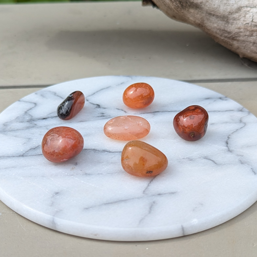 Det siges at karneol forbinder dig med jorden og sørger for at du forbliver forbundet i den virkelighed du er i nu. Det er en stabiliserende sten med høj energi der gør at den er god til at genoprette vitalitet og motivation og til at stimulere kreativiteten.