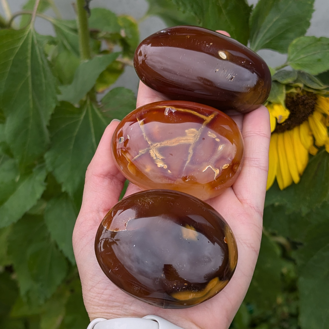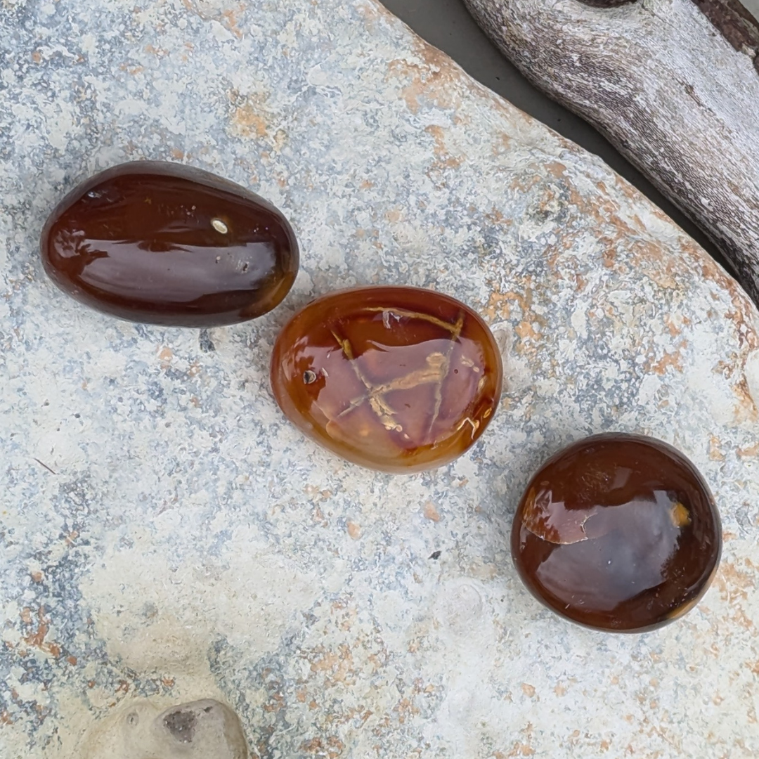 Karneol giver dig mod og fremmer positive valg i livet. Den motivere til succes i forretninger og andre steder. Karneol lader dig vide at du kan stole på dig selv og dine ideer. Den beroliger vrede og lader følelsesmæssigt negativitet forlade dig og erstatter den med kærlighed til livet. Karneol kan bruges til at rense andre sten. Den er en meget kraftfuld sten.