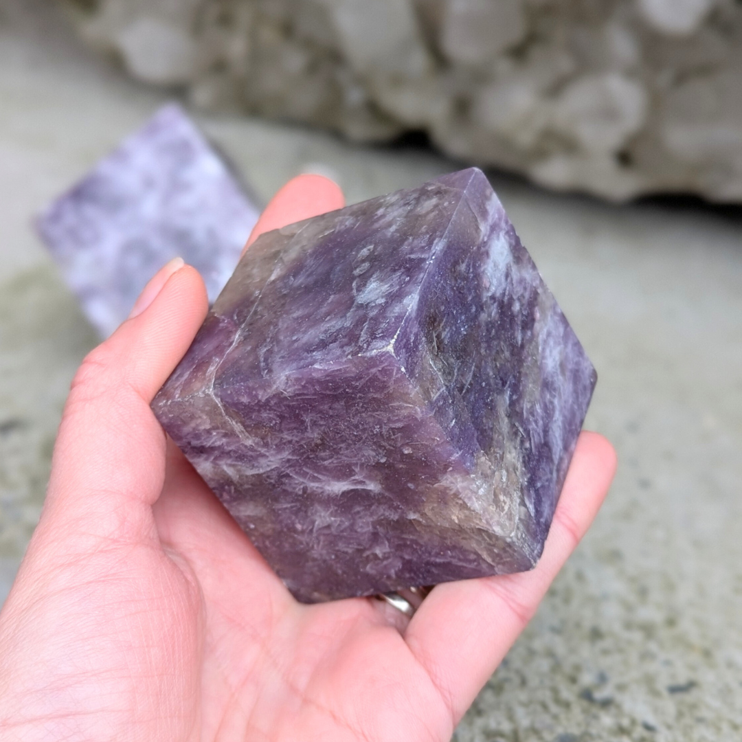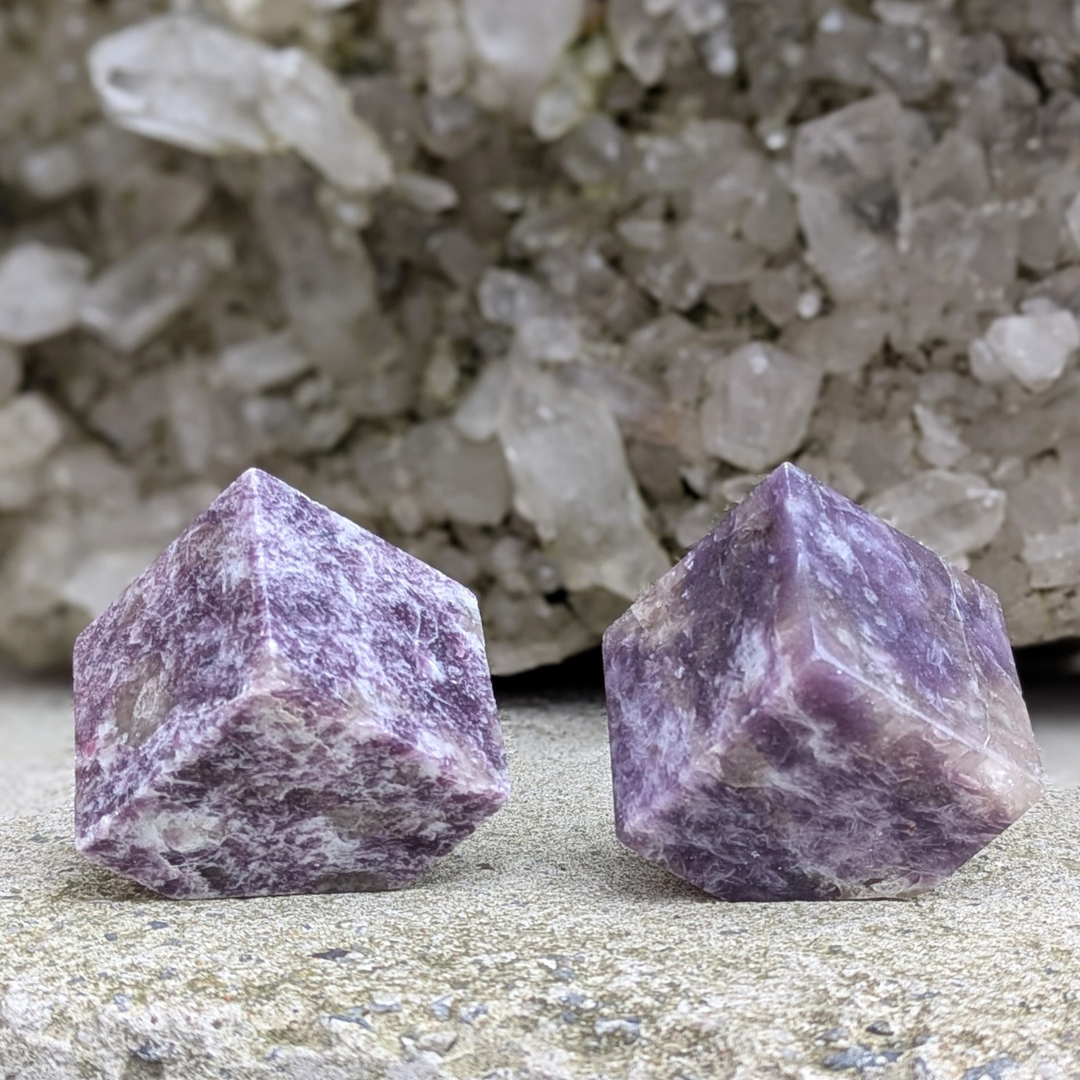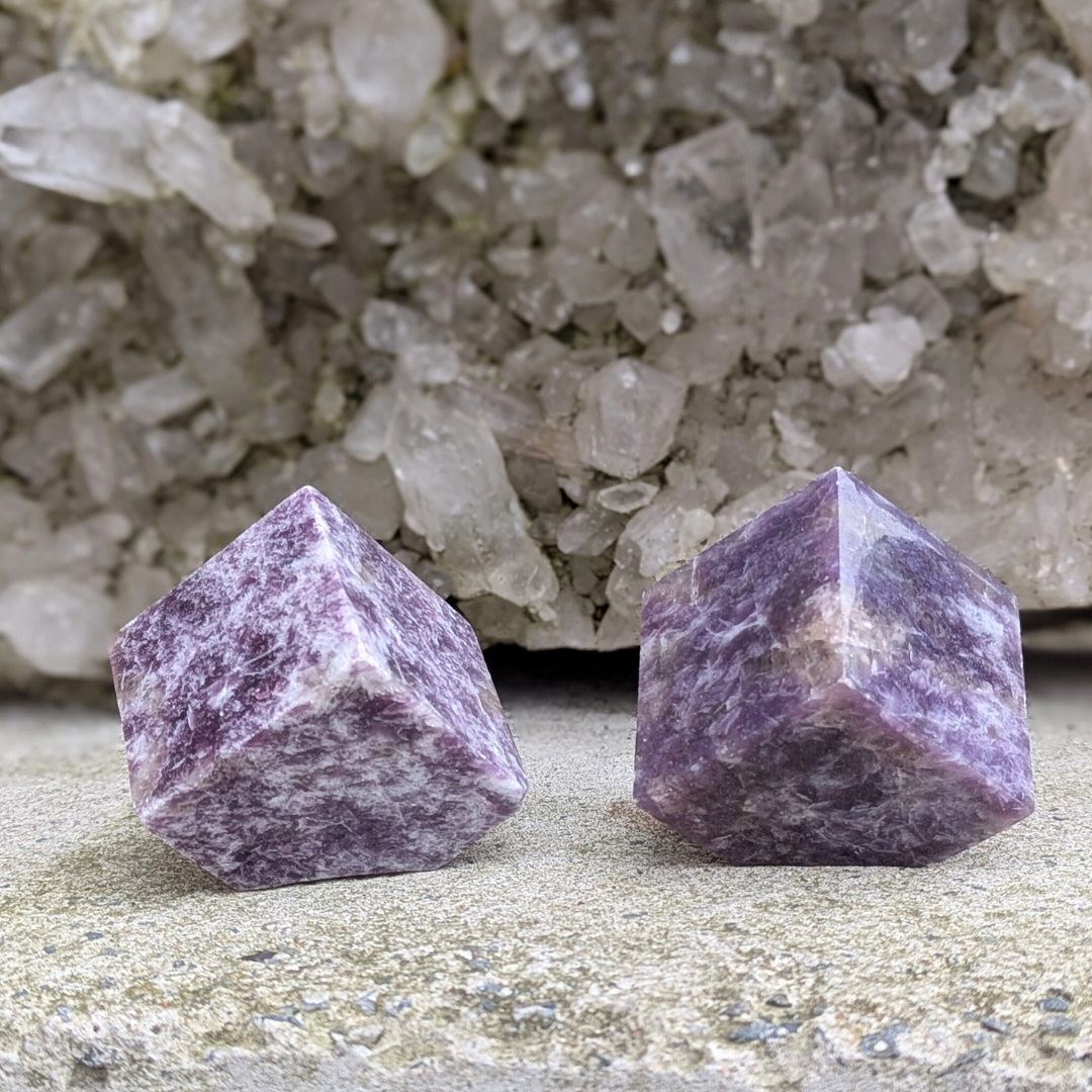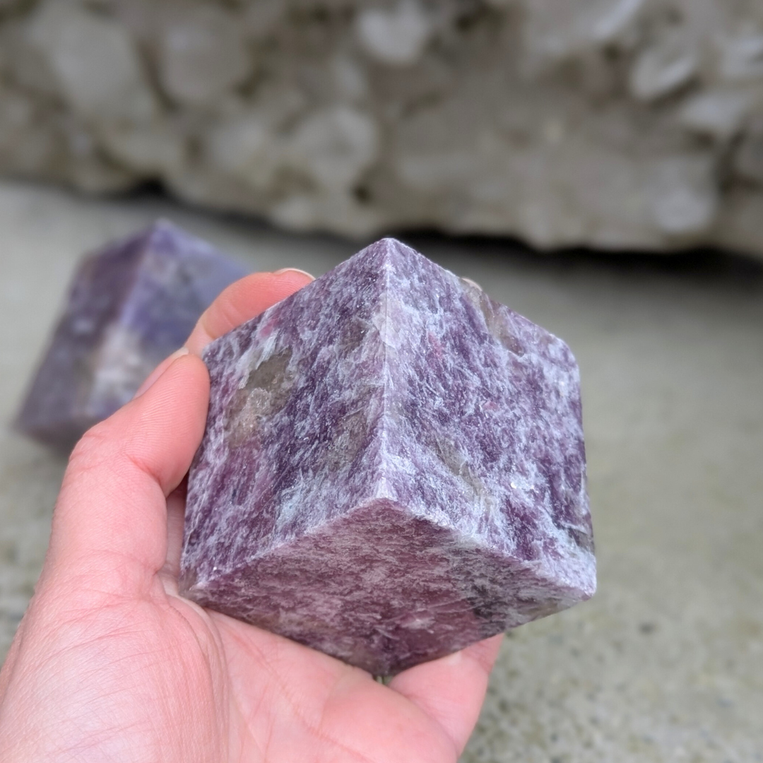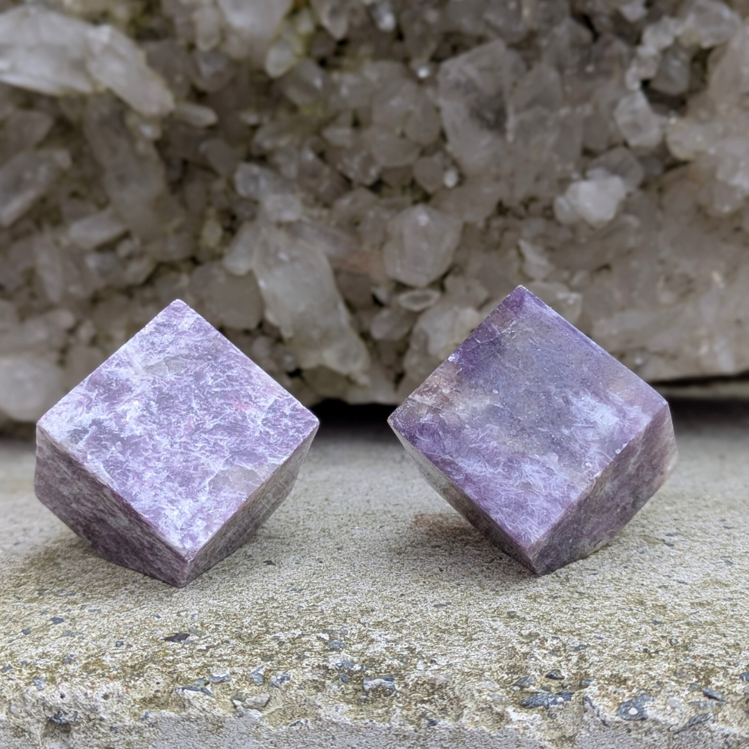 Kuben symbolisere jord og stabilitet. Og sammen med den beroligende lepidolit, forestiller jeg mig af disse er perfekte på natbordet.