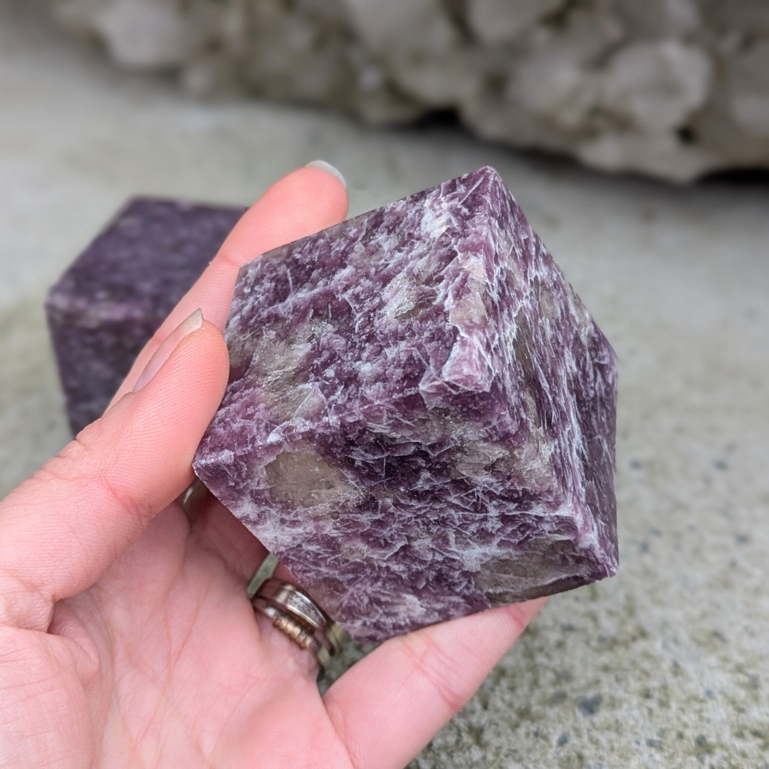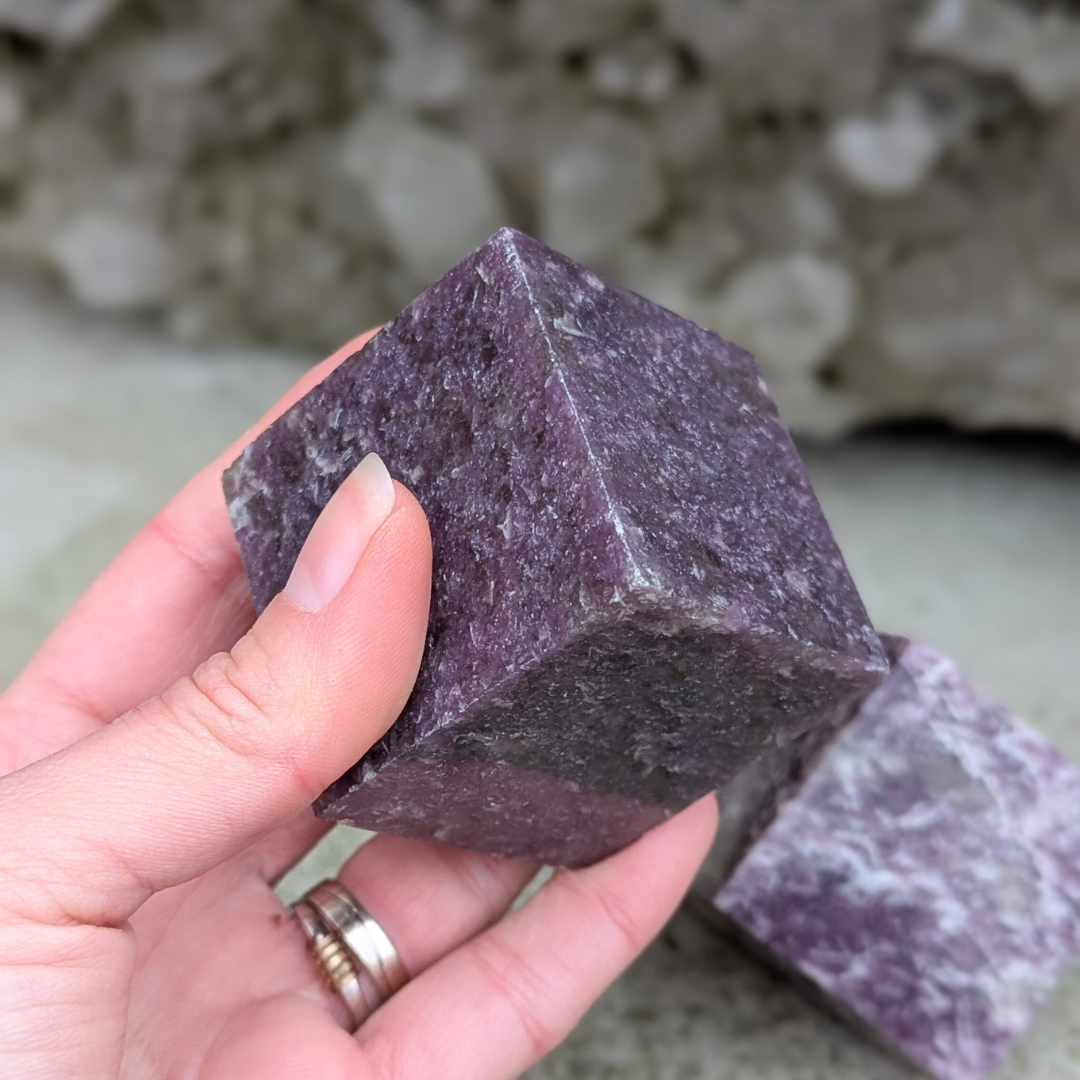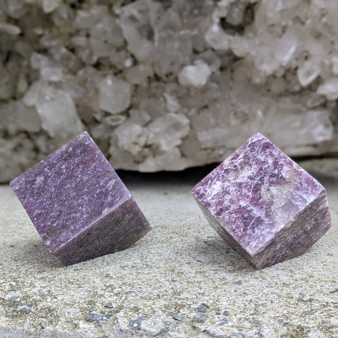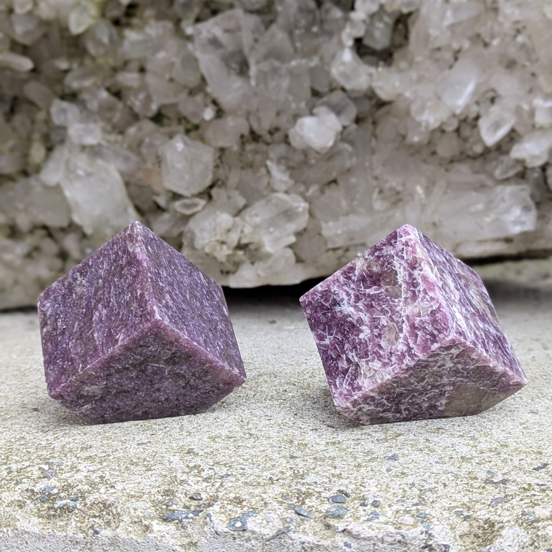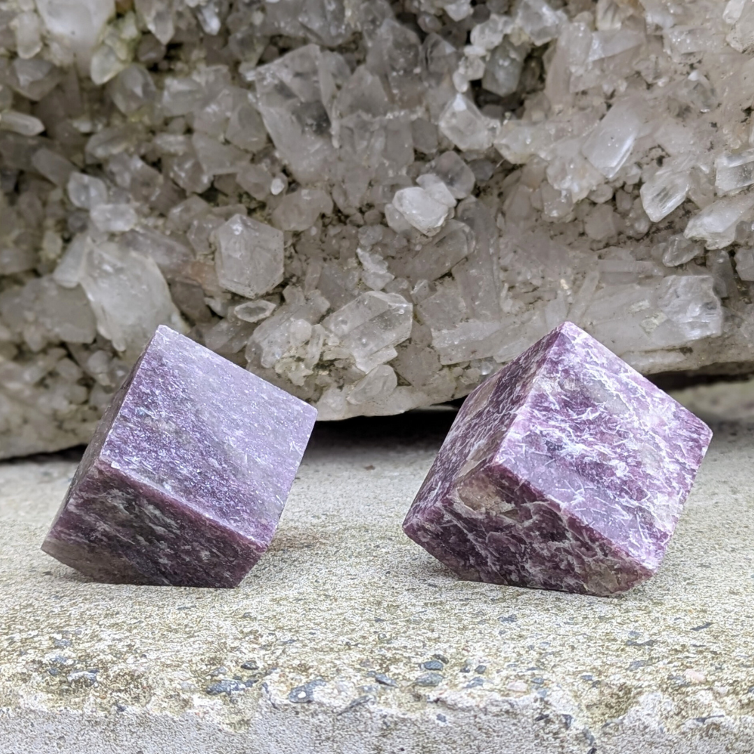 Kuben symbolisere jord og stabilitet. Og sammen med den beroligende lepidolit, forestiller jeg mig af disse er perfekte på natbordet.