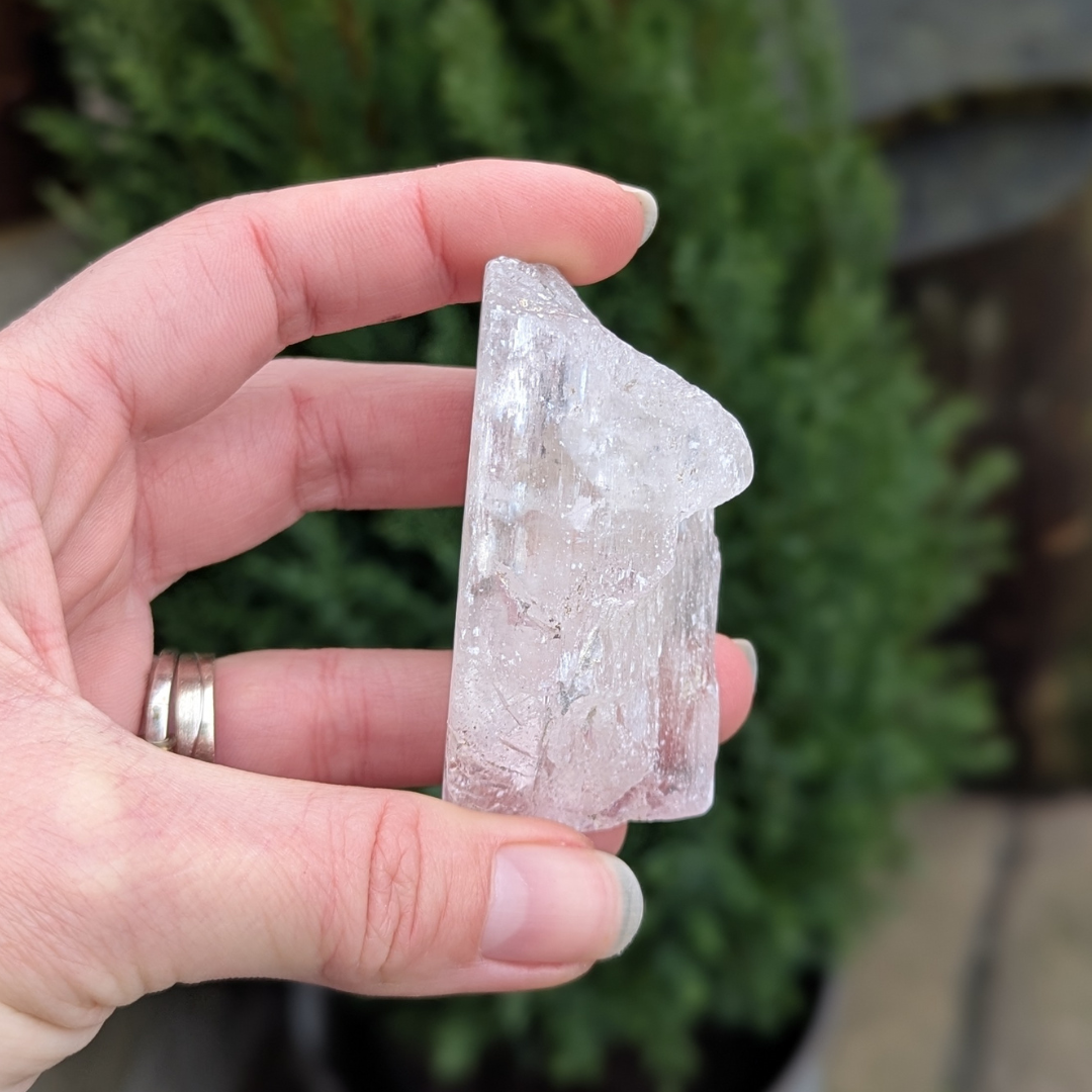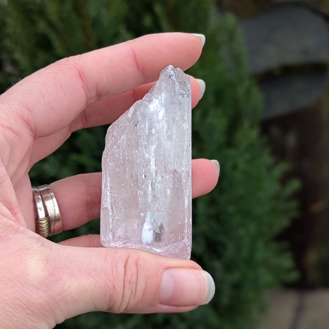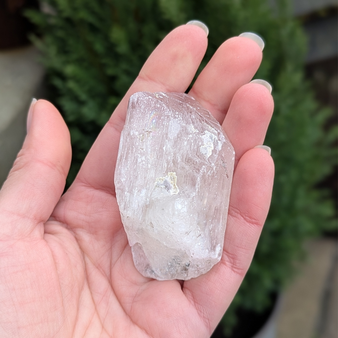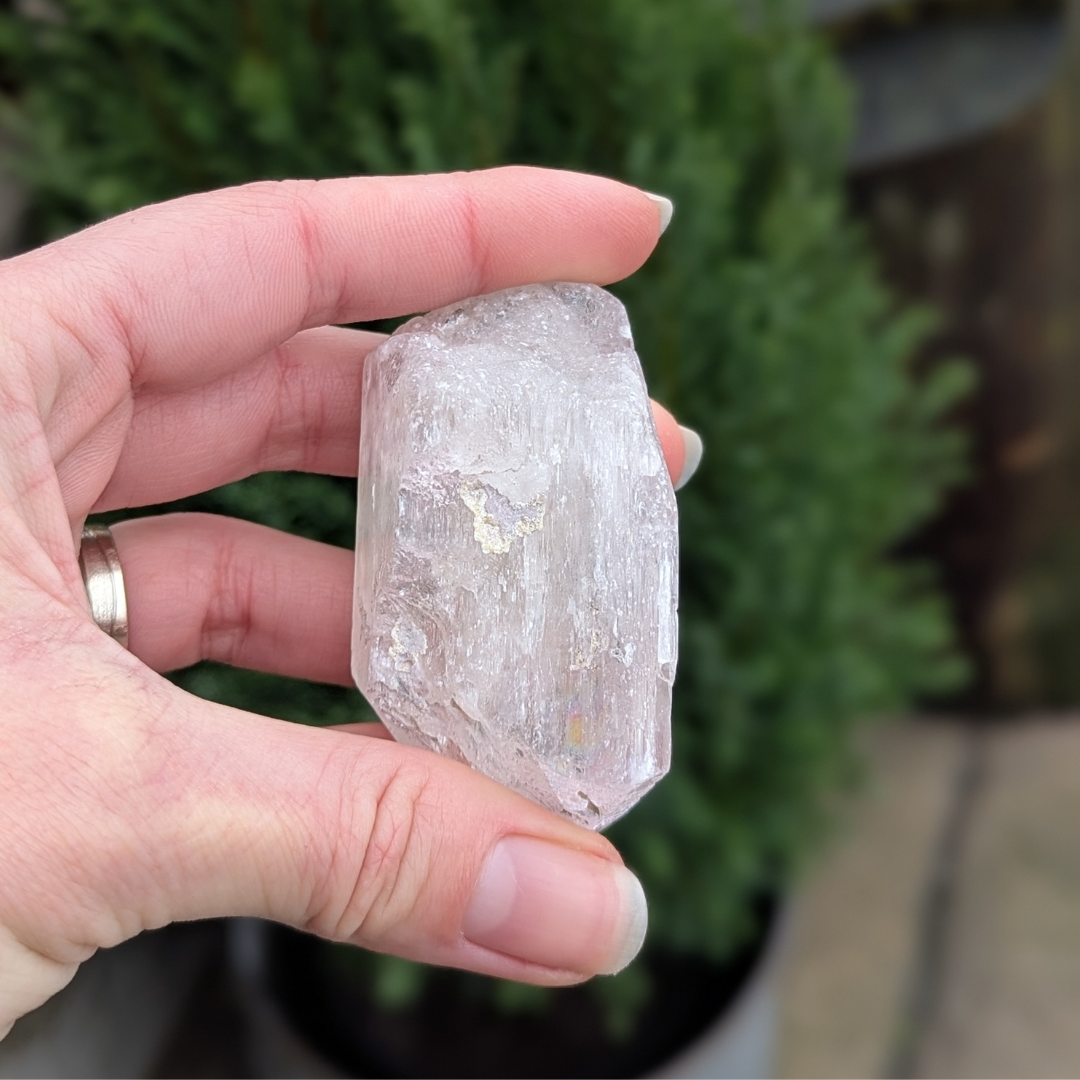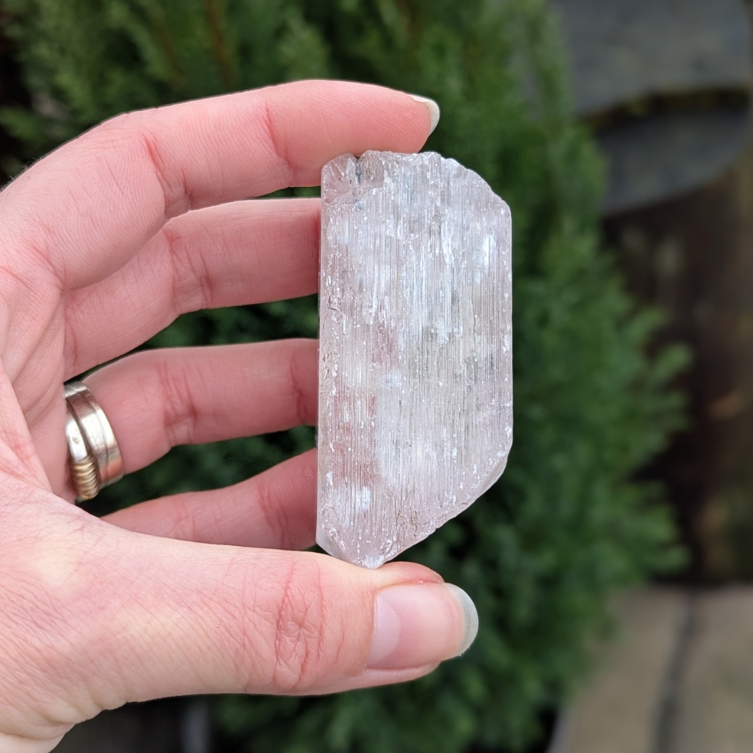 Kunzit hjælper i generhvervelse af sjælen, den letter rejsen tilbage til det sted dele af din sjæl blev tabt, og kan benyttes som modtager for sjælen til den er genoptaget i kroppen. De høje vibrationer vækker hjerte centret, og producerer kærlige tanker og kommunikation. Den bringer fred og universel forbundethed. Med sine høje vibrationer vil den beskytte din energi, og giver dig evnen til at blive i dig selv.