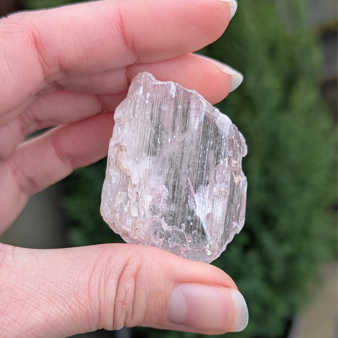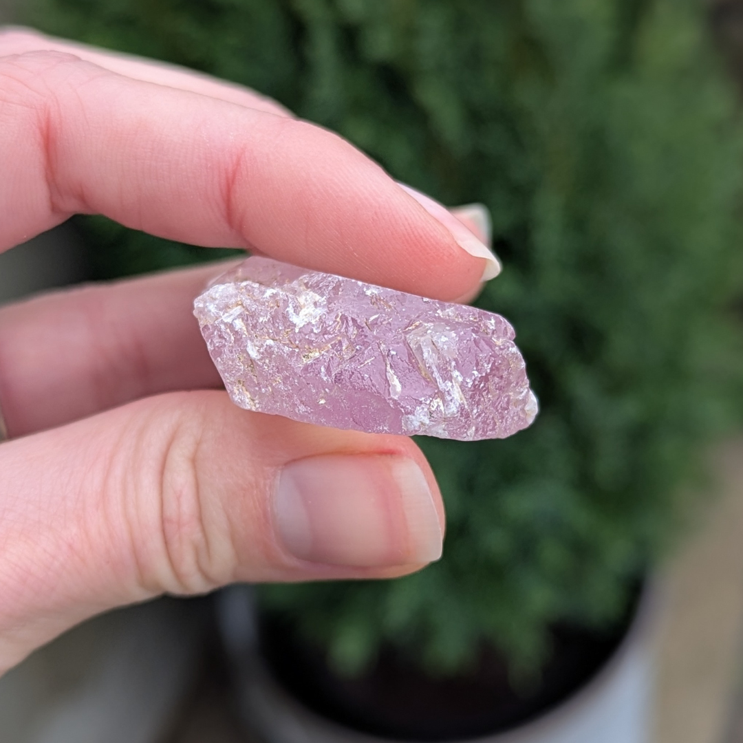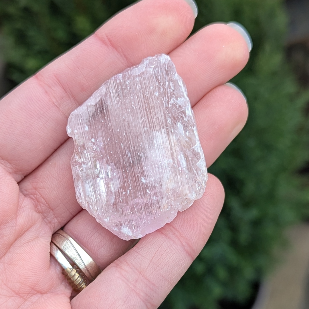 Kunzit hjælper i generhvervelse af sjælen, den letter rejsen tilbage til det sted dele af din sjæl blev tabt, og kan benyttes som modtager for sjælen til den er genoptaget i kroppen. De høje vibrationer vækker hjerte centret, og producerer kærlige tanker og kommunikation. Den bringer fred og universel forbundethed. Med sine høje vibrationer vil den beskytte din energi, og giver dig evnen til at blive i dig selv.