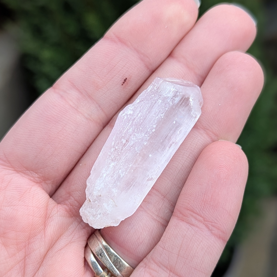 Kunzit hjælper i generhvervelse af sjælen, den letter rejsen tilbage til det sted dele af din sjæl blev tabt, og kan benyttes som modtager for sjælen til den er genoptaget i kroppen. De høje vibrationer vækker hjerte centret, og producerer kærlige tanker og kommunikation. Den bringer fred og universel forbundethed. Med sine høje vibrationer vil den beskytte din energi, og giver dig evnen til at blive i dig selv.