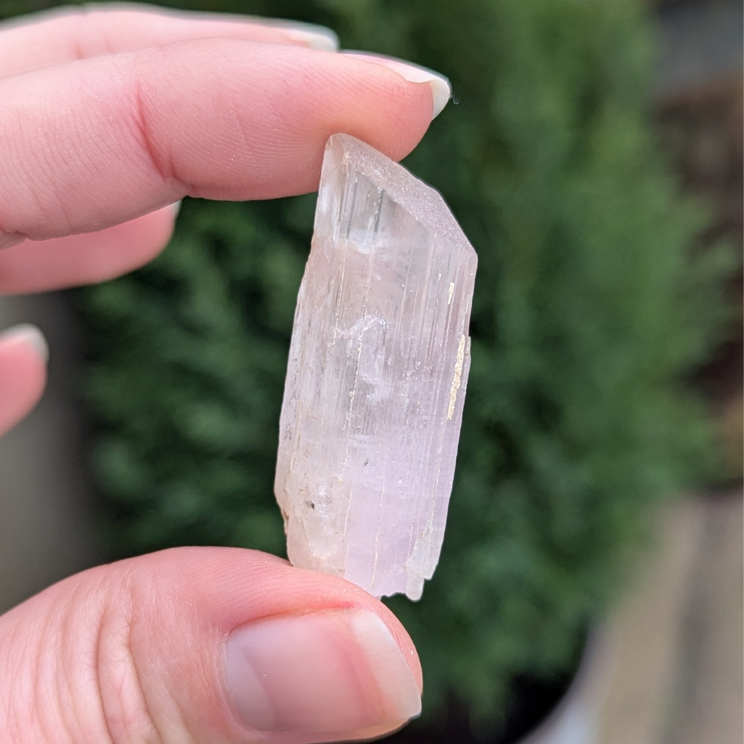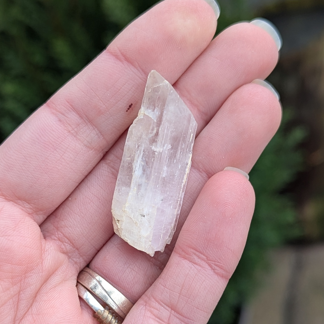 Kunzit hjælper i generhvervelse af sjælen, den letter rejsen tilbage til det sted dele af din sjæl blev tabt, og kan benyttes som modtager for sjælen til den er genoptaget i kroppen. De høje vibrationer vækker hjerte centret, og producerer kærlige tanker og kommunikation. Den bringer fred og universel forbundethed. Med sine høje vibrationer vil den beskytte din energi, og giver dig evnen til at blive i dig selv.