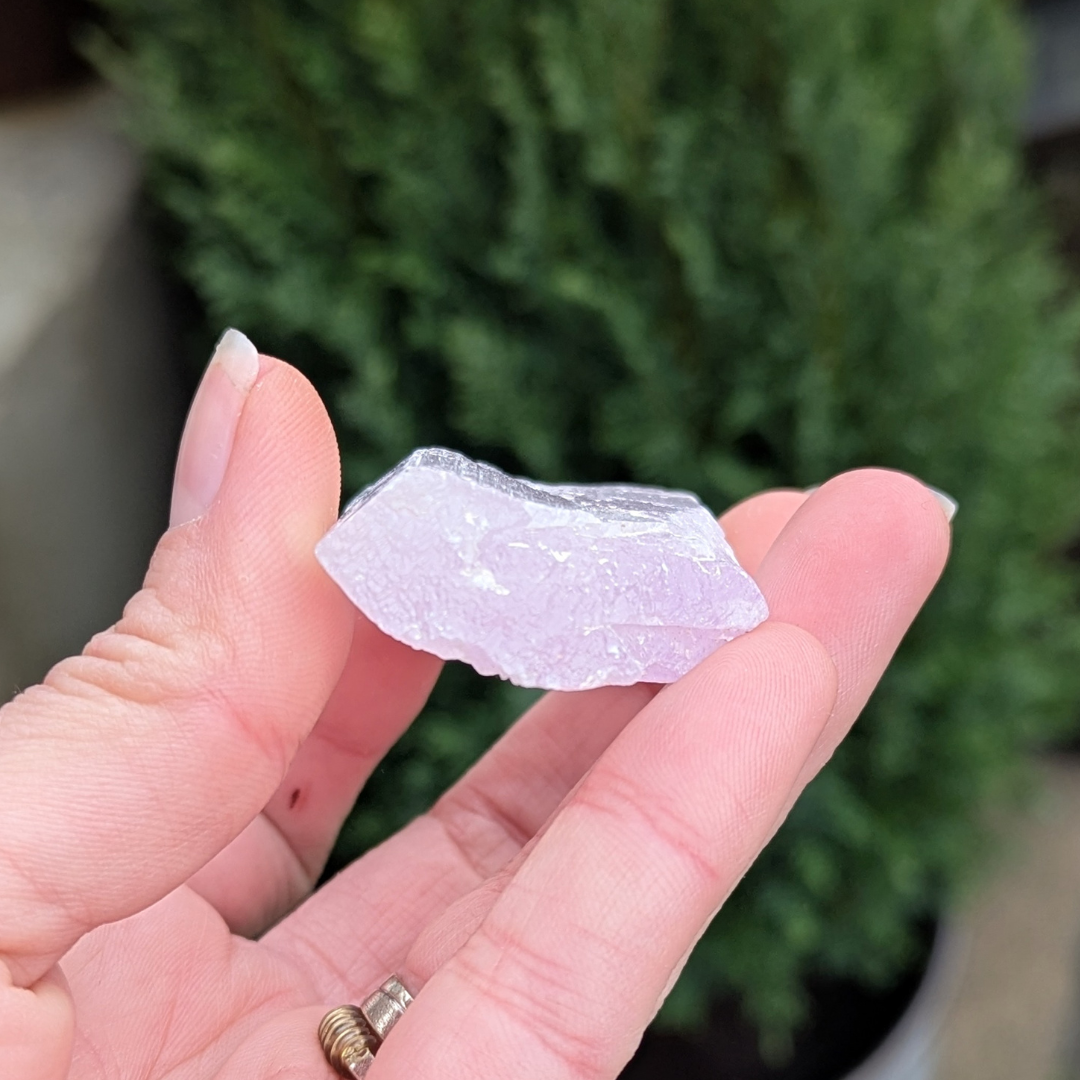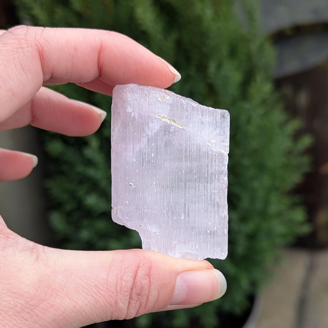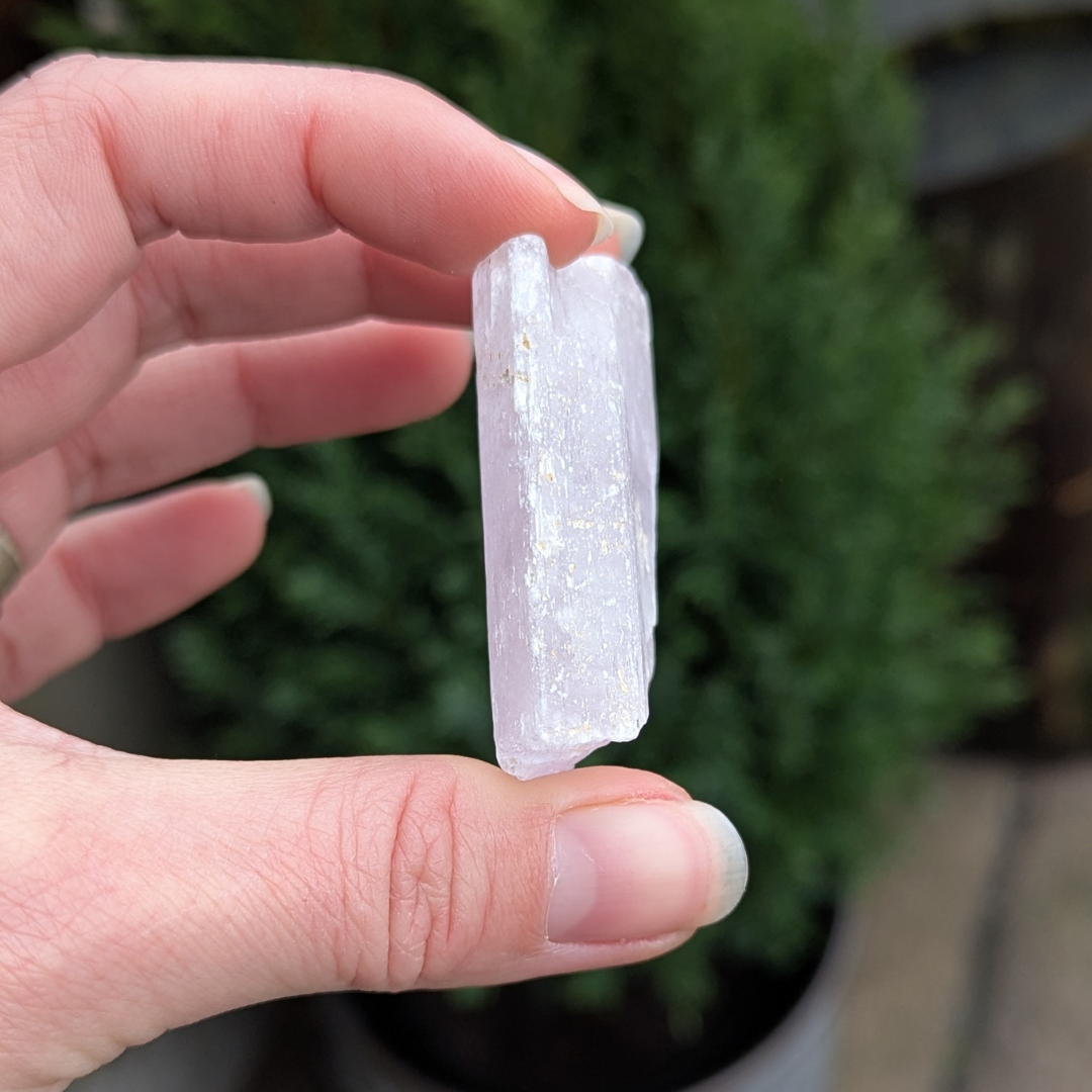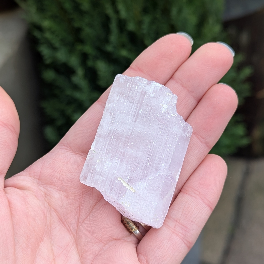 Kunzit hjælper i generhvervelse af sjælen, den letter rejsen tilbage til det sted dele af din sjæl blev tabt, og kan benyttes som modtager for sjælen til den er genoptaget i kroppen. De høje vibrationer vækker hjerte centret, og producerer kærlige tanker og kommunikation. Den bringer fred og universel forbundethed. Med sine høje vibrationer vil den beskytte din energi, og giver dig evnen til at blive i dig selv.