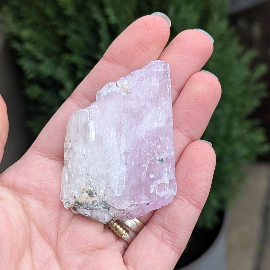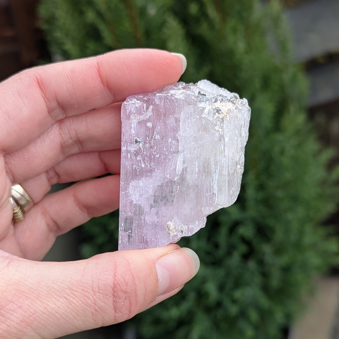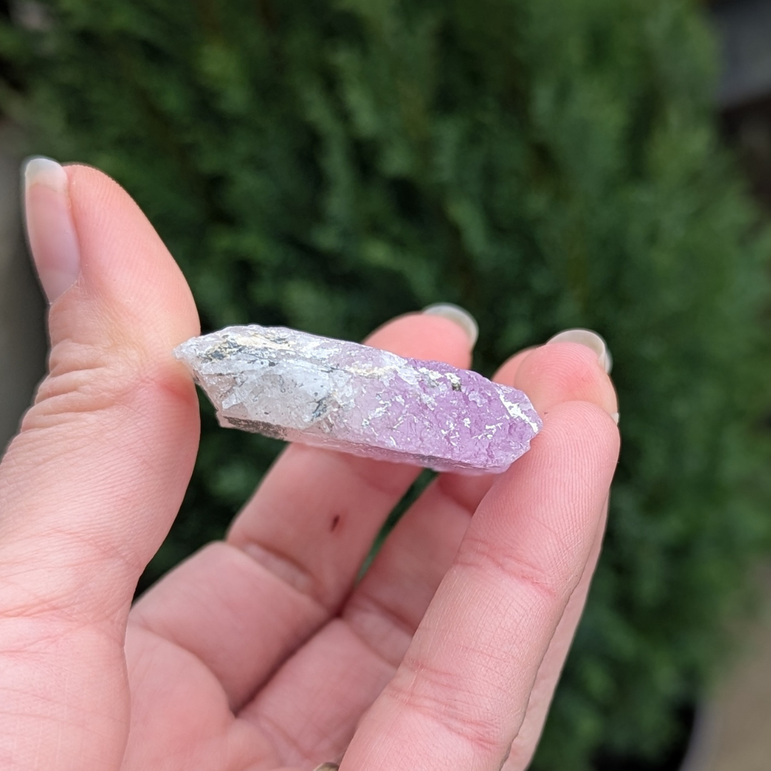 Kunzit hjælper i generhvervelse af sjælen, den letter rejsen tilbage til det sted dele af din sjæl blev tabt, og kan benyttes som modtager for sjælen til den er genoptaget i kroppen. De høje vibrationer vækker hjerte centret, og producerer kærlige tanker og kommunikation. Den bringer fred og universel forbundethed. Med sine høje vibrationer vil den beskytte din energi, og giver dig evnen til at blive i dig selv.