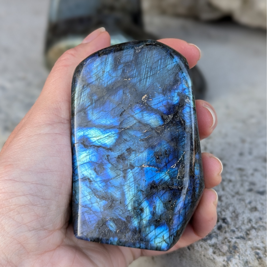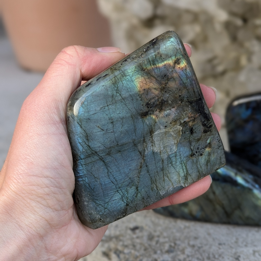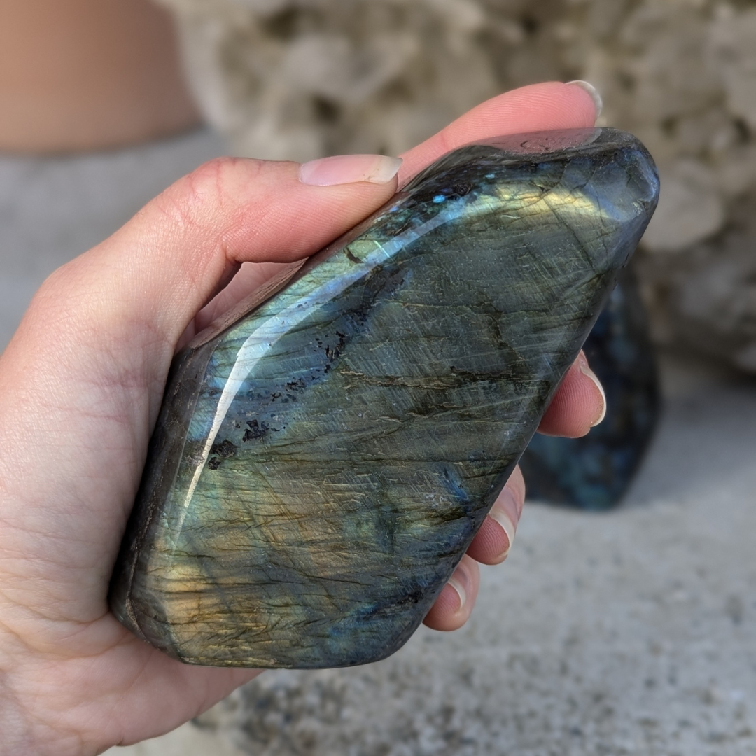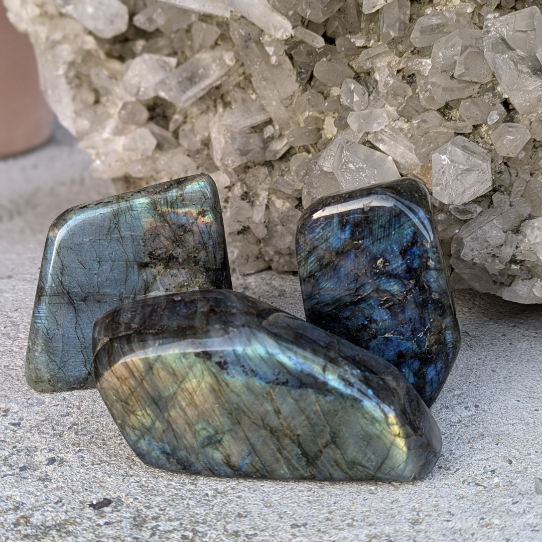 Labradorit beroliger en overaktiv hjerne og giver energi til fantasien og bringer nye ideer frem. Labradorit giver styrke og udholdenhed og er meget nyttig under ændringer.