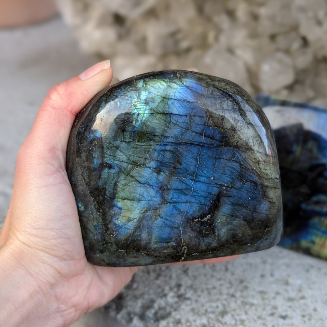 Labradorit beroliger en overaktiv hjerne og giver energi til fantasien og bringer nye ideer frem. Labradorit giver styrke og udholdenhed og er meget nyttig under ændringer.