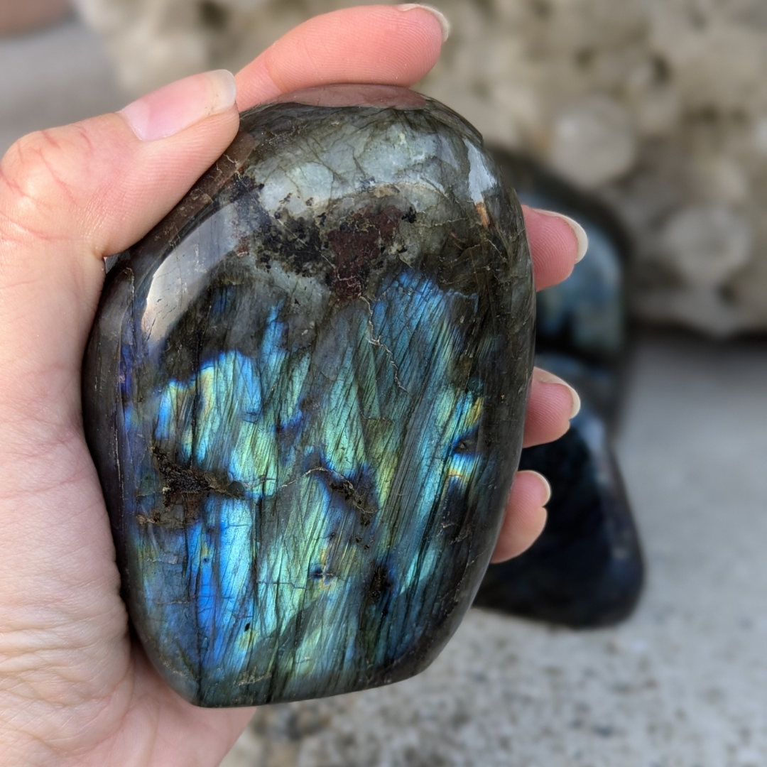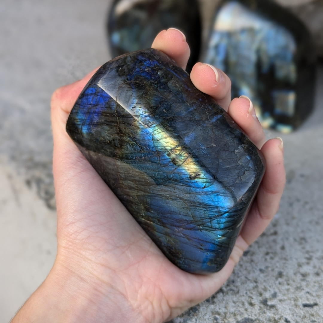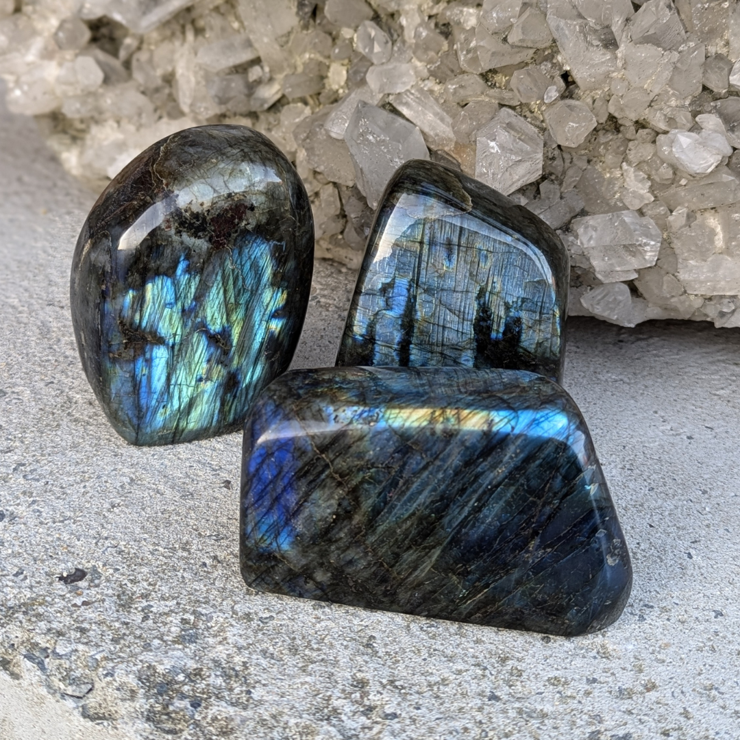 Labradorit beroliger en overaktiv hjerne og giver energi til fantasien og bringer nye ideer frem. Labradorit giver styrke og udholdenhed og er meget nyttig under ændringer.