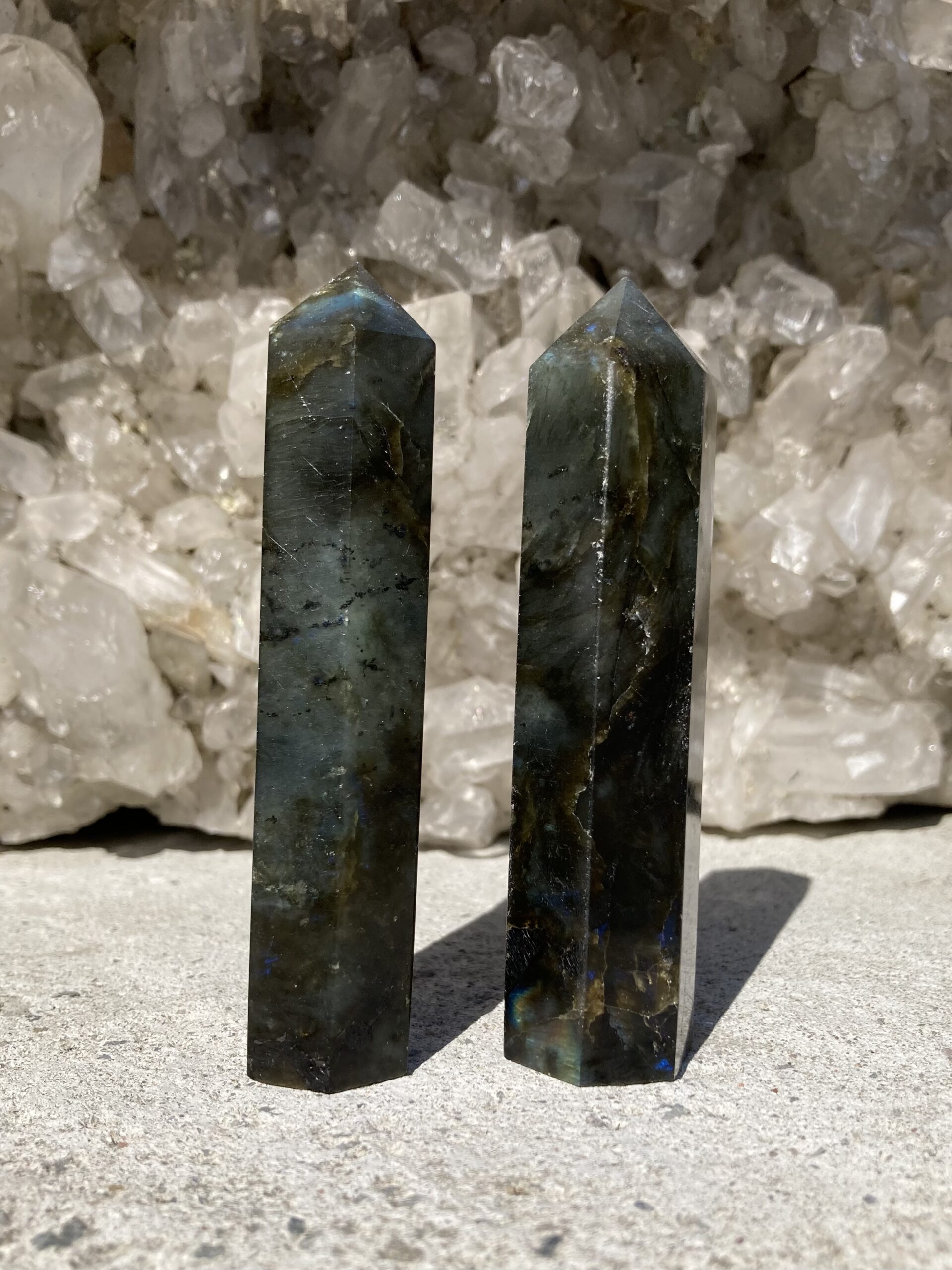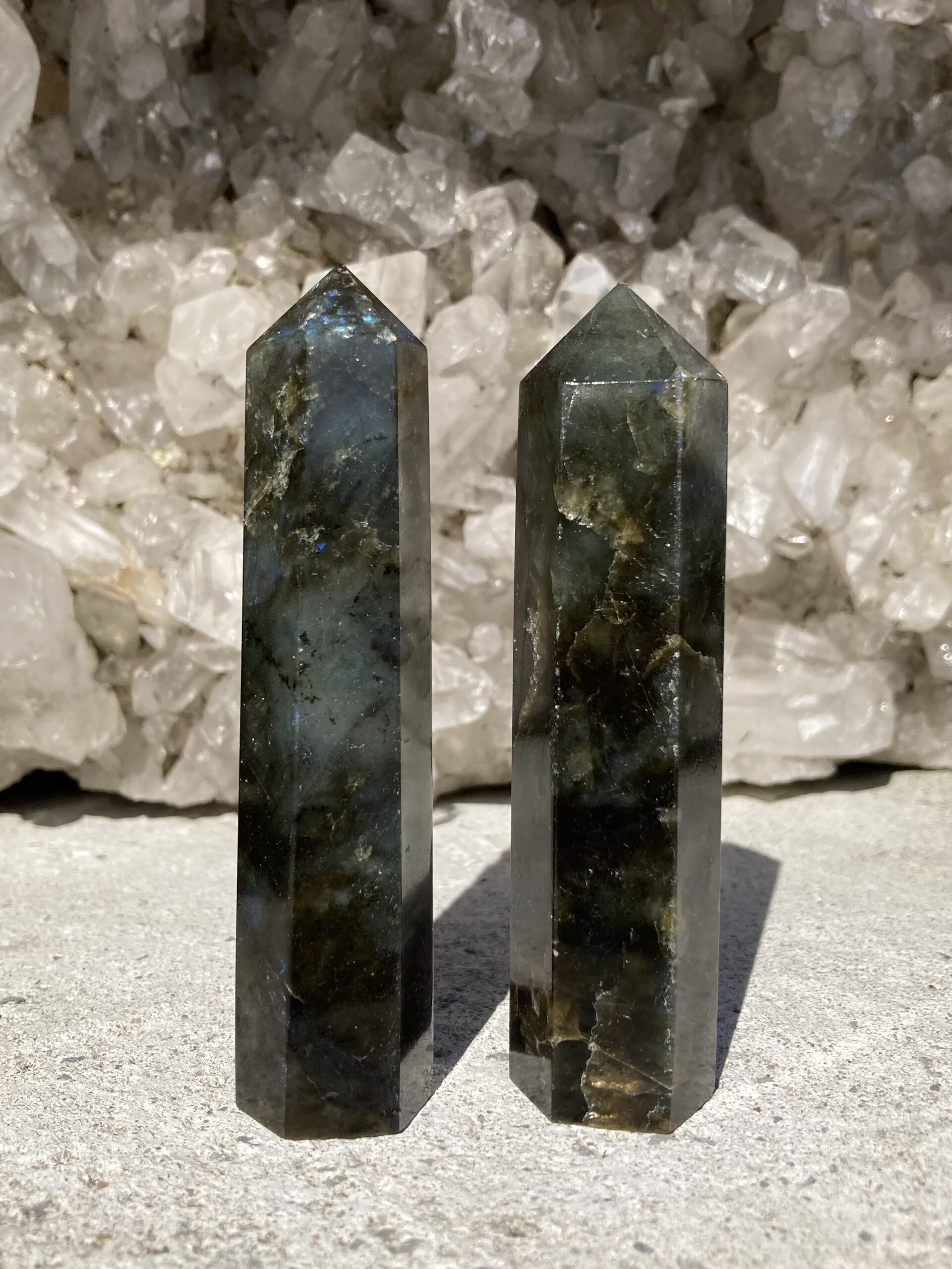 Labradorit hæver bevidstheden og forbinder dig til de universelle energier. Den jager uønskede energier væk fra auraen. Den stimulerer intuitionen og psykiske evner- den støtter dig ved at bringe budskaber fra din underbevidsthed op til overfladen og letter din forståelse af dem.