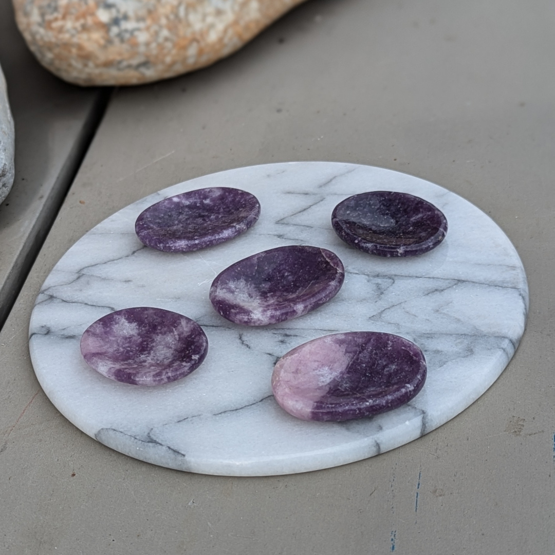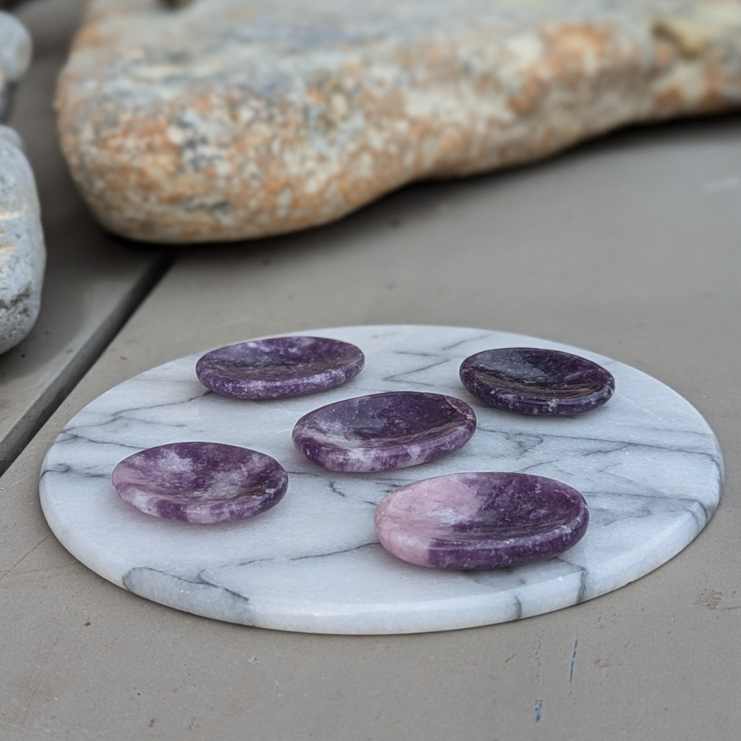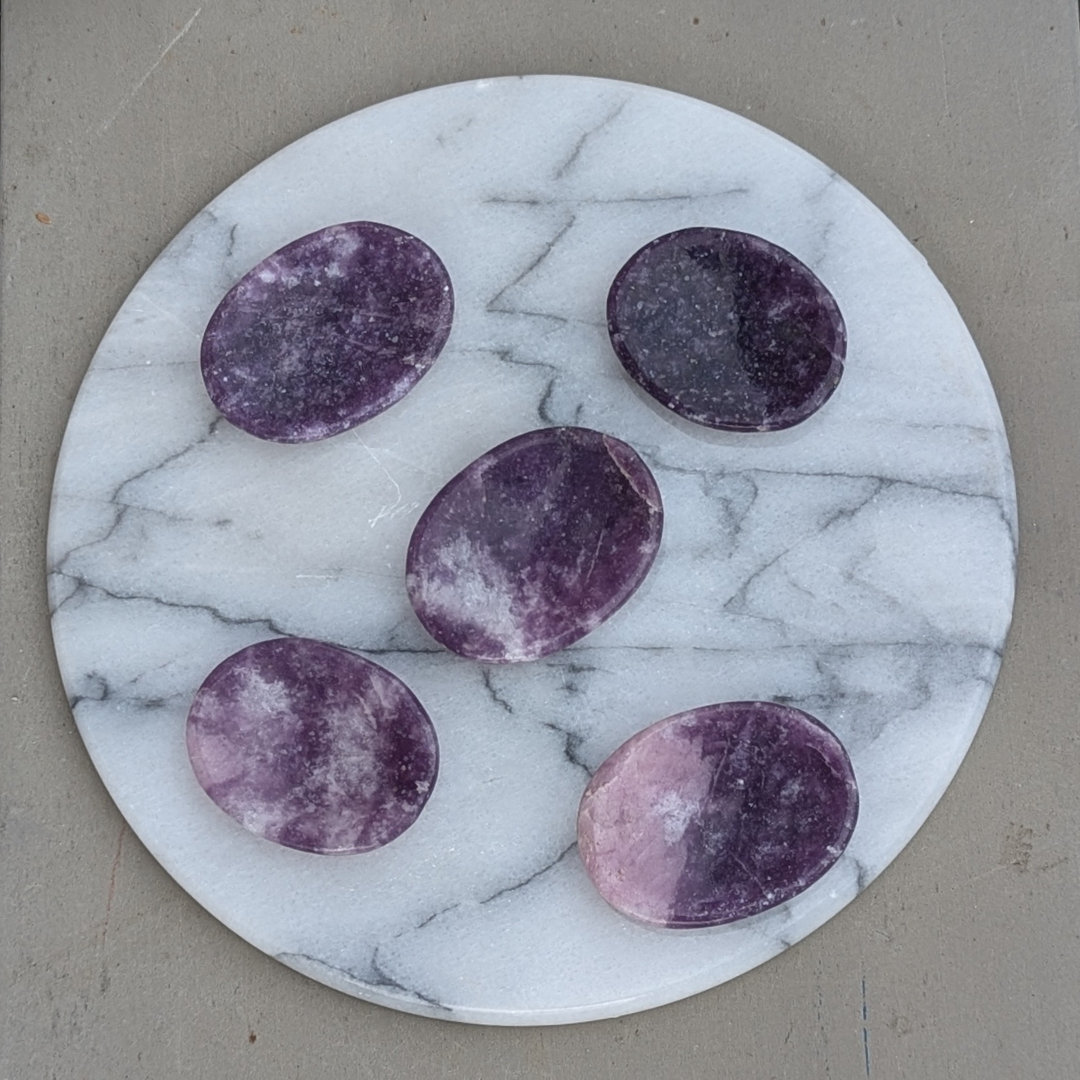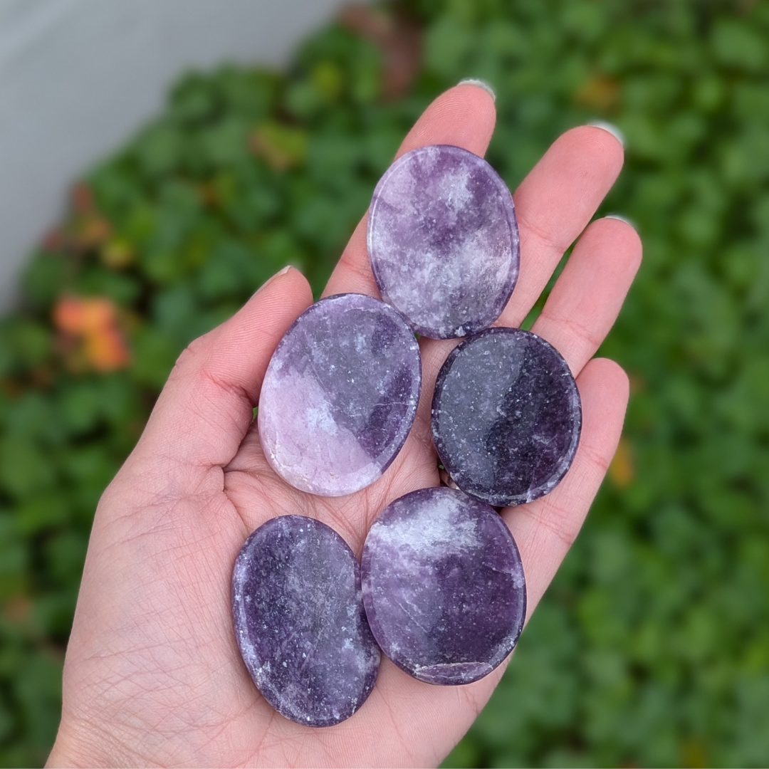 Lepidolit er god til at opløse negativitet. Den aktivere og åbner chakraerne i strube, hjerte , tredje øje og kronechakraet. Den renser blokeringer. Den er til god hjælp ved shamanrejser og spirituelle rejser. Den kan lede dig tilbage til tidligere liv og lade dig opløse blokeringer der begrænser dig i dit nuværende liv. Den er en beroligende sten der støtter dig ved søvnforstyrelser og følelsesmæssigt stress. Den bringer dyb følelsesmæssig healing.