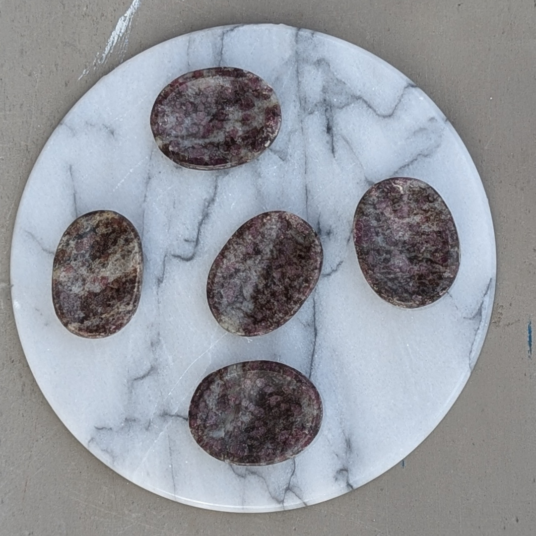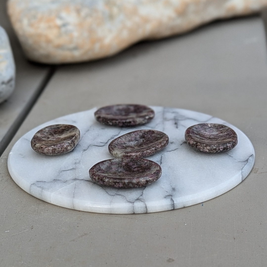 Den perfekte sten til lommen. Den har en fin lille fordybning der passer til tommeltotten. Den er stenens svar på en stressbold, hvor du kan finde en skøn ro i at lade tomlen glide let over stenen.