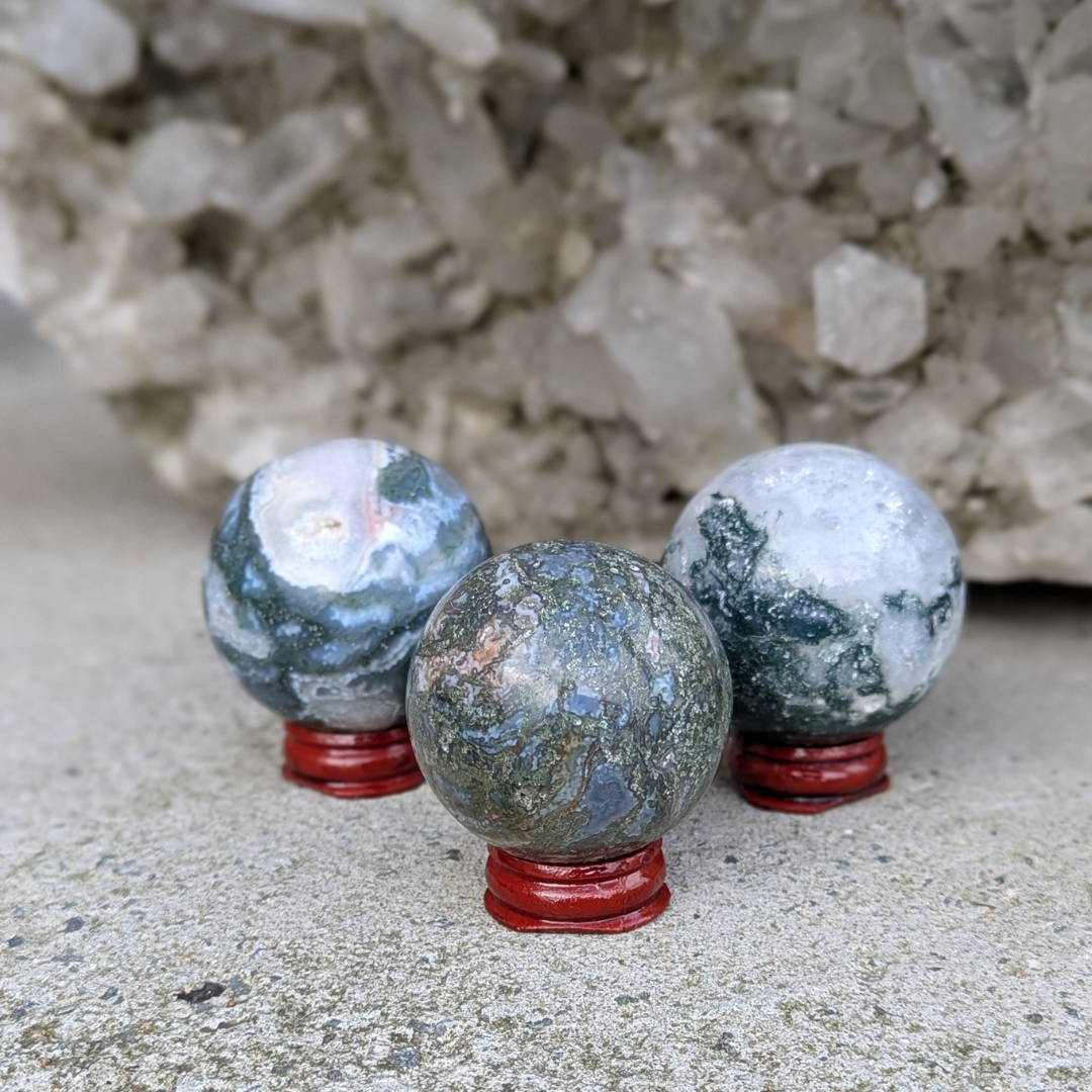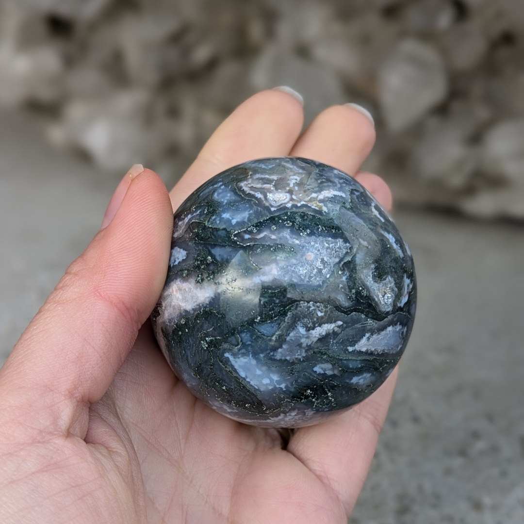Det siges at: Mosagat healer hjertet, giver mod og hjælper dig med at få en god jordforbindelse. Mosagat er en god hjælp i alle situationer, hvor du har brug for at mobilisere al din viljestyrke, eller i perioder i dit liv, hvor du har brug for ekstra overskud – den vil fremme din vitalitet. Det er en stabiliserende sten der forbinder dig til naturen, alt liv omkring dig og minder os om at se skønheden i alt. Den arbejder på at frigøre blokeringer og mentale lænker. Mosagat er en velstands sten, der tiltrækker overflod, ikke bare økonomisk, men vil støtte alle former for frugtbar vækst og nye begyndelser. Den afbalancerer følelserne til gavn for vores kommunikation og din udtryksevne.
