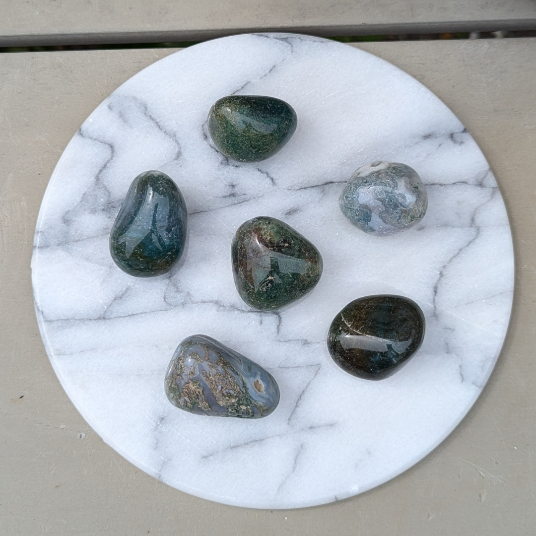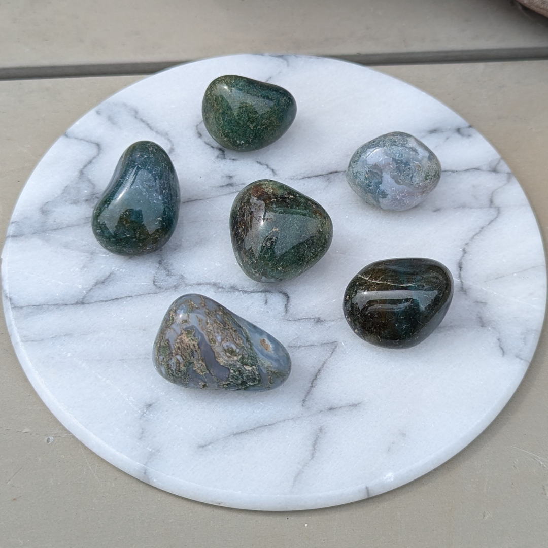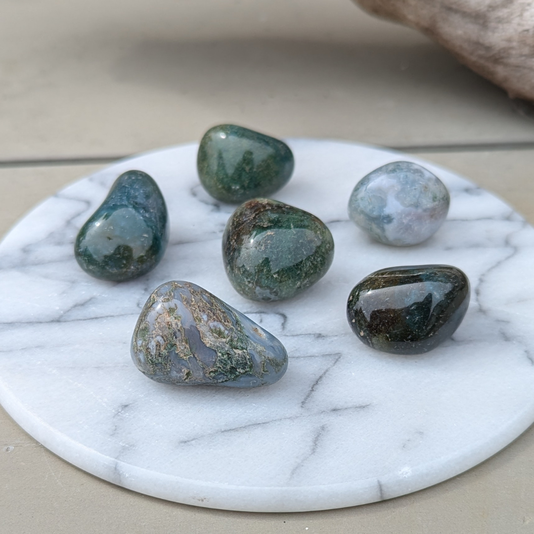 Det siges at: Mosagat healer hjertet, giver mod og hjælper dig med at få en god jordforbindelse. Mosagat er en god hjælp i alle situationer, hvor du har brug for at mobilisere al din viljestyrke. Eller i perioder i dit liv, hvor du har brug for ekstra overskud – den vil fremme din vitalitet. Det er en stabiliserende sten der forbinder dig til naturen, alt liv omkring dig og minder is om at se skænheden i alt. Den arbejder på at frigøre blokeringer og mentale lænker. Mosagat er envelstands sten, der tiltrækker overflod, ikke bare økonomisk, men vil støtte alle former for frugtbar vægst og nye begyndelser. Den afbalancerer følelserne til gavn for vores kommunikation og din udtryksevne.