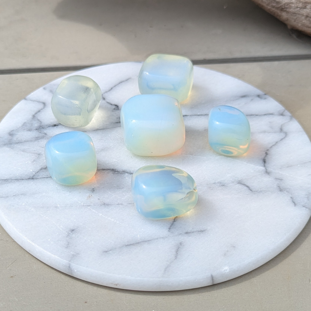 Opalit er fremstillet. Opalit styrker energien og overvinder træthed, og derfor bringer ro og positive energier. Den skulle forbedre psykiske evner samt fremkalde visioner. Det siges også at den kan stabilisere humørsvingninger.