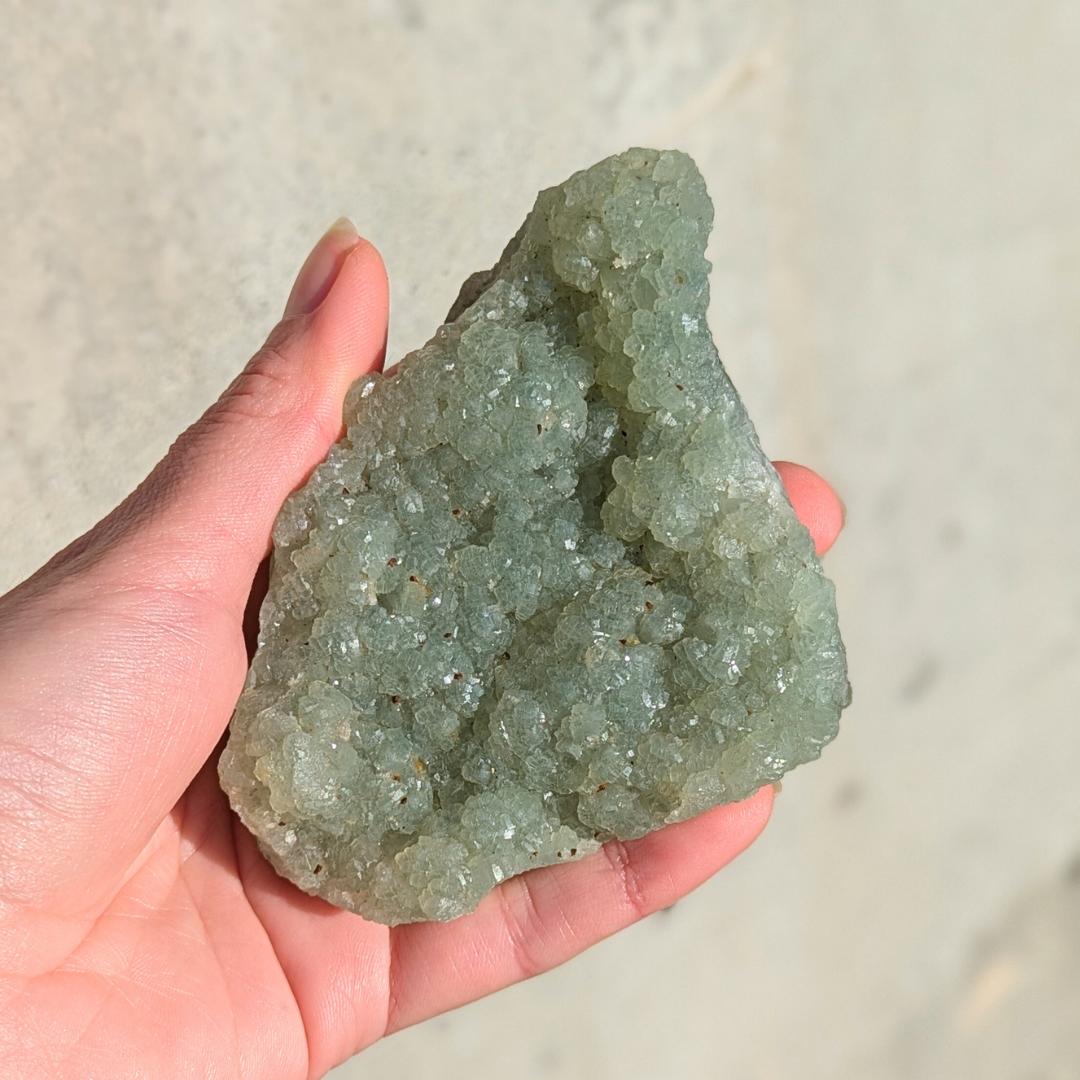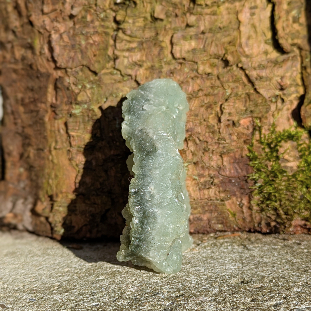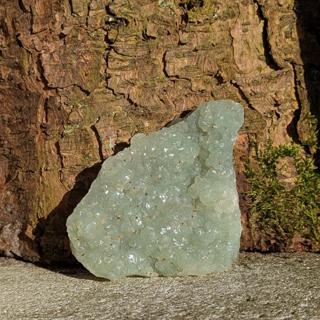 Prehnit står for betingelsesløs kærlighed, og en krystal der healer healeren. Den forstærker visualisering og fremkalder dyb meditation, hvor der kan opnås kontakt til dig højere selv. Den siges at resonere med ærkeenglen Rafael. Den forstærker uddannelse og indre viden. Det er en kraftfuld krystal, der sætter dig i stand til at være forberedt på det uforberedte. Den mildner mareridt, forbier og frygt. God ved hyperaktivitet.