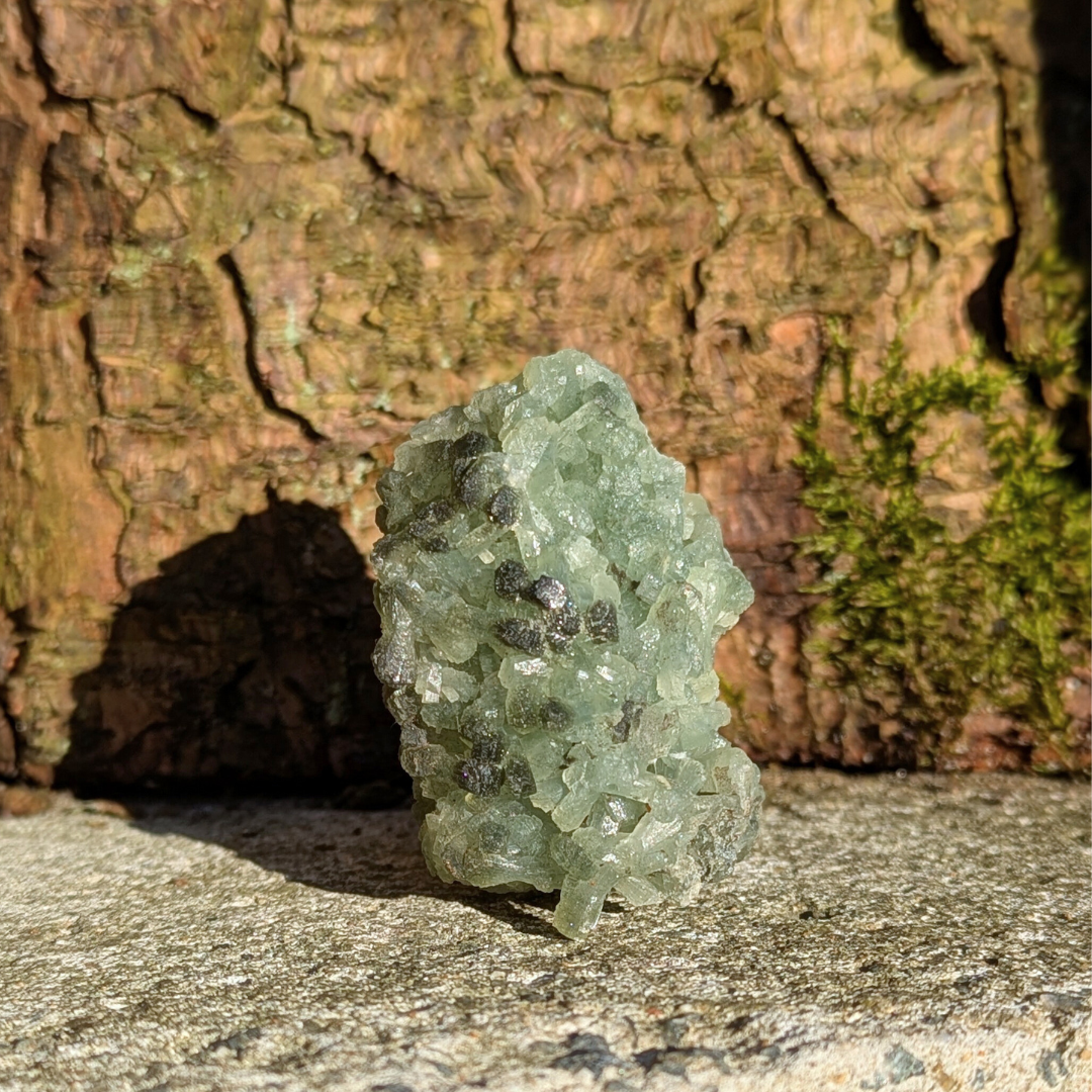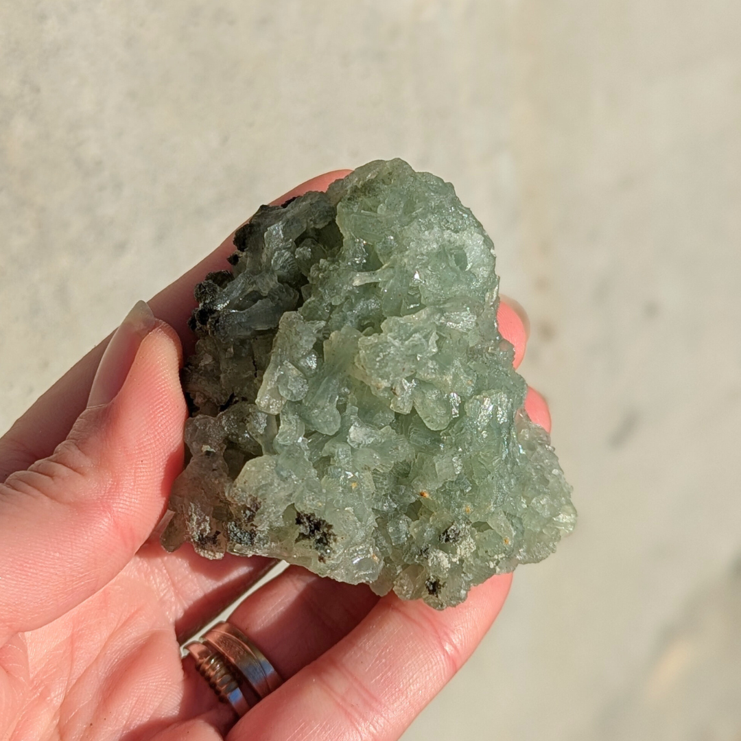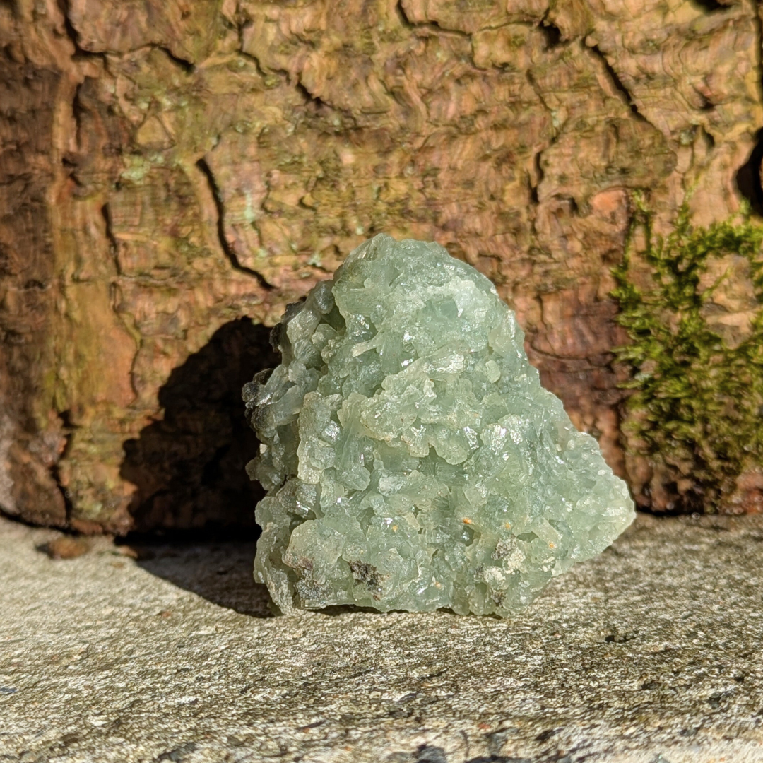 Prehnit står for betingelsesløs kærlighed, og en krystal der healer healeren. Den forstærker visualisering og fremkalder dyb meditation, hvor der kan opnås kontakt til dig højere selv. Den siges at resonere med ærkeenglen Rafael. Den forstærker uddannelse og indre viden. Det er en kraftfuld krystal, der sætter dig i stand til at være forberedt på det uforberedte. Den mildner mareridt, forbier og frygt. God ved hyperaktivitet.