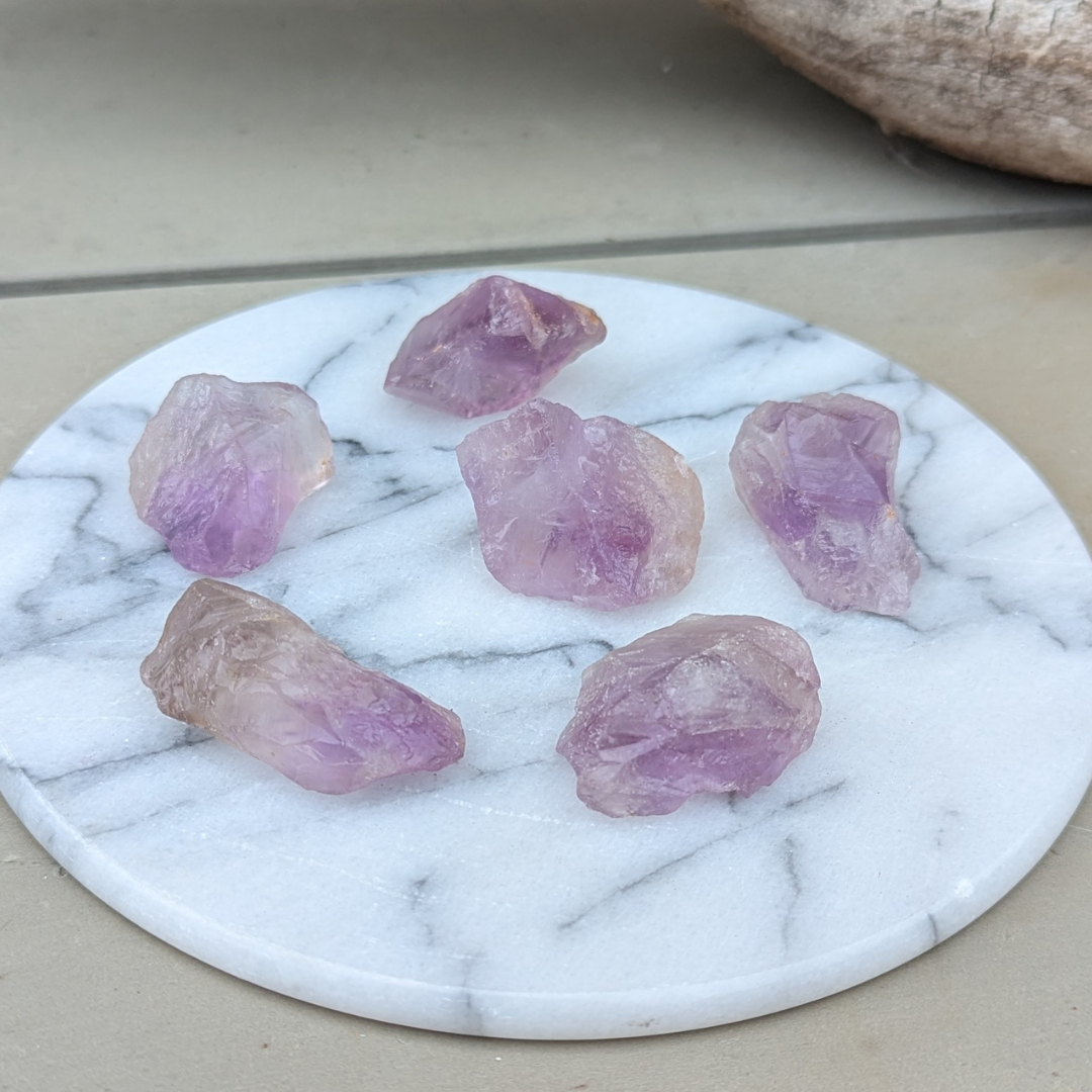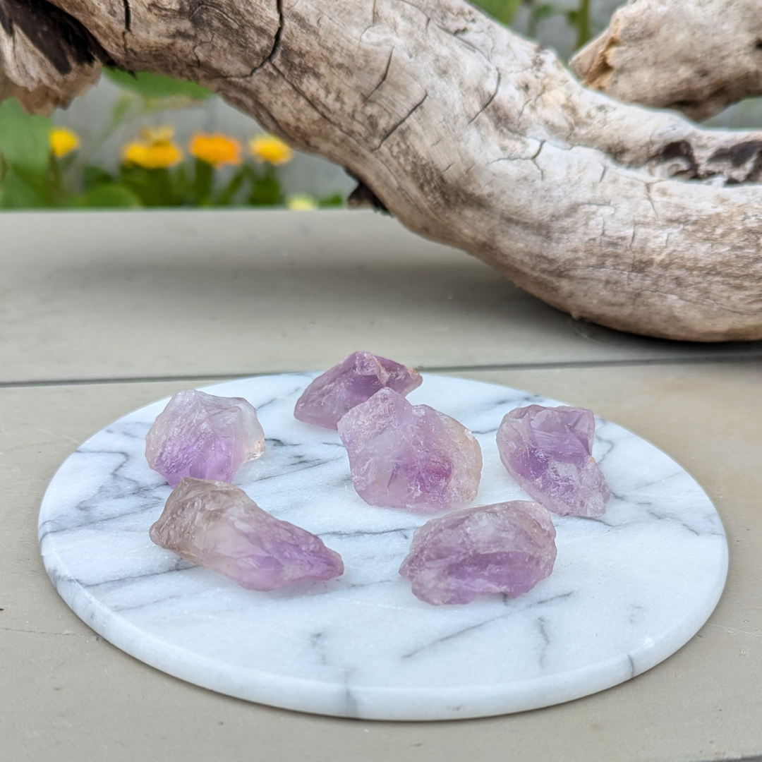 Det siges at Ametyst er en meget beroligende sten. Den virker rensende på krop og sind og beroliger et nervøst gemyt og dæmper et voldsomt temperament . Den ligger en dæmper på alle stress og affekttilstande. Den får os til at vende blikket indad og søge efter den egentlige årsag til vores uro. Netop fordi ametyst støtter os i at vende blikket indad, kan den også være en stor hjælp når man tumler med svære problemstillinger. Den vil i disse situationer give klarhed og hjælpe os med at træffe de rette beslutninger. Ametyst er skøn at meditere med fordi den bringer en dejlig ro. Ametysten er desuden en god sove sten netop fordi den skaber ro i sindet.