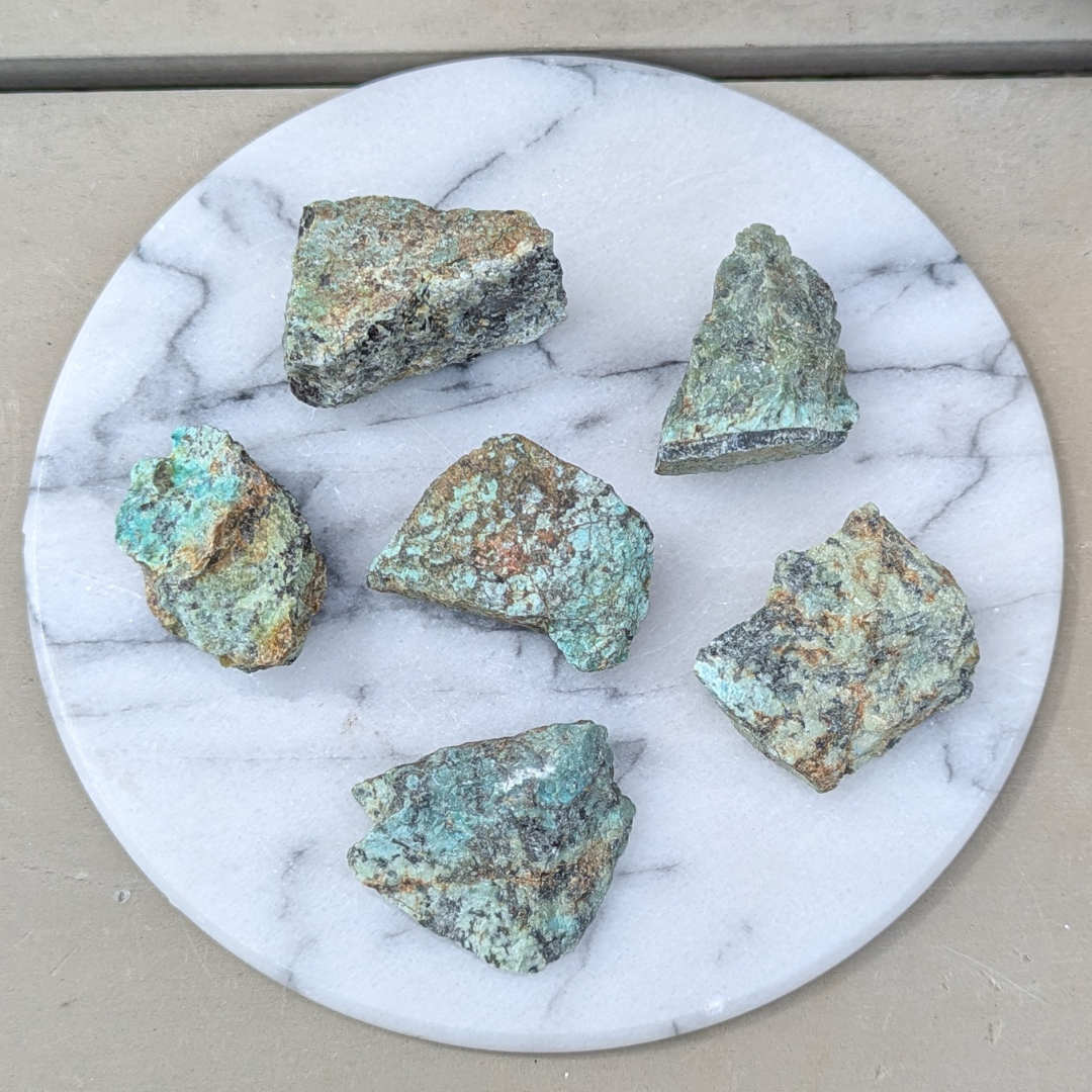 Chrysocolla er turkisgrøn eller turkisblå. Den er et vandholdigt kobber silikat. Chrysocolla er en kærlighedssten. Den symbolisere åbenhed, kærlighed, skønhed, renselse og balance. Den styrker den feminine side og løfter vores følelser op til en højere enhed. Den viser os at det eneste der i virkeligheden betyder noget er kærligheden. Den fylder os med overskud til at acceptere og tilgive både os selv og andre, så vi bliver kærlige kanaler for universets højeste energi. Den åbner hjertet for højere energier, men kan også bruges både på solar plexus og krone chakraet. Den vil hjælpe med at rense ud i vores følelser, så det vi ikke længere har brug for, forsvinder og vi vil tiltrække de energier og erfaringer der er gode og nyttige for os netop nu.