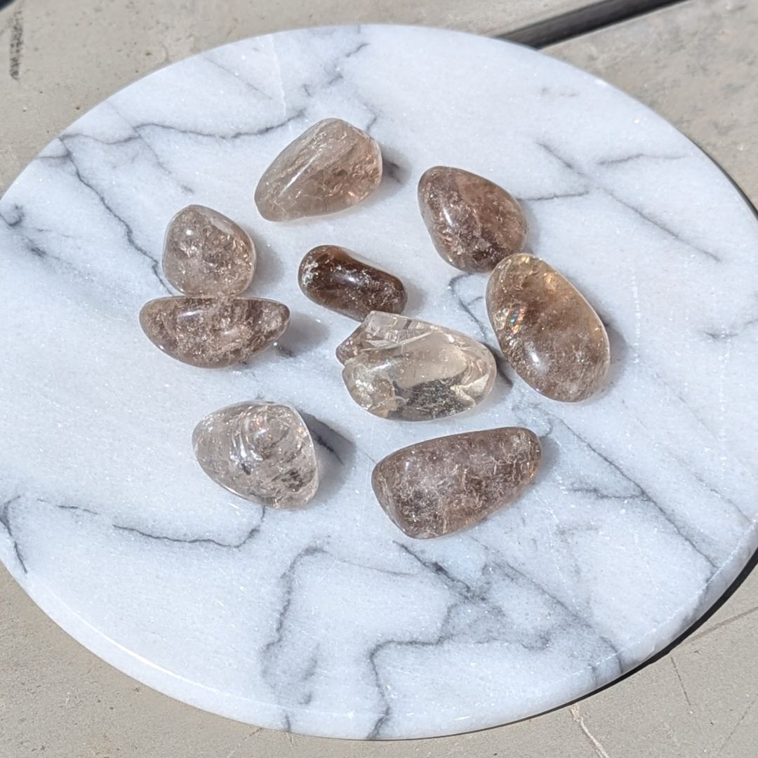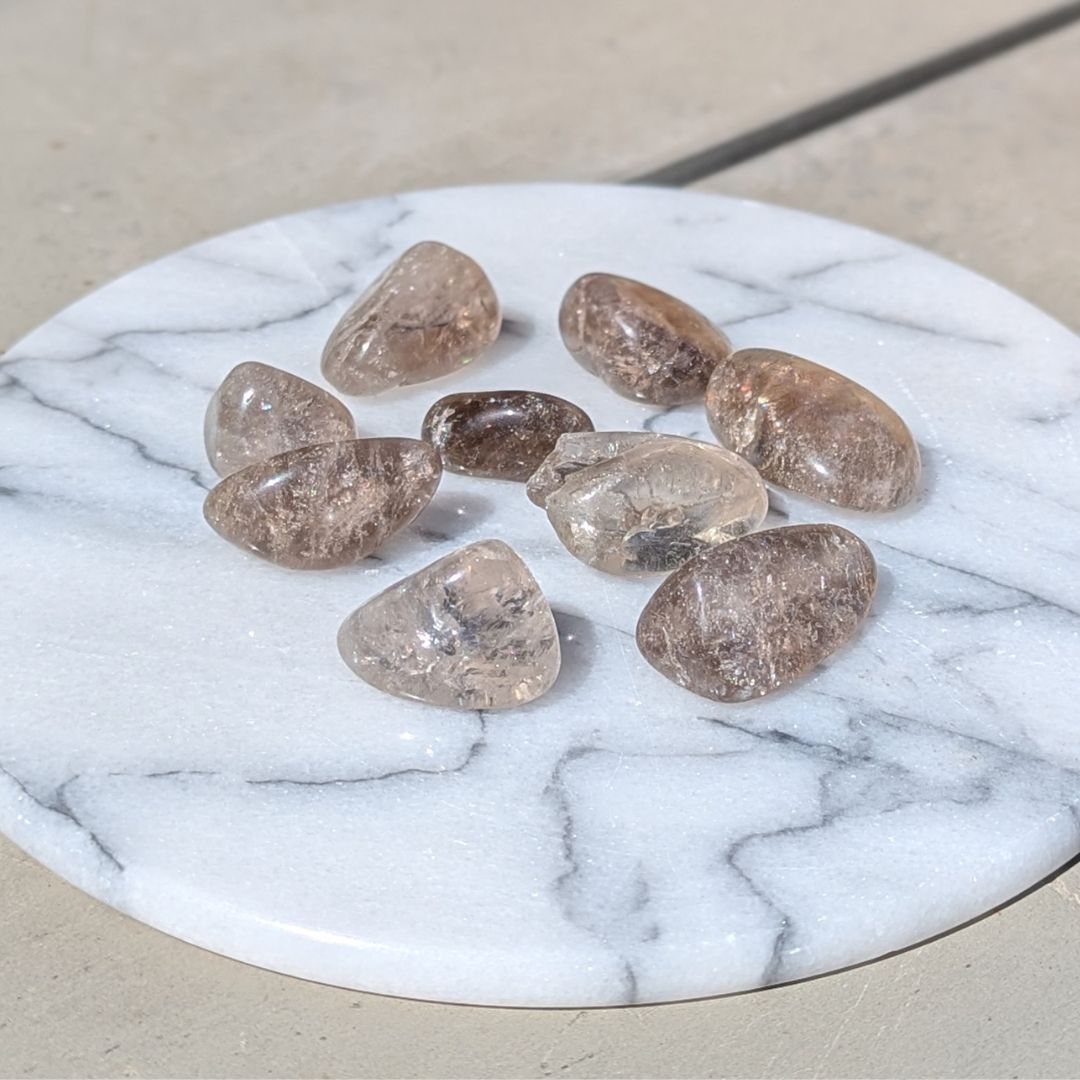 Røgkvarts er meget effektiv til grounding og forankring og har stærk forbindelse til jorden. Den er perfekt til stress og hjælper med at tolerere vanskelige tider med ligevægt og sindsro og styrker beslutningsprocesser. Den “renser” os for enhver “urenhed” både fysisk og psykisk. Røgkvarts er derfor god til at rense os for negative tanker og følelser. Den trækker lyset ind i smertefulde områder så vi kan får sluppet de følelser, der har forsaget smerten.