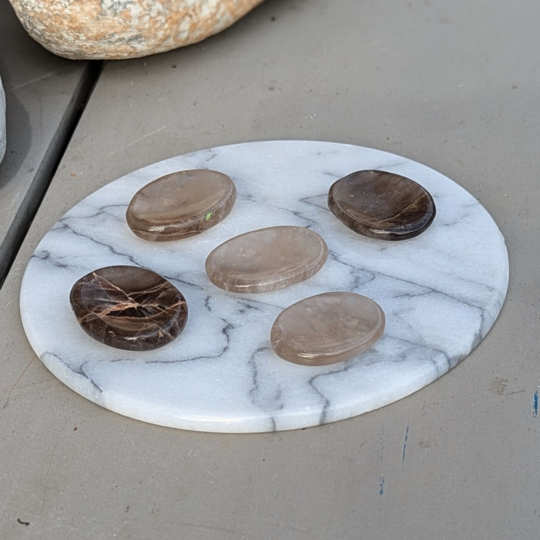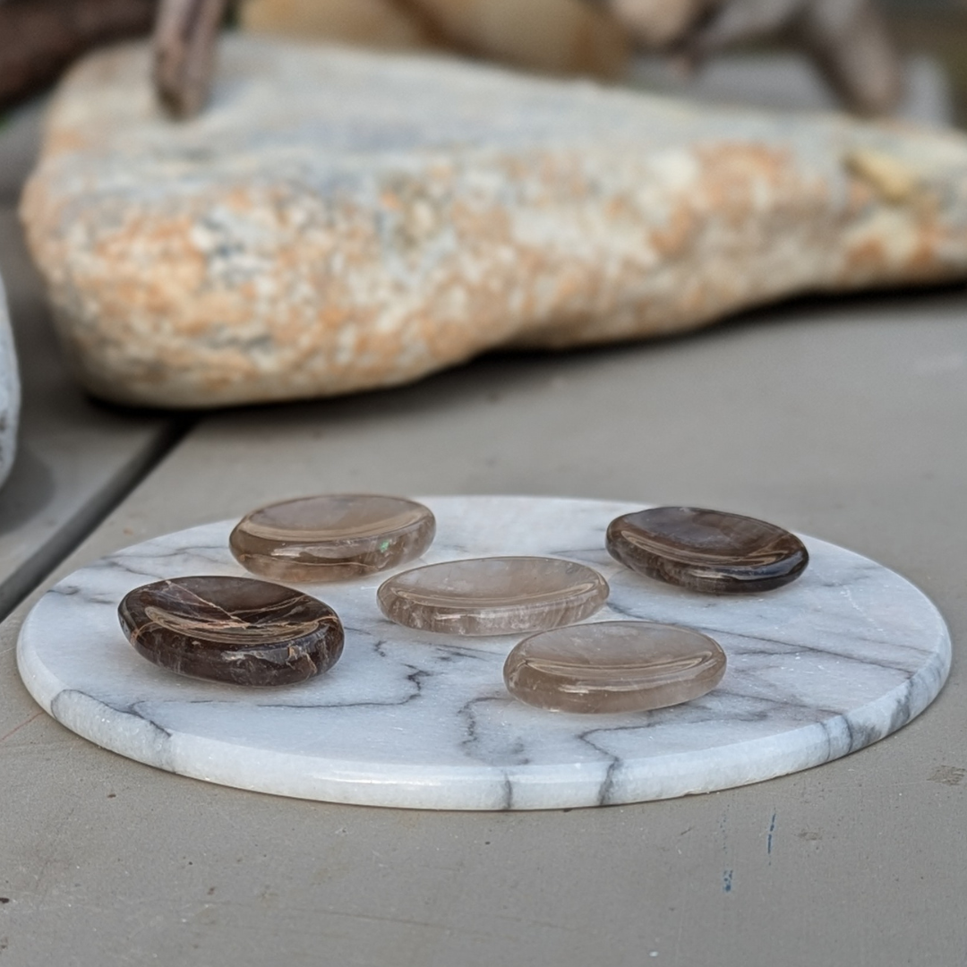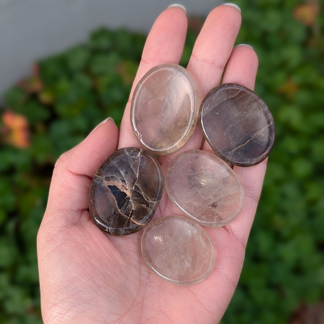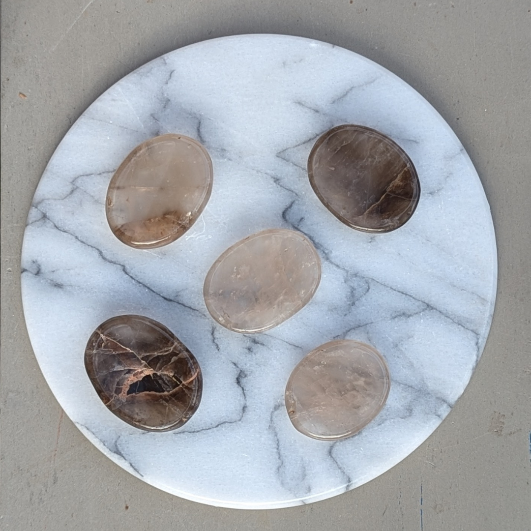 Røgkvarts er meget effektiv til grounding og forankring og har stærk forbindelse til jorden. Den er perfekt til stress og hjælper med at tolerere vanskelige tider med ligevægt og sindsro og styrker beslutningsprocesser. Den “renser” os for enhver “urenhed” både fysisk og psykisk. Røgkvarts er derfor god til at rense os for negative tanker og følelser. Den trækker lyset ind i smertefulde områder så vi kan får sluppet de følelser, der har forsaget smerten.