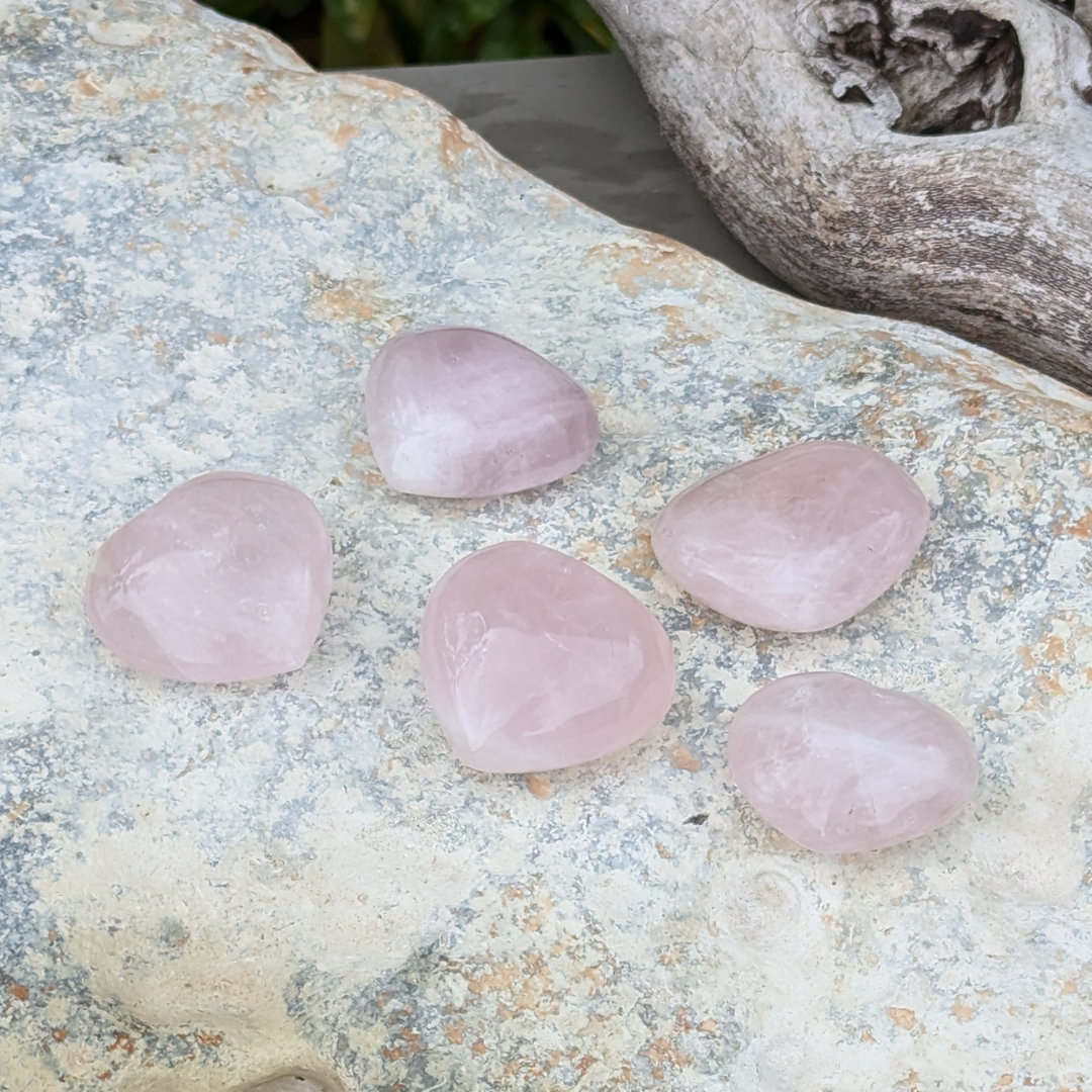 Rosakvarts er hjertets sten. Med sin blide farve udstråler den kærlighed. Den renser og åbner hjertet på alle niveauer og bringer dyb og indre kærlighed til dig selv. Rosakvarts er den bedste følelsesmæssige healer. Det er stenen til betingelsesløs kærlighed og uendelig fred. Den trækker blidt negativ energi væk og erstatter den med kærlige vibrationer. Den trøster dig i sorgen over tabt kærlighed og viser dig hvor vigtigt det er at du elsker dig selv før du kan elske andre. Den guider dig mod accept og giver dit selvværd og din selvtillid et boost.