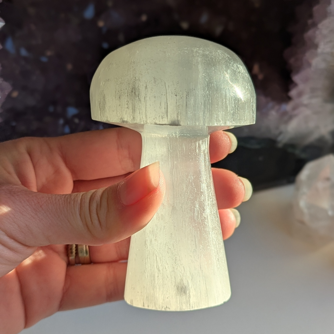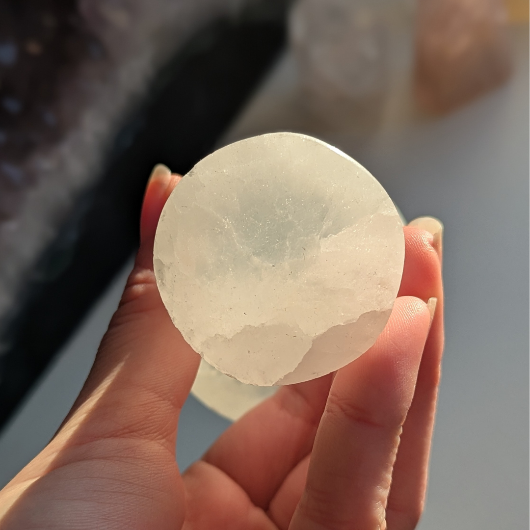 Det siges at: Selenit er uundværlig når du arbejder med krystaller, den trækker lys ind i store mængder, og arbejder fokuseret på at forløse og opløse stagneret energi, derfor en god krystal til skyggearbejde. Den er ofte brugt som oplader og rense station for dine andre krystaller. Den er yderst effektiv til at fjerne energistøj fra din aura, hvis du har tendens til at absorbere andres energi. Selenit er en beskyttende krystal, der med fordel kan placeres rundt om i hjemmet. Selenittens høje vibrationer inviterer dig ind i højere bevidstheds planer og forståelse af nye og større koncepter.