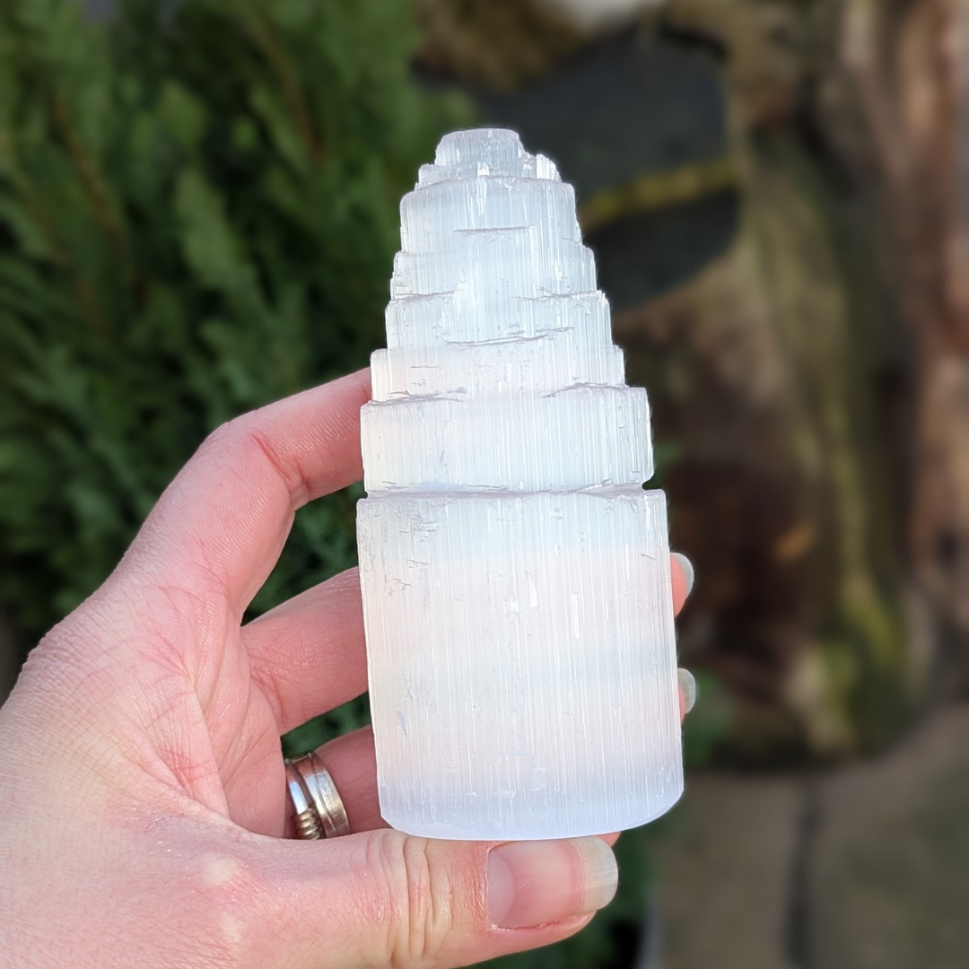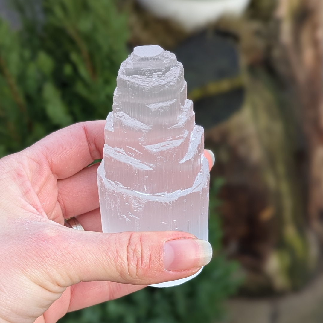 Selenit er uundværlig når du arbejder med krystaller, den trækker lys ind i store mængder, og arbejder fokuseret på at forløse og opløse stagneret energi, derfor en god krystal til skyggearbejde. Den er ofte brugt som oplader og rense station for dine andre krystaller. Den er yderst effektiv til at fjerne energistøj fra din aura, hvis du har tendens til at absorbere andres energi. Selenit er en beskyttende krystal, der med fordel kan placeres rundt om i hjemmet. Selenittens høje vibrationer inviterer dig ind i højere bevidstheds planer og forståelse af nye og større koncepter.