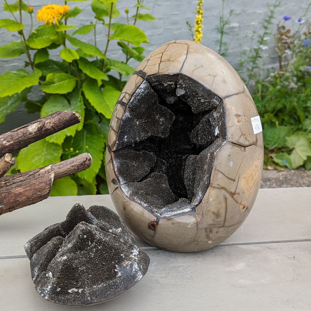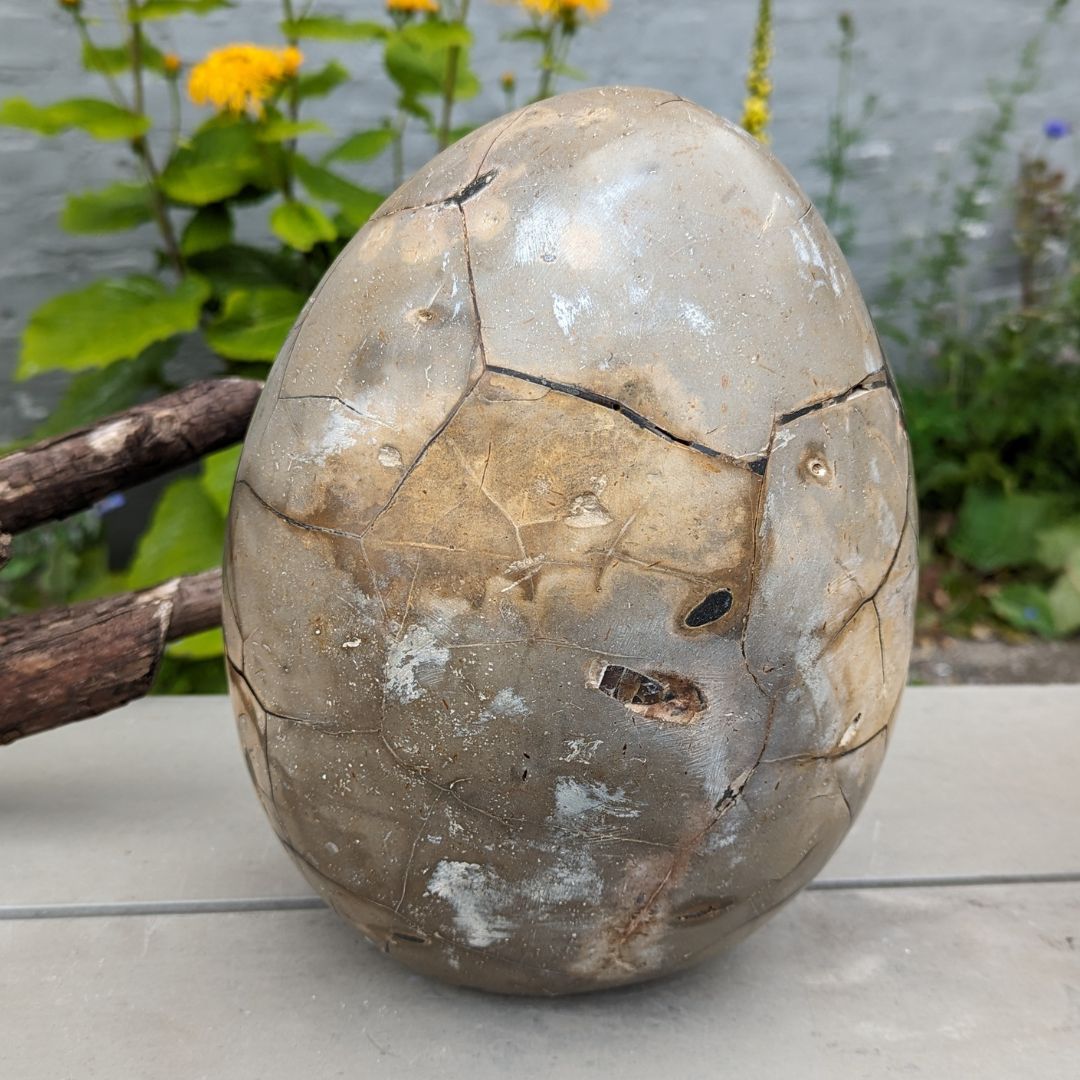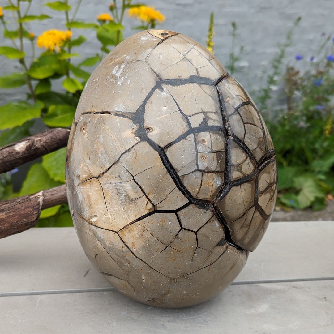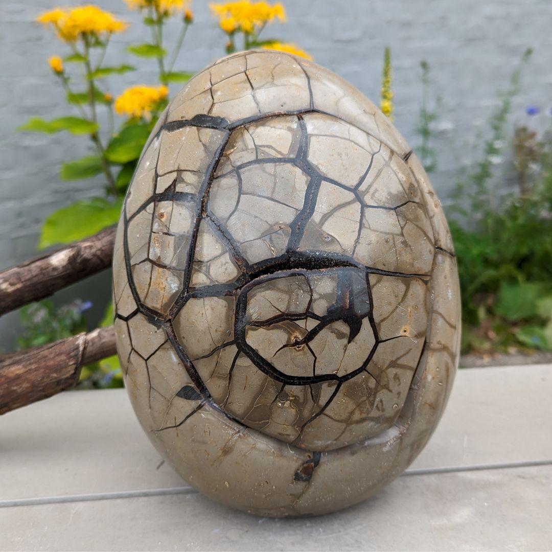 Septarie sten også kaldet drageæg, består at calcit, aragonit og chalcedon(kalksten) Septarie blev dannet for 70 millioner år siden, af vulkanudbrud. De kommer frem fra jordens begyndelse og skaber direkte forbindelse med Moder Jords dybe puls. Arbejder på vore tanker og tankemønstre. Den bearbejder vore selvskabt begrænsninger og gamle programmer og overbevisninger.