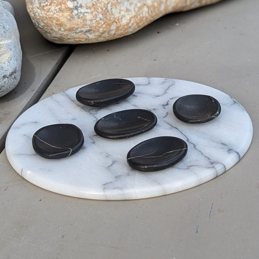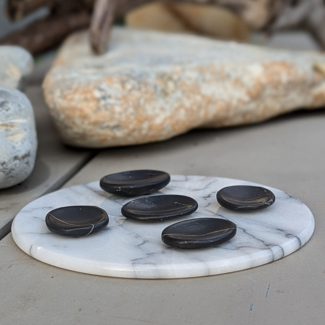 Den perfekte sten til lommen. Den har en fin lille fordybning der passer til tommeltotten. Den er stenens svar på en stressbold, hvor du kan finde en skøn ro i at lade tomlen glide let over stenen.