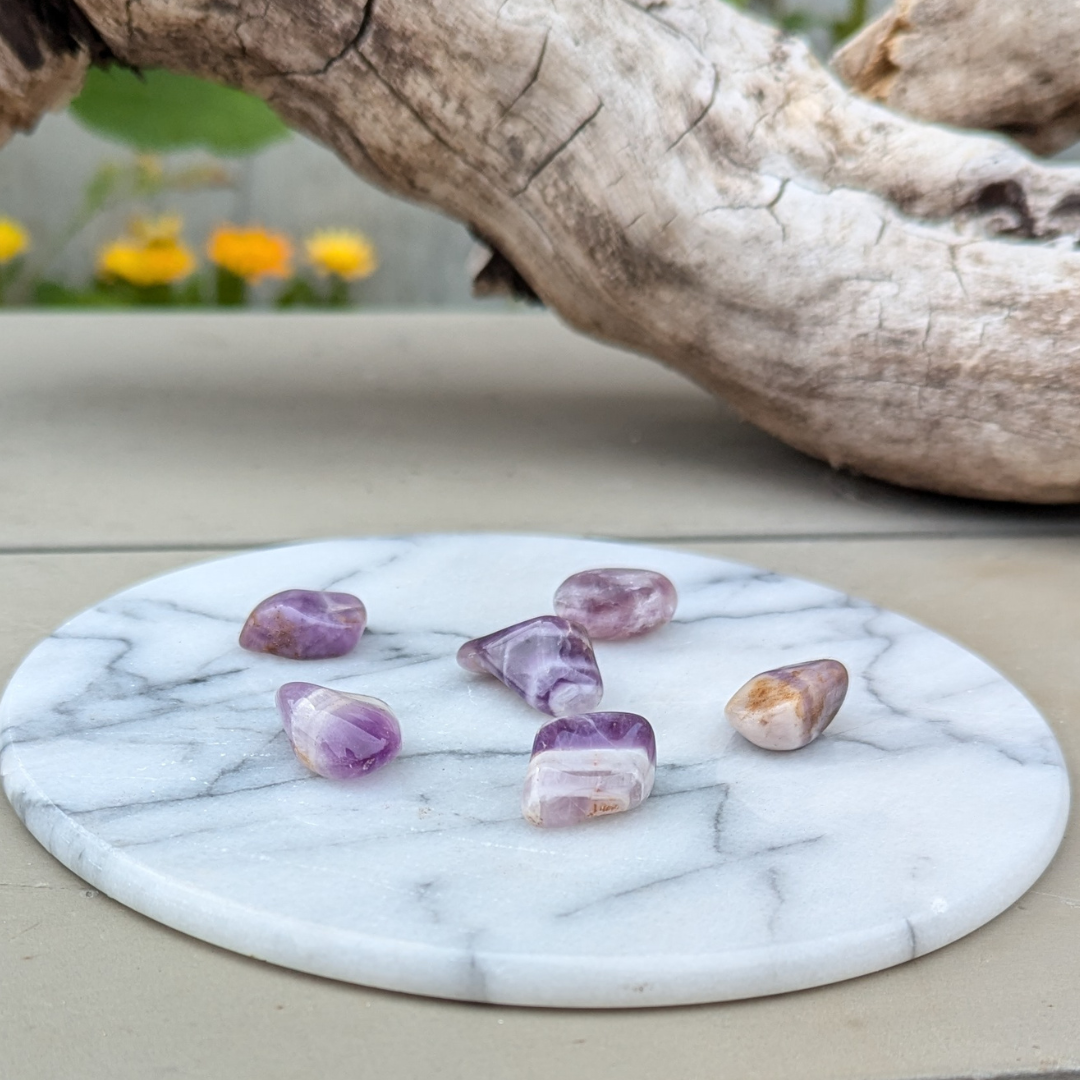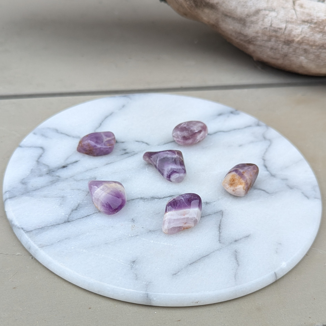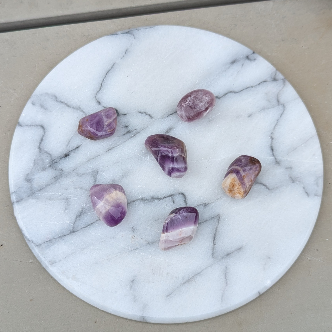 Det siges at Ametyst er en meget beroligende sten. Den virker rensende på krop og sind og beroliger et nervøst gemyt og dæmper et voldsomt temperament . Den ligger en dæmper på alle stress og affekttilstande. Den får os til at vende blikket indad og søge efter den egentlige årsag til vores uro. Netop fordi ametyst støtter os i at vende blikket indad, kan den også være en stor hjælp når man tumler med svære problemstillinger. Den vil i disse situationer give klarhed og hjælpe os med at træffe de rette beslutninger. Ametyst er skøn at meditere med fordi den bringer en dejlig ro. Ametysten er desuden en god sove sten netop fordi den skaber ro i sindet.