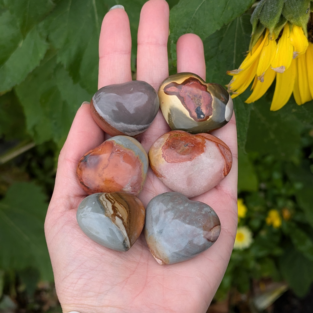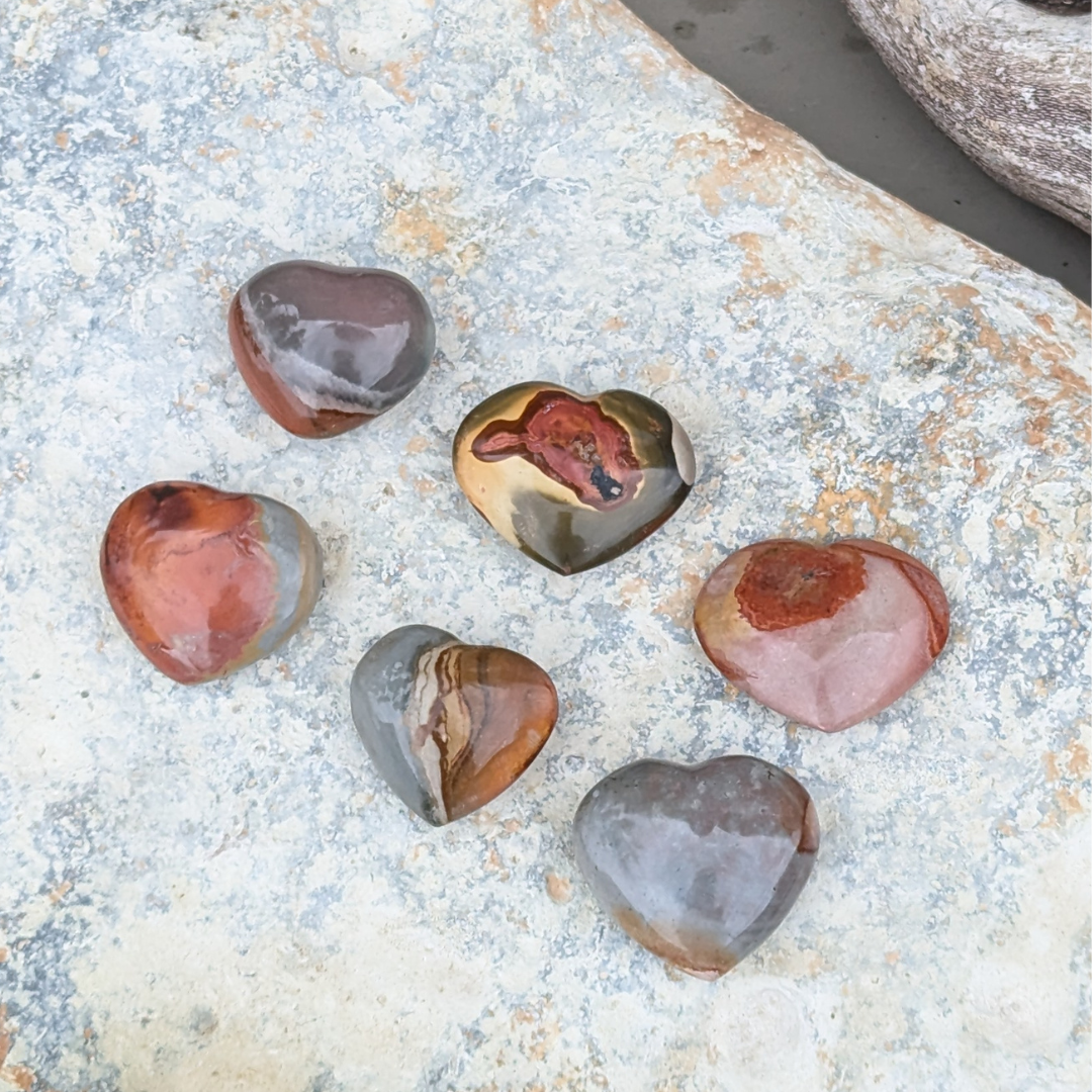 Polychrome jaspis er stærkt forbundet med ild elementet. Den bringer energi til lidenskab, vitalitet, handling og kreativitet. Den er stærkt forbundet til jorden. Den styrker og skaber forståelse for forbindelsen til Moder Jord. Den har en kraftig og levende energi. Den er god ved ændring af adfærdsmønster, så der kommer overensstemmelse mellem de indereste ønsker. Den bringer stabilitet og balance. Shamaner bære den som beskyttelse. Den inspirerer til at fejre de dyrebare og livsgivende gaver som naturen bringer os. Den inviterer magi og mystik ind i livet. Den healer på stort set alt.