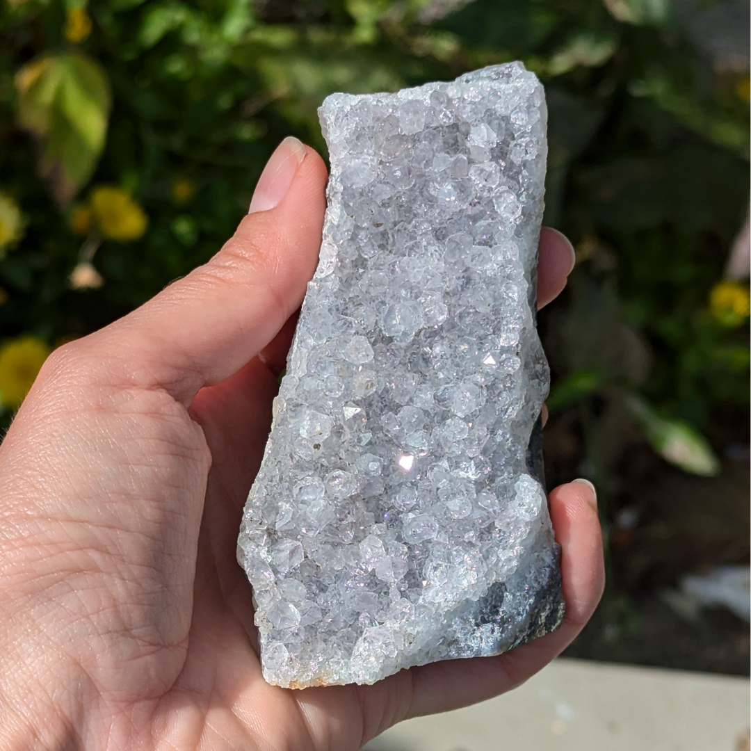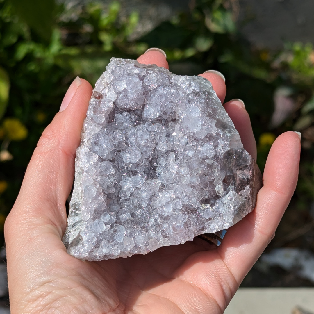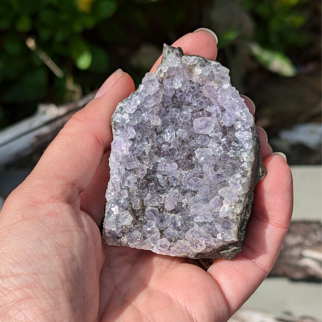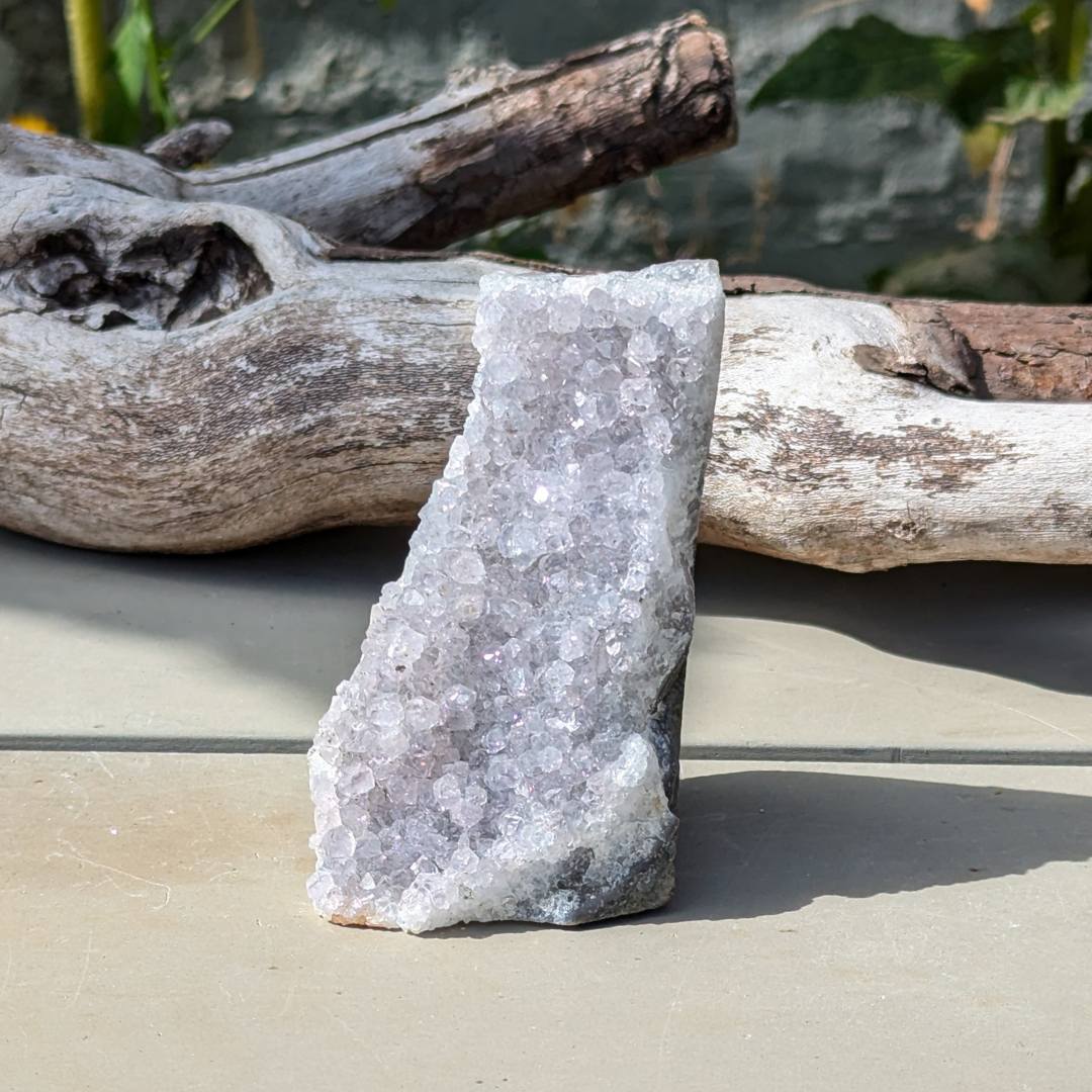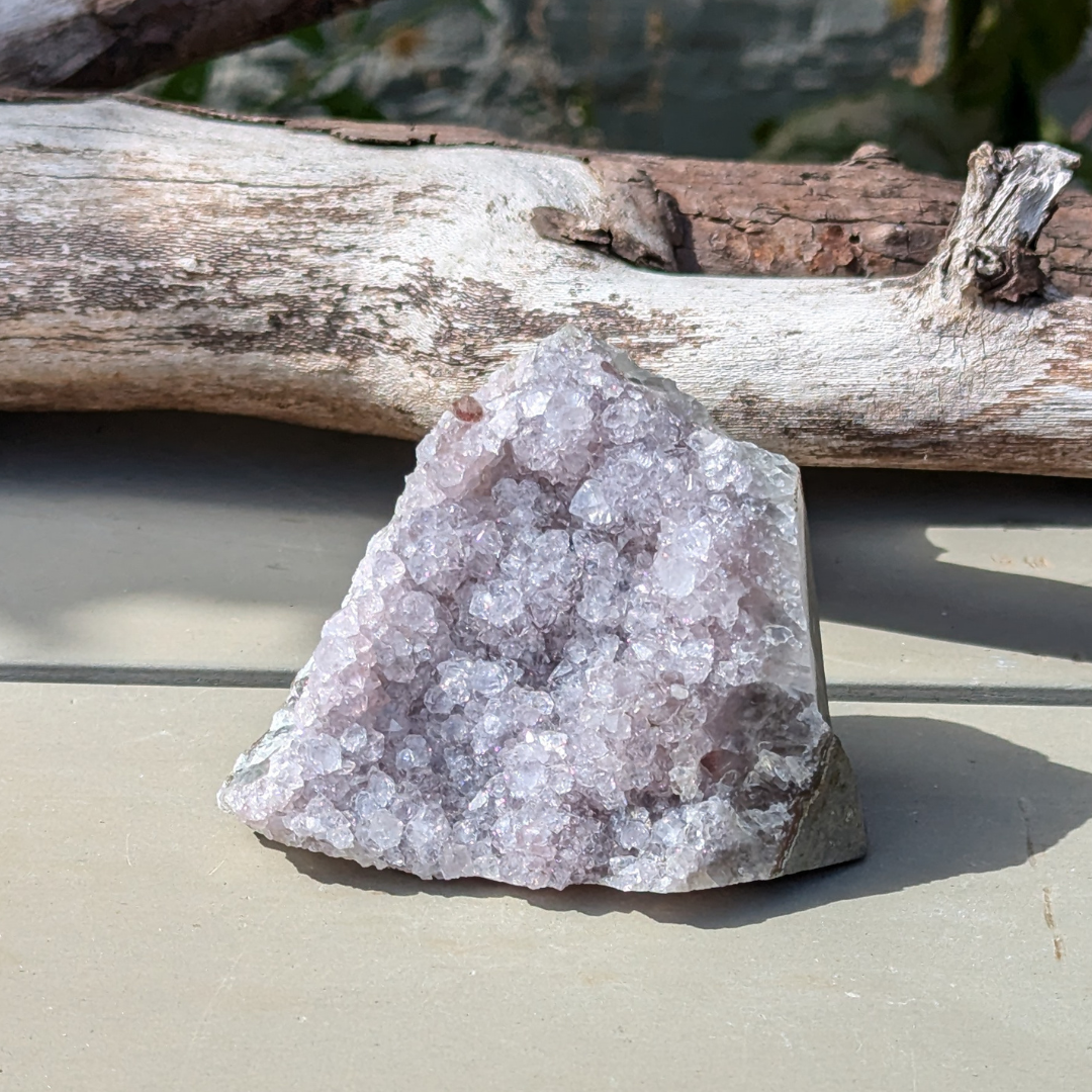 Ametyst er en meget beroligende sten. Den virker rensende på krop og sind og beroliger et nervøst gemyt og dæmper et voldsomt temperament . Den får os til at vende blikket indad og søge efter den egentlige årsag til vores uro. Derfor kan ametyst også være en stor hjælp når man tumler med svære problemstillinger.