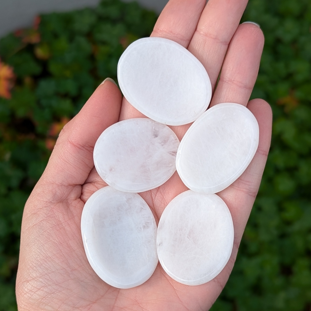 Den perfekte sten til lommen. Den har en fin lille fordybning der passer til tommeltotten. Den er stenens svar på en stressbold, hvor du kan finde en skøn ro i at lade tomlen glide let over stenen.