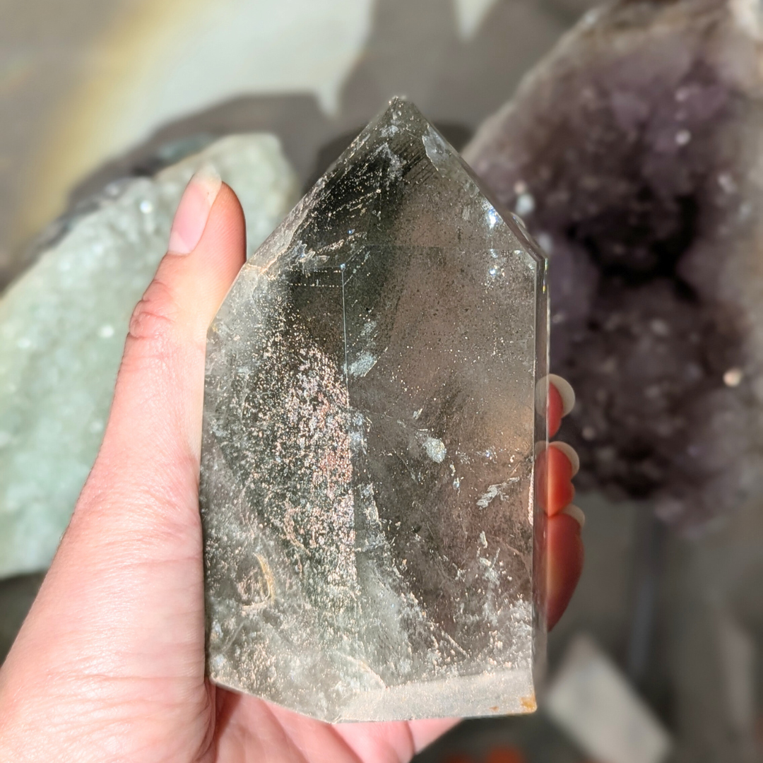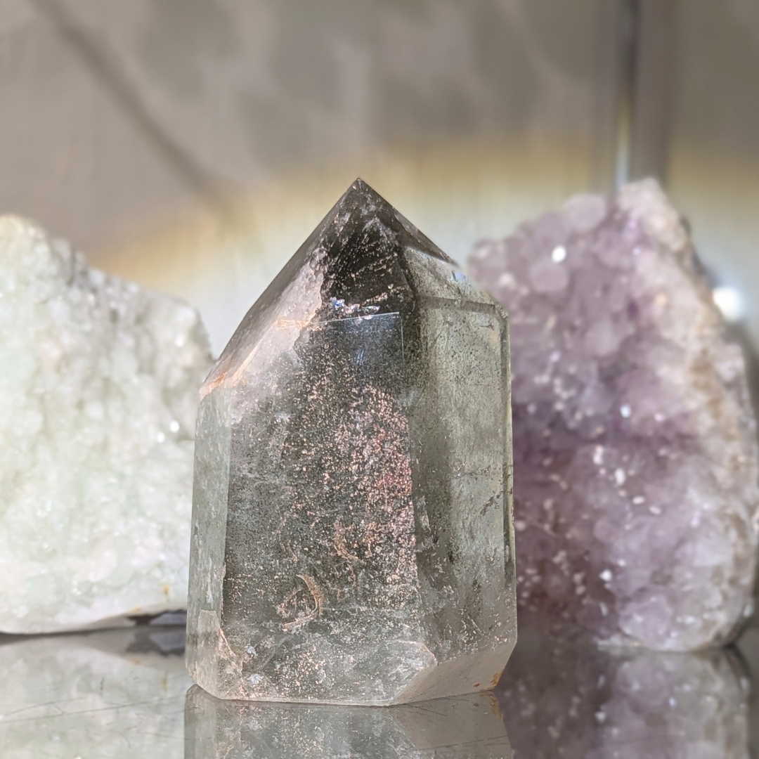 Fantom krystallen indeholder små pyramidemønstre, som markerer det vækstmønster, krystallen har gennemgået. En fantom krystal har optaget lærdom gennem evigheder. Den sætter fortiden i perspektiv og peger fremad mod vækst og evolution.